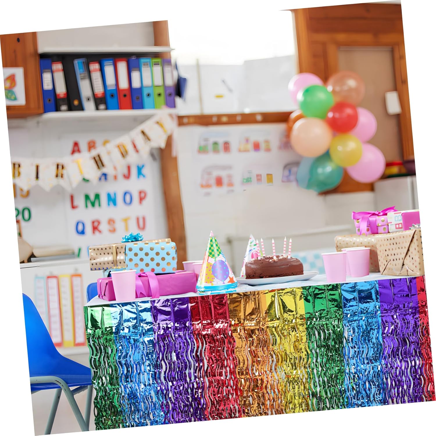 E riutilizzabili: realizzati in plastica leggera ma resistente, questi decori da tavola resistono a varie condizioni e possono essere utilizzati più volte, decorazioni da tavola con frange, decorazioni da tavola per feste Colori arcobaleno: con una tavolozza di colori brillanti, la gonna da tavolo per feste porta un immediato tocco di divertimento ed entusiasmo alle tue impostazioni da tavolo, gonna da tavolo per laurea, gonna da tavolo per feste di capodanno Tonalità vivaci: infondi alle tue apparecchiature da tavola un immediato aumento di allegria ed entusiasmo attraverso una abbagliante di sfumature arcobaleno, gonne da tavolo festive, decorazioni da tavola per compleanni Motivi ondulati: la forma ondulata di queste gonne da tavolo festive conferisce una vivace qualità tridimensionale ai piani dei tavoli, migliorandone l'attrattiva visiva, frange da tavolo, gonne da tavolo per feste Uso versatile: adatte a molteplici occasioni festive, compleanni ai picnic, queste gonne da tavolo un'atmosfera , gonna da tavolo di carnevale, gonna da tavolo