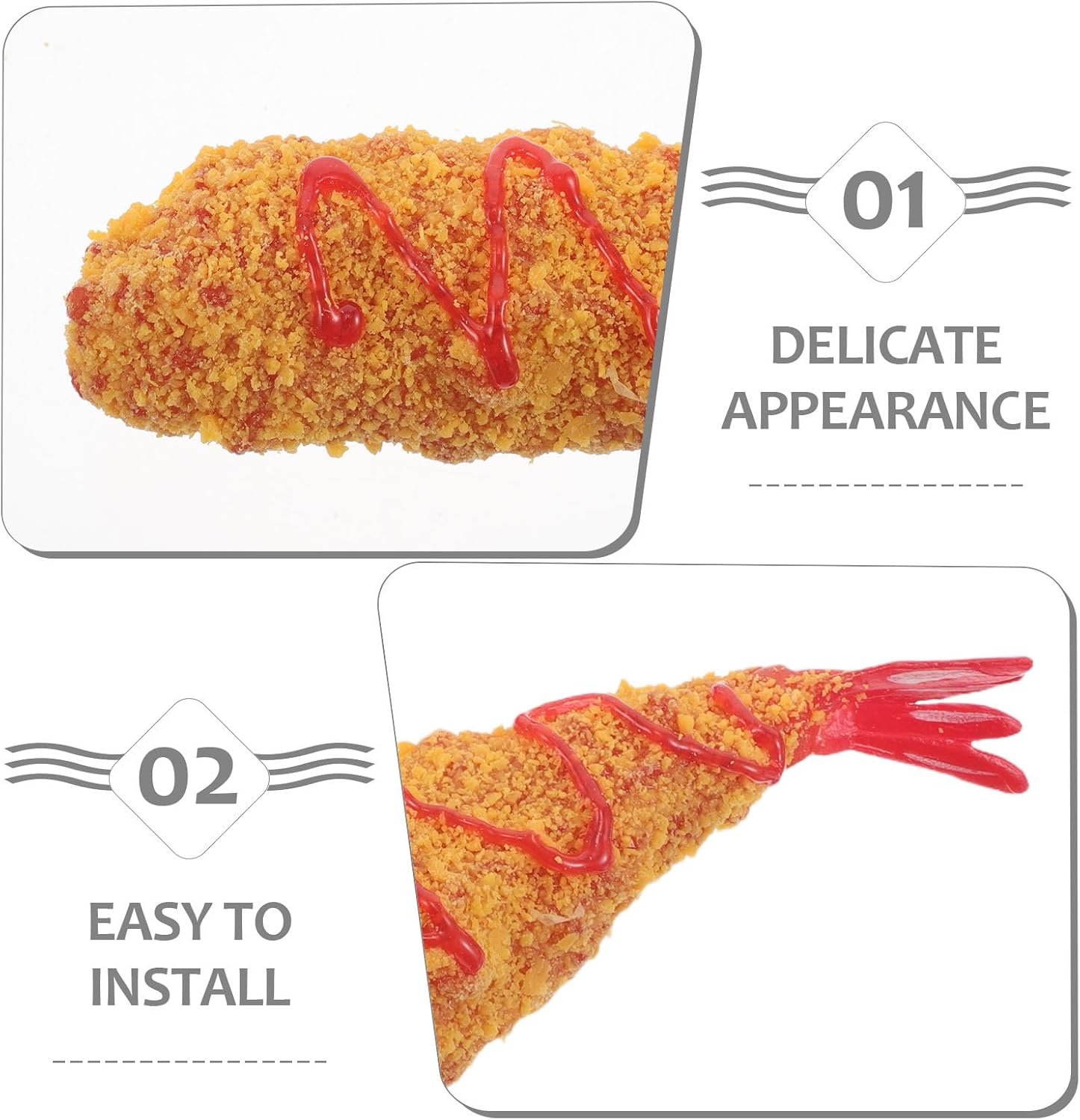 Aspetto realistico: il realistico di gamberetti cotti presenta texture dettagliate di gamberetti fritti in tempura, rendendo il cibo di simulazione realistico e adatto a modelli di cibo artificiale e giocattoli alimentari in miniatura Gioco fantasioso: come giocattoli da cucina e oggetti di scena per la simulazione di cibo, questi gamberetti cotti realistici e artificiali stimolano la creatività, supportando l'apprendimento giocoso per bambini e appassionati di cosplay Ottimo valore espositivo: ideale come cibo finto da esporre, cibo finto per la decorazione o pezzi di simulazione di giocattoli alimentari per banconi, scaffali e vetrine, offrendo un impatto decorativo accattivante Autentica cultura asiatica: il simulato di cibo finto e di gamberi cotti rappresenta vividamente i gamberi tempura giapponesi, aiutando gli utenti ad apprezzare e studiare gli stili alimentari tradizionali asiatici Opzioni di ciondoli creativi: questi giocattoli alimentari in miniatura possono essere utilizzati come ciondoli di gamberetti simulati o accessori decorativi, aggiungendo un fascino a lavori artigianali, gioielli o feste a tema