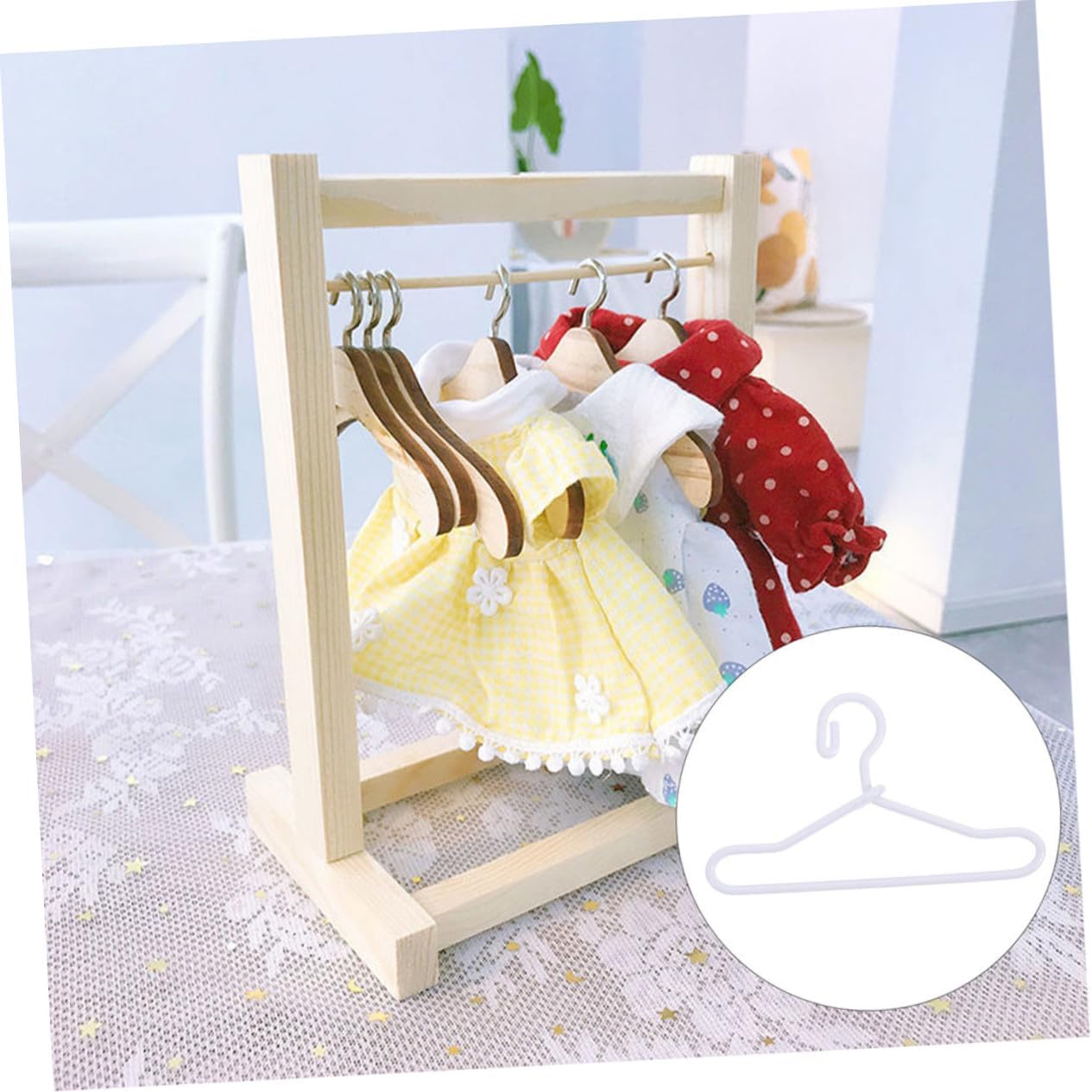 Appendiabiti per casa delle bambole: con questi appendiabiti per vestiti per bambole, puoi esporre tutti i vestiti delle bambole in modo facile e comodo, appendiabiti in metallo in miniatura Grucce in lega in miniatura: le grucce per vestiti delle bambole possono essere un'ottima scelta di sostituzione per grucce vecchie o rotte, mini grucce decorative Ornamenti per grucce in miniatura: la gruccia per vestiti per bambole è fantastica e adatta per abbinarsi ad altre decorazioni per la tua mini casa, come grucce e vestiti per bambole, grucce per vestiti in miniatura Appendiabiti per casa delle bambole: questi appendiabiti per bambole sono accessori necessari per la tua mini casa e la rendono ordinata, mini appendiabiti Grucce in miniatura: i vestiti delle tue bambole possono essere appesi ordinatamente nell'armadio, guardaroba per bambole ben organizzato, le grucce in miniatura sono utili ed eccellenti, grucce per abiti in miniatura