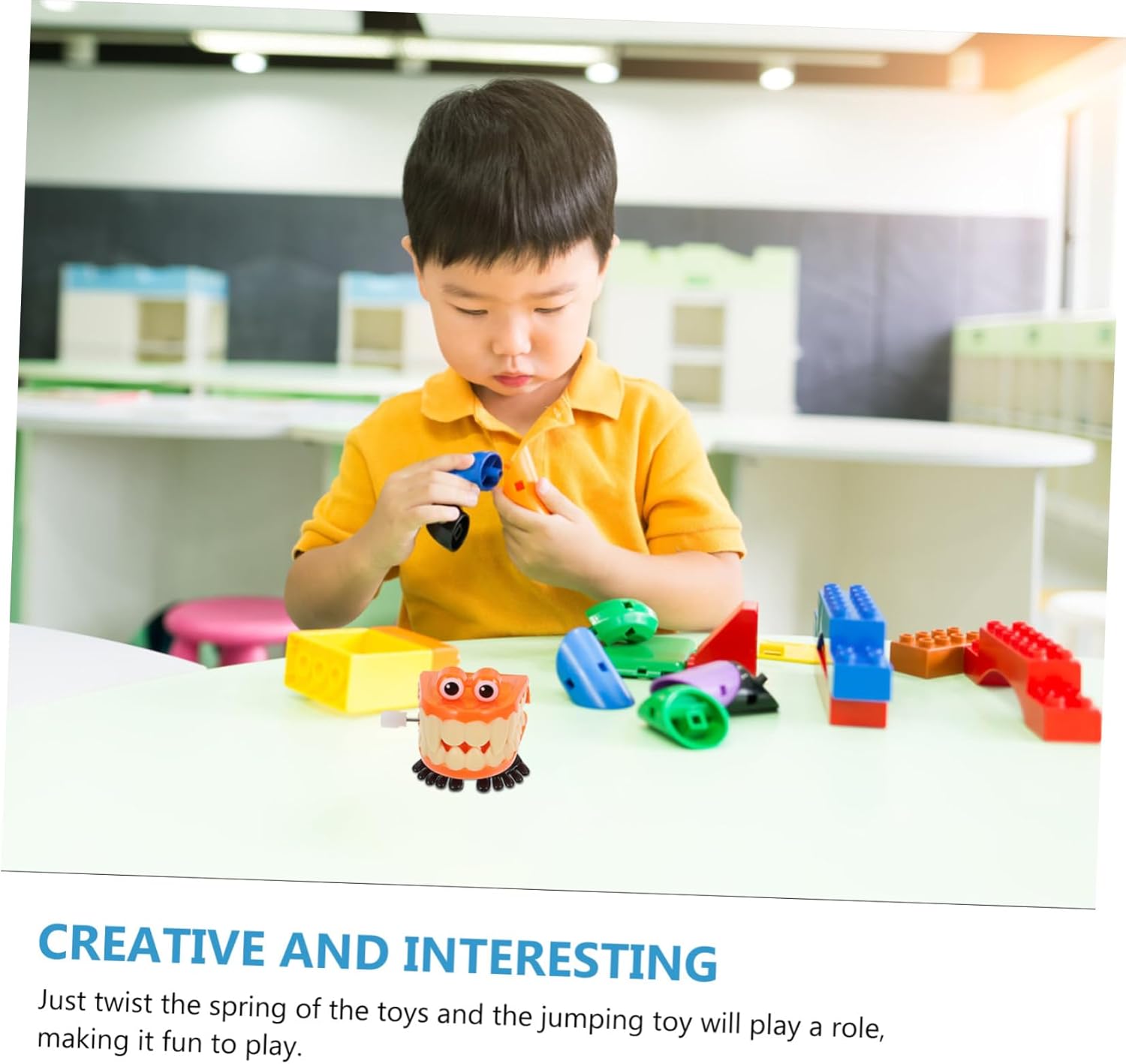 A molla: fatto pregevole fattura, giocattoli a molla A carica: vivaci e design attirano facilmente l'attenzione del tuo , apprezzerà , a forma Giocattoli pop-up: design e lavorazione da cartone animato, questi giocattoli a forma sono meravigliosamente belli, bocca per Con denti masticano: a orologeria è sicuro, ben lucidato e liscio senza sbavature, non ci sono parti possano ferire i tuoi , denti si muovono A carica: con design a orologeria, non richiede batteria, ruotando la molla dell'orologio, si caricherà in interessante, denti a carica