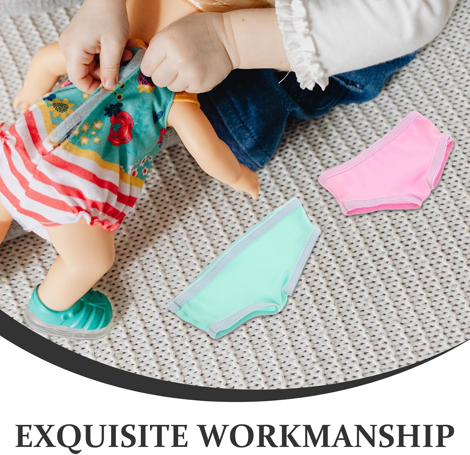 Design alla moda: su misura per bambole da 18 pollici, queste mutandine e mutande per bambole offrono un'aggiunta elegante a qualsiasi guardaroba per bambole, conferendo alle bambole un look aggiornato e alla moda Miglioramento del comfort: realizzati con materiali morbidi ed elastici, i nostri indumenti intimi per bambole vestono in modo aderente ma confortevole, soddisfacendo perfettamente le esigenze di biancheria intima delle bambole senza limitarne i movimenti Facile esperienza di cambio: con una semplice indossabilità e rimozione, queste mutande per vestiti da bambola incoraggiano l'indipendenza dei bambini durante il gioco, rendendo gli accessori per vestire la bambola divertenti e senza sforzo qualità a lungo termine: ogni pezzo di biancheria intima per bambole è realizzato in tessuto resistente e lavabile, garantendo che i pannolini riutilizzabili per bambole rimangano colorati e funzionali anche dopo un uso e un lavaggio frequenti Stimolo al gioco creativo: il set migliora le opzioni di accessori per l'abbigliamento delle bambole, ispirando i bambini a mescolare e abbinare i vestiti dei pannolini per bambole, promuovendo il gioco di ruolo e la narrazione creativa con le loro bambole
