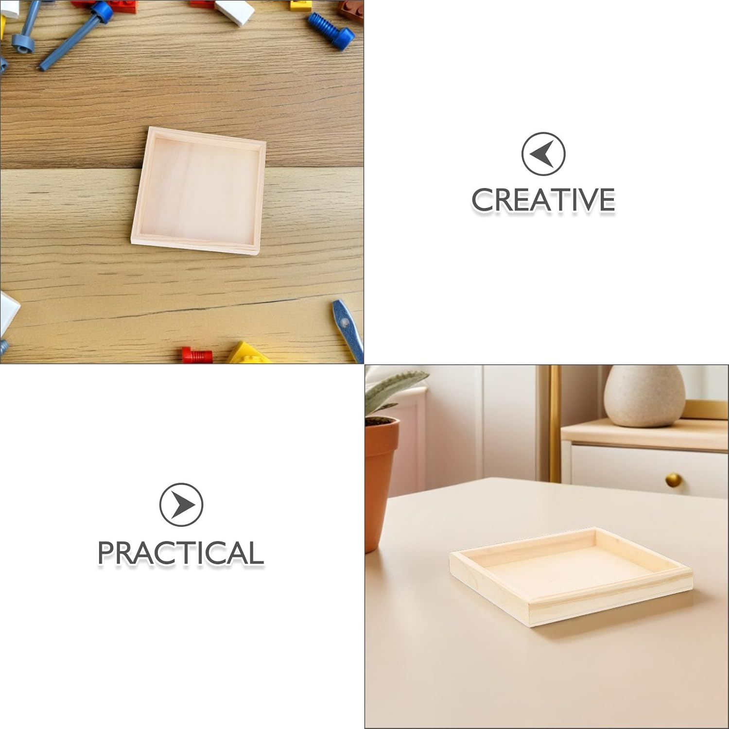 Soluzione di smistamento organizzata: il vassoio per puzzle di forma quadrata semplifica il processo di smistamento dei pezzi del puzzle 3D, riducendo al minimo gli errori e massimizzando la produttività durante le sessioni di gioco con i puzzle a casa o a scuola Supporto pratico all'apprendimento: il nostro vassoio con blocchi di legno aiuta nelle attività Montessori con il vassoio di legno, offrendo ai bambini un modo tattile per sviluppare capacità di problem solving mentre si divertono con accessori puzzle giocosi Struttura sicura e affidabile: questi piccoli vassoi in legno grezzo sono progettati per garantire stabilità, garantendo che i pezzi del puzzle rimangano al sicuro che tu stia conservando, trasportando o presentando i tuoi puzzle completati Versatilità creativa: con vassoi in legno per materiali artigianali, i bambini possono utilizzare il vassoio portaoggetti per puzzle come ordinatore che come organizzatore per vari giocattoli puzzle a blocchi o cubi, incoraggiando il gioco multifunzionale Interazione familiare migliorata: l'organizzatore di giocattoli puzzle in legno favorisce un'interazione familiare coinvolgente, consentendo a bambini e adulti di lavorare insieme in modo efficiente con vassoi dedicati alla classificazione dei puzzle