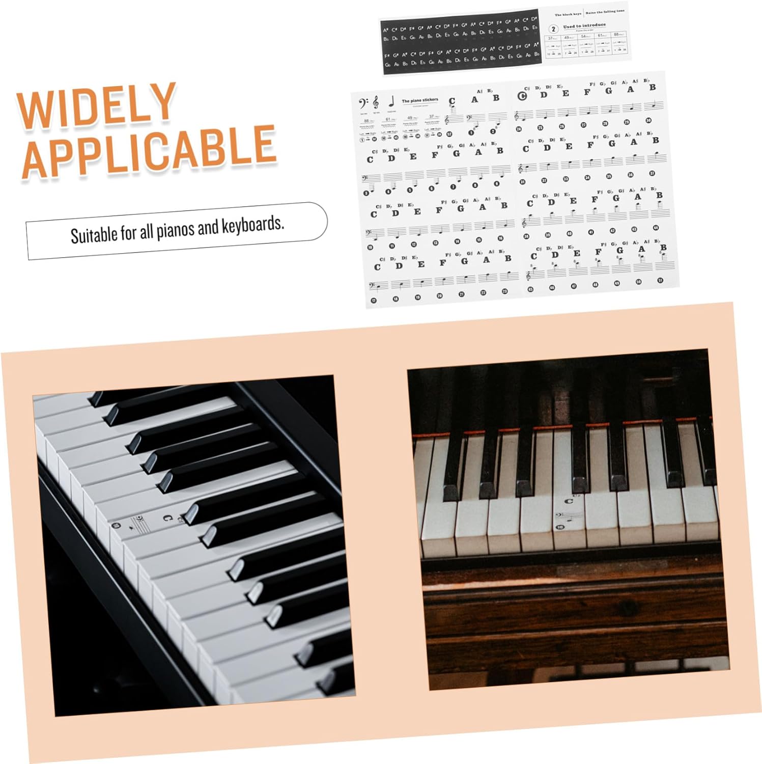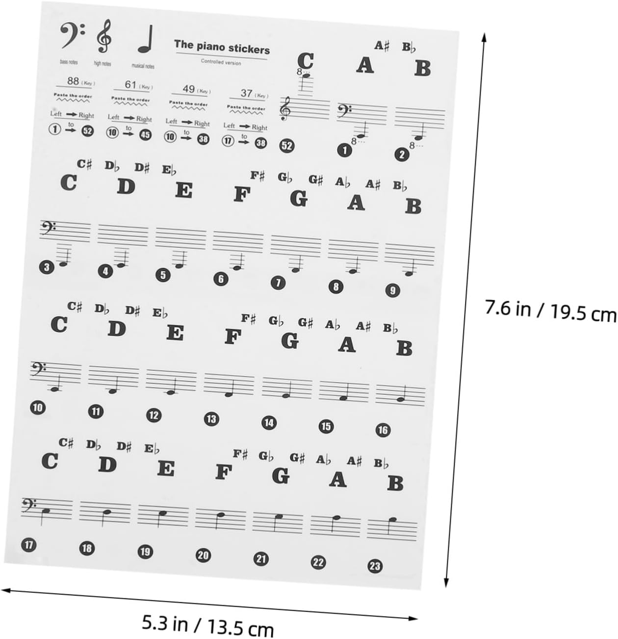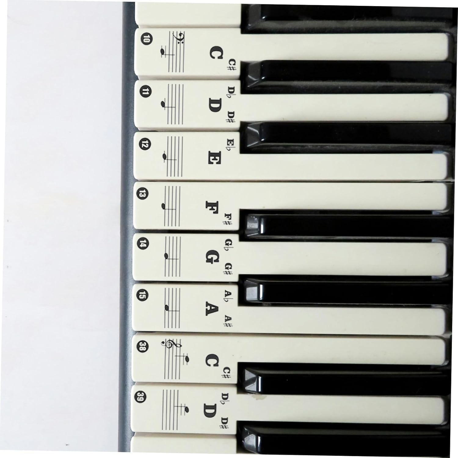Guida agli spartiti per pianoforte per principianti: ha un buon effetto visivo ed è facile da leggere. Pratici adesivi per esercitarsi e padroneggiare rapidamente, adesivi per note sulla tastiera Etichette per tasti di pianoforte: non sbiadiscono, anti-sudore, resistenti all'usura, durano a lungo senza cadere, adatte a tutti i pianoforti e tastiere, adesivi rimovibili per tasti di pianoforte Adesivi numerati per tastiera di pianoforte: sono appositamente progettati per pianoforte e pianoforte elettrico, ideali per i principianti per memorizzare i tasti, adesivi sostitutivi per tastiera adesivi per tastiere di pianoforte: gli adesivi per pianoforte sono realizzati in materiale buono e sicuro, sicuro e durevole e possono essere utilizzati a lungo Adesivi per tasti per tastiera di pianoforte: la funzione principale è aiutare i principianti a padroneggiare il pianoforte suonando più velocemente, in modo da sviluppare buone abitudini di pianoforte per i principianti. adesivi per tastiera