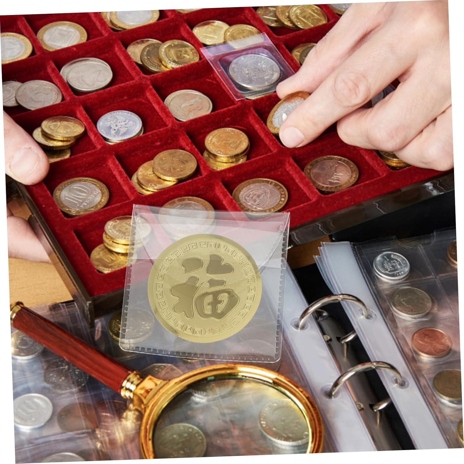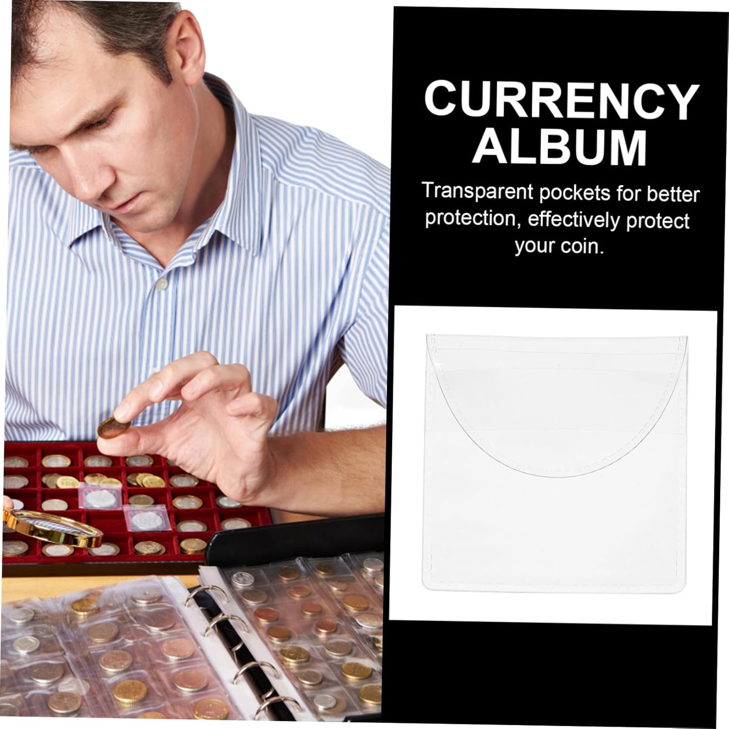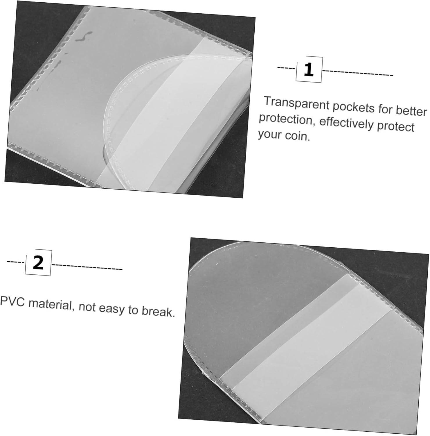 Scomparto per monete: queste tasche trasparenti possono essere utilizzate come album per la raccolta di monete, porta pagine per cartelle di banconote e monete per collezionisti o come custodia per collezionisti di monete. Organizzatore di monete commemorative: adatto per la conservazione e la raccolta di monete. I souvenir proteggono le tue monete in modo efficace, permettendoti di goderti l'intero processo mentre ti diverti. Esposizione portamonete Portamonete in plastica: pratico portamonete, ampio spazio per riporre tutti i tipi di piccoli oggetti, portamonete Portamonete per borsa: realizzato in materiale PVC, pregevole fattura, per una lunga durata e utilizzo, portamonete trasparente Borsa portamonete: adatta per monete, gettoni, distintivi, medaglie e vari altri piccoli oggetti, molto pratica, portamonete