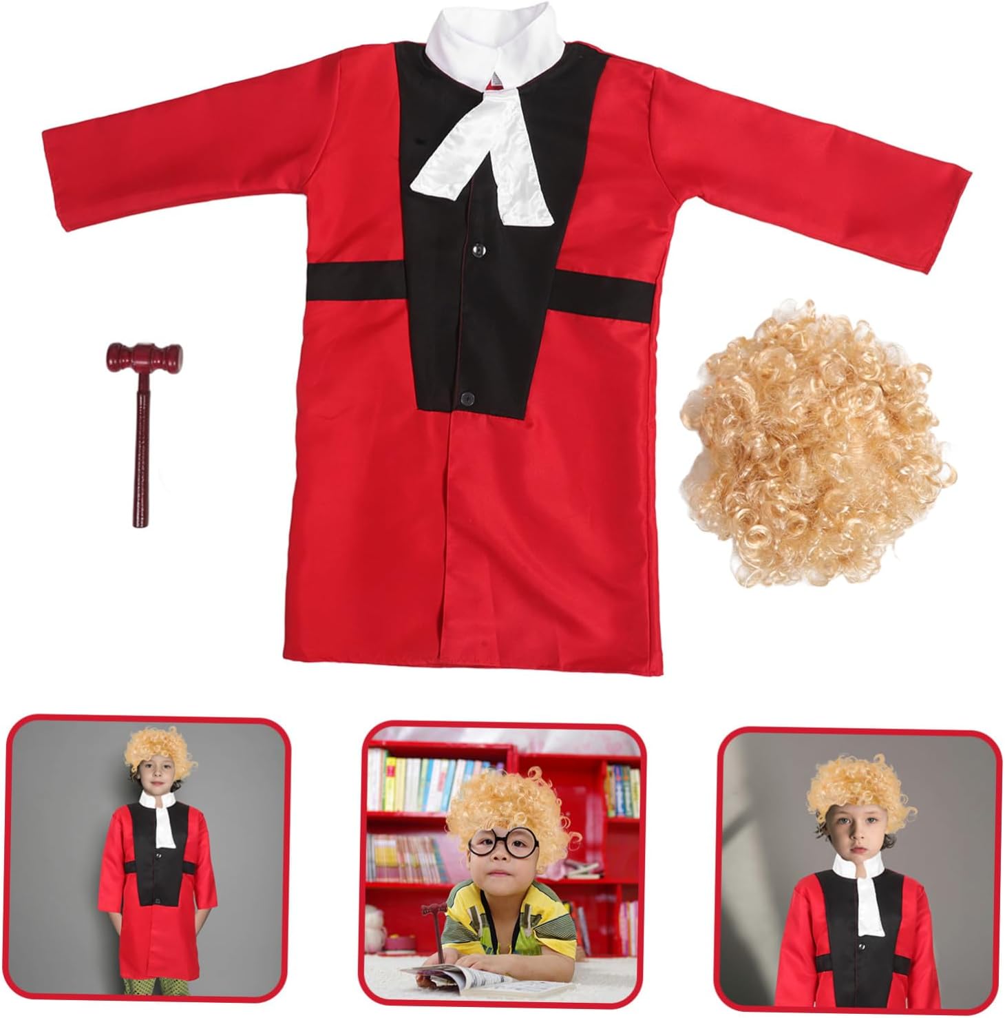 Costume da giudice e parrucca per: Il set comprende un costume da giudice, un martelletto e una parrucca, creando un look completo che aumenta l'autenticità del gioco di ruolo. Abiti creativi per spettacoli di Halloween, costume da giudice per abiti da palcoscenico: progettato per spettacoli teatrali, questo costume aiuta i bambini a sentirsi sicuri e ad avere un aspetto professionale quando si esibiscono davanti al palco. Gioco di ruolo: questo costume da giudice incoraggia il gioco di ruolo creativo e aiuta i bambini a sviluppare la loro immaginazione e comprensione delle diverse professioni. -Costume da giudice, parrucca per bambini Costume professionale per: questo costume è ideale per coloro che vogliono esplorare diverse carriere e offre un modo divertente ed educativo per conoscere il sistema giudiziario Costume da gioco di ruolo del giudice: adatto per il gioco di ruolo, questo costume consente ai bambini di assumere il ruolo di giudice, incoraggiando l'immaginazione e l'apprendimento. costume e parrucca da bambino. Costume da cappotto da giudice per: il costume include un cappotto da giudice appositamente progettato per, che fornisce un abito realistico e confortevole per il gioco di ruolo, un copricapo da giudice e una parrucca da copricapo