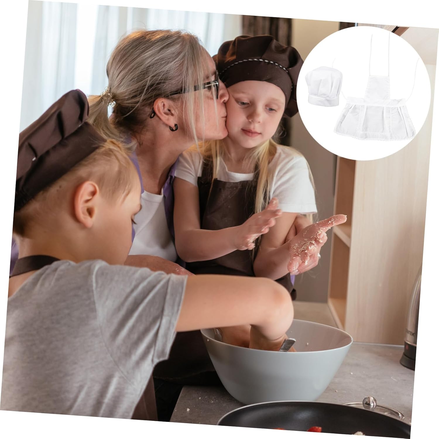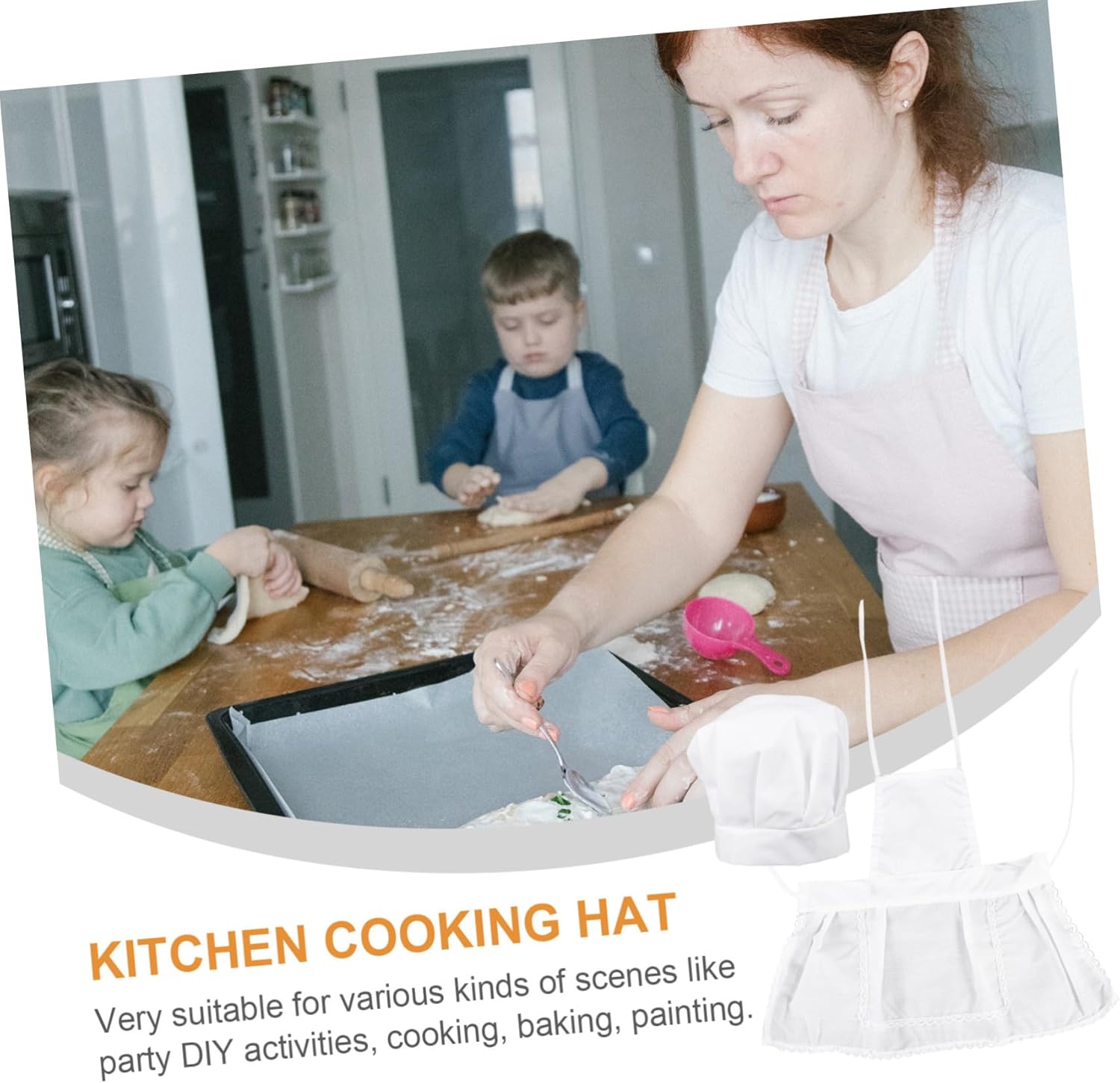 Grembiule da cucina per cucinare - mescolare il cibo con una frusta e un cucchiaio, cuocere i biscotti con le formine per torte, gratis con abilità pratiche, grembiuli da cucina per bambini per ragazze - può cucinare con giochi, aumentare l'interesse per la cottura al forno e promuovere le abilità dei bambini, grembiule per bambini cappello da chef per - l'occasione perfetta per entusiasmarsi per la cucina e insegnare loro a cucinare e cuocere al forno in modo semplice. Grembiule da cucina con cappello da chef: impara a cucinare e cuocere il cibo e imparare ad apprezzare il cibo e rispettare il lavoro!, Grembiule da cucina per ragazze, cappello da chef per la cucina: cuocere e cucinare con la tua ragazza, godetevi un momento felice in famiglia insieme in cucina, grembiuli da cucina per bambini