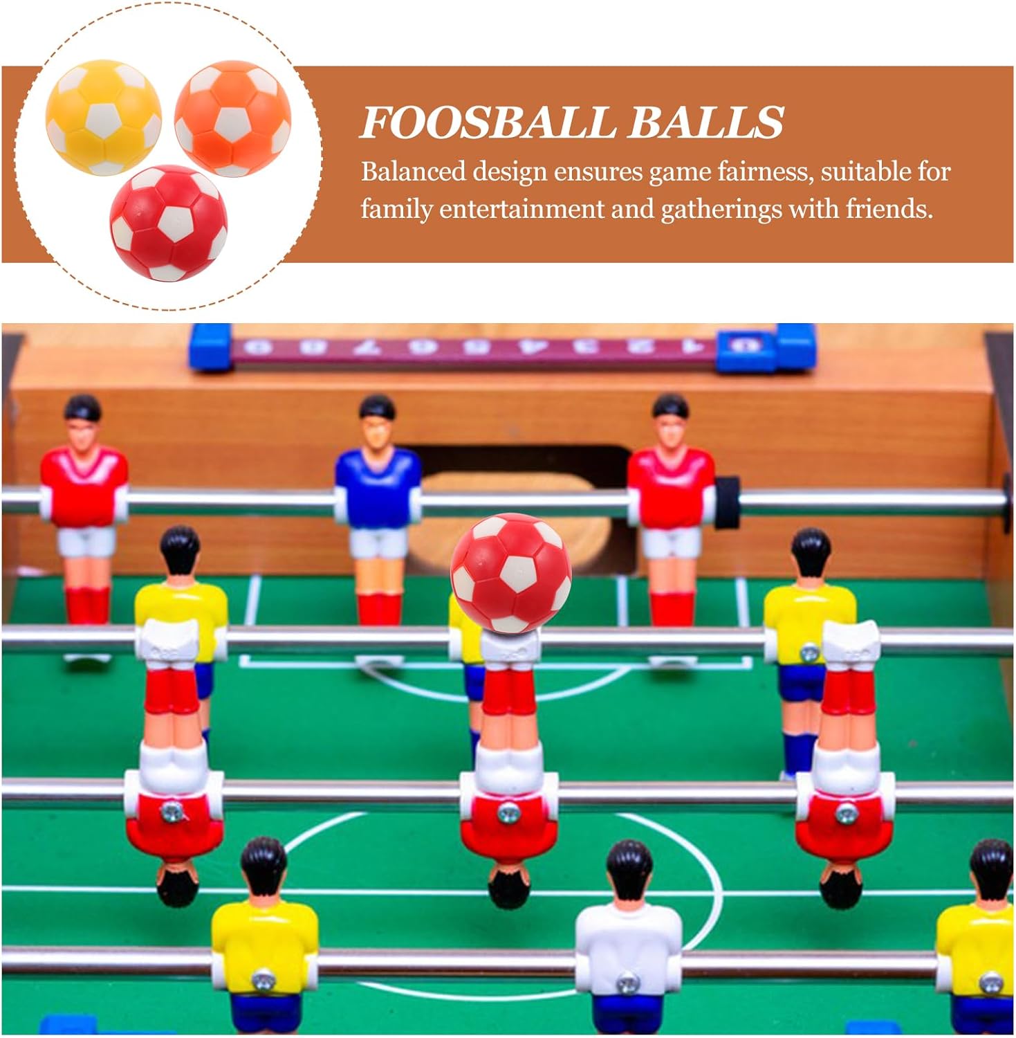 Palline da biliardino: La superficie liscia di queste mini palline da biliardino riduce l'attrito per un'esperienza di gioco da biliardino più fluida ed emozionante Si adatta alla maggior parte dei tavoli: Con un diametro di 36 mm, queste palline sostitutive per biliardino sono compatibili con una varietà di configurazioni di biliardino Qualità durevole: Queste palline da biliardino sono realizzate con materiali di alta qualità in modo che possano resistere a un uso frequente senza compromettere le prestazioni Ideale per le riunioni: Queste piccole palline da biliardino sono perfette per i mini giochi di biliardino e sono ideali per l'intrattenimento familiare o competizioni amichevoli con amici Manutenzione facile: queste palline da biliardino sono facili da pulire e ti aiuteranno a mantenere i tuoi accessori da biliardino in ottime condizioni