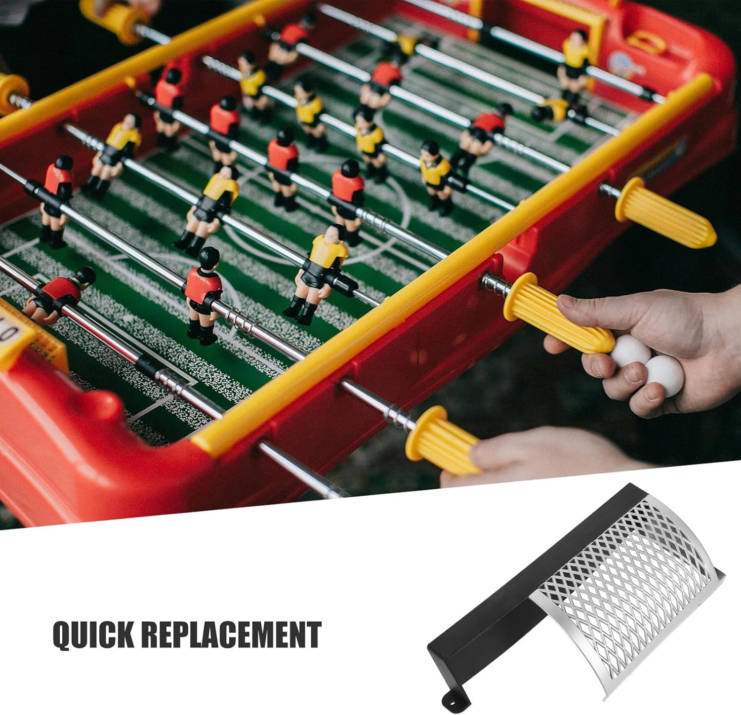 Flusso di gioco ottimale: La rete della porta da calcio balilla ha una struttura a rete che impedisce l'ostruzione, consentendo una raccolta fluida della palla e un rapido ripristino della porta durante il gioco Prestazioni affidabili: Progettata come accessorio per le reti da calcio balilla, il materiale plastico resiste all'uso regolare, rendendola una rete sostitutiva ideale per le famiglie attive Adattabile: Queste robuste reti da calcio balilla sono adatte per la maggior parte delle porte sostitutive sui tavoli da calcio balilla e possono essere perfettamente integrate in varie parti del calcio balilla per un'ampia gamma di usi Comodo stoccaggio: La scatola di raccolta delle palline da calcio balilla consente un'organizzazione senza sforzo in modo che tutte le palline da biliardino nella parte sostitutiva della rete da biliardino siano sempre a portata di mano. Promozione delle abilità: gli accessori del biliardino sono preziosi per lo sviluppo del bambino e promuovono il gioco strategico, la comunicazione e le capacità motorie attraverso l'uso della rete da biliardino