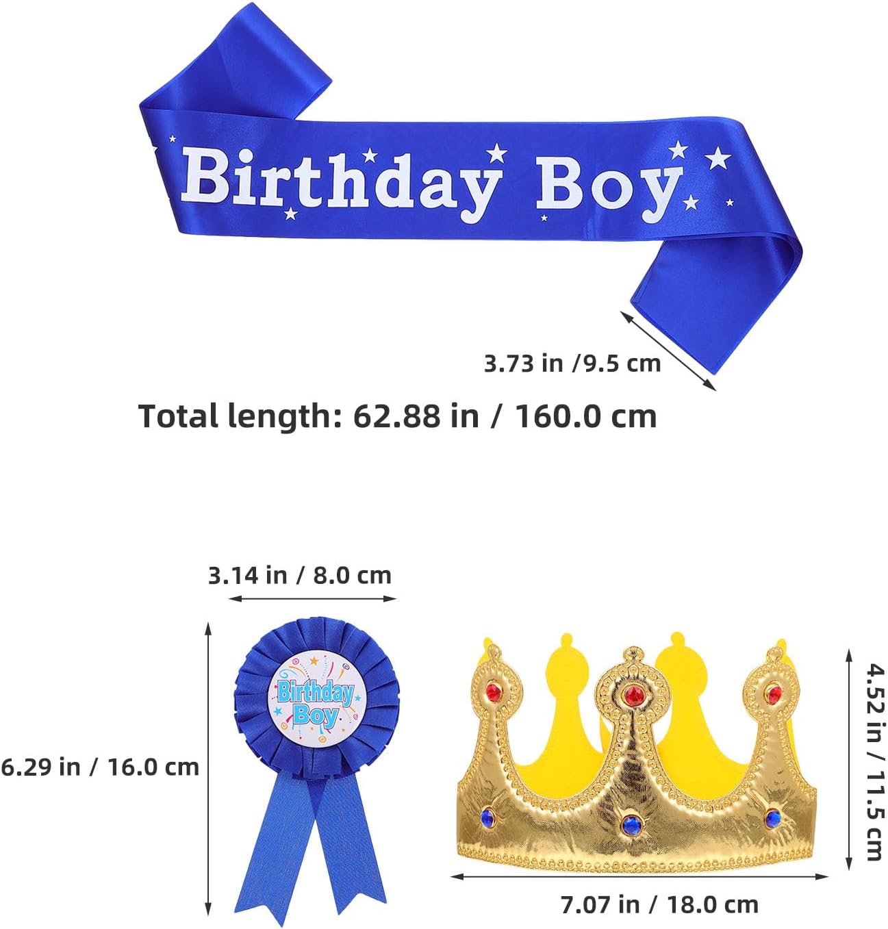Ricordi divertenti: queste decorazioni di compleanno per ragazzi aiutano a creare un'atmosfera , consentendo al tuo bambino di un'esperienza di compleanno davvero memorabile Corona accattivante: la corona per il compleanno è realizzata per mettere il tuo bambino al centro dell'attenzione, valorizzando il suo abbigliamento per il compleanno con e fascino Fascia elegante e divertente: la fascia per il compleanno è pensata per i ragazzi che vogliono fare una dichiarazione di stile, con motivi a stella giocosi che aggiungono un tocco di stile al loro outfit Versatile per: questo vestito è adatto a una varietà di eventi, tra cui feste di compleanno, spettacoli teatrali e spettacoli in costume Forniture complete per feste: con la corona di compleanno, la fascia e la spilla, divertenti accessori per costumi da bambino, perfetti per la festa di compleanno