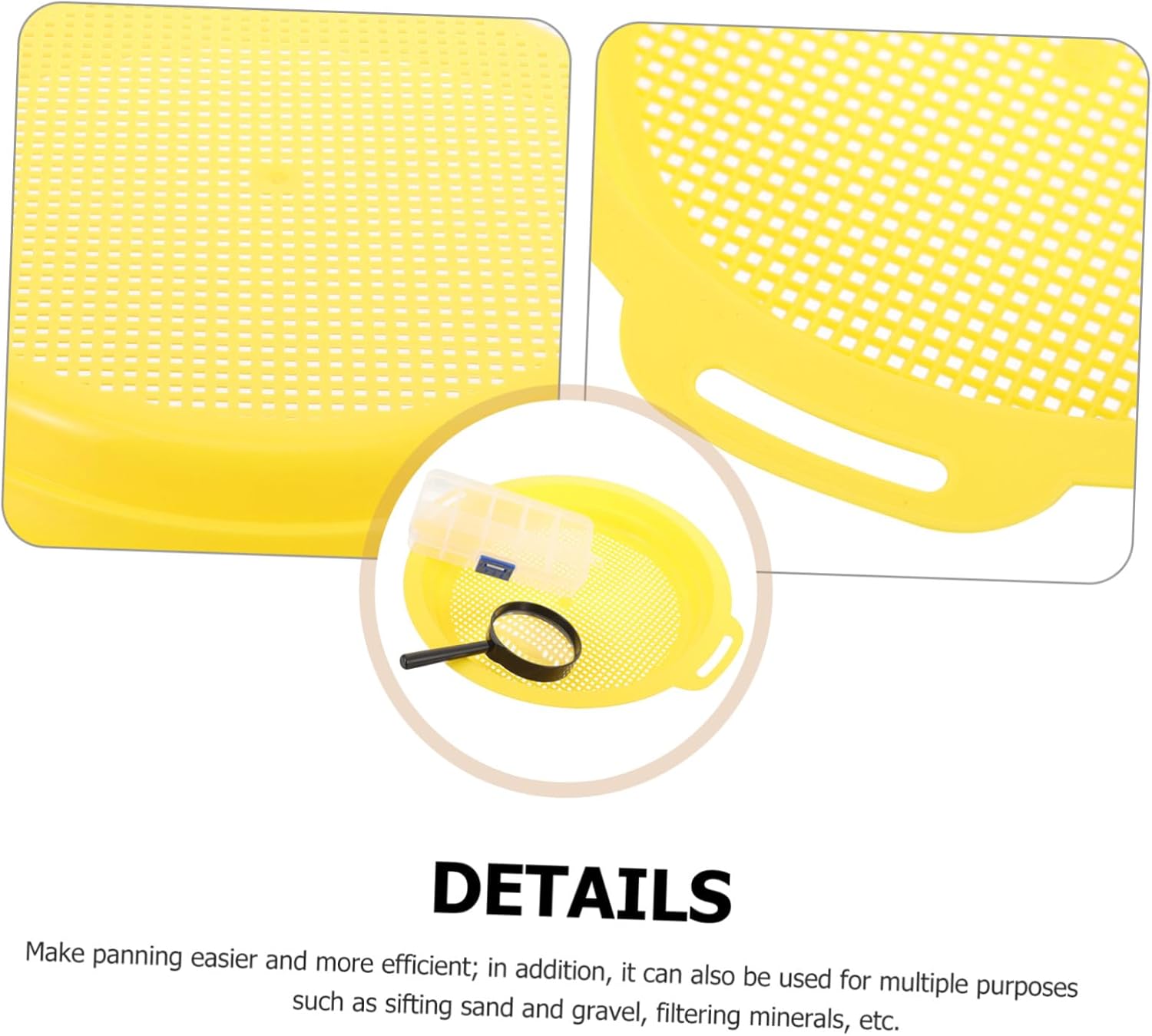 Setaccio a maglie: lo strumento di setacciatura è ampiamente utilizzato e ha una forte adattabilità, aumenta reddito della ricerca dell'oro, setaccio per sabbia e Attrezzatura per la setacciatura: è , anche uno scavatore alle prime può iniziare facilmente, può migliorare l'efficienza e tasso di della ricerca dell'oro, setaccio portatile Padella a maglie larghe: piccola e comoda, facile da trasportare, può essere utilizzata in qualsiasi momento durante la ricerca dell'oro all'aperto, padella per setacciatura Padella filtrante potabile: con un design , l'oro e la sabbia possono essere separati in più efficace e può adattarsi ai requisiti di ricerca dell'oro di materiali diversi, padella filtrante per miniera Padella per setacciatura potabile: design dell'impugnatura antiscivolo non è solo bello, ma garantisce anche un sicuro, si pulisce facilmente senza macchie come e grasso, padella per filtro