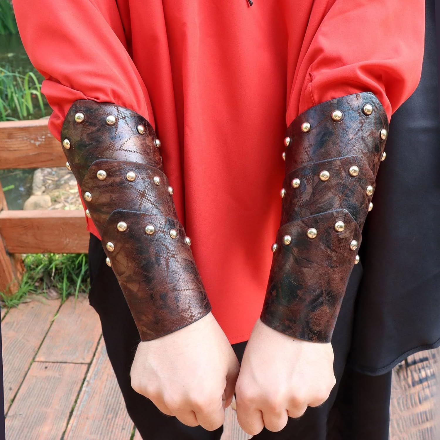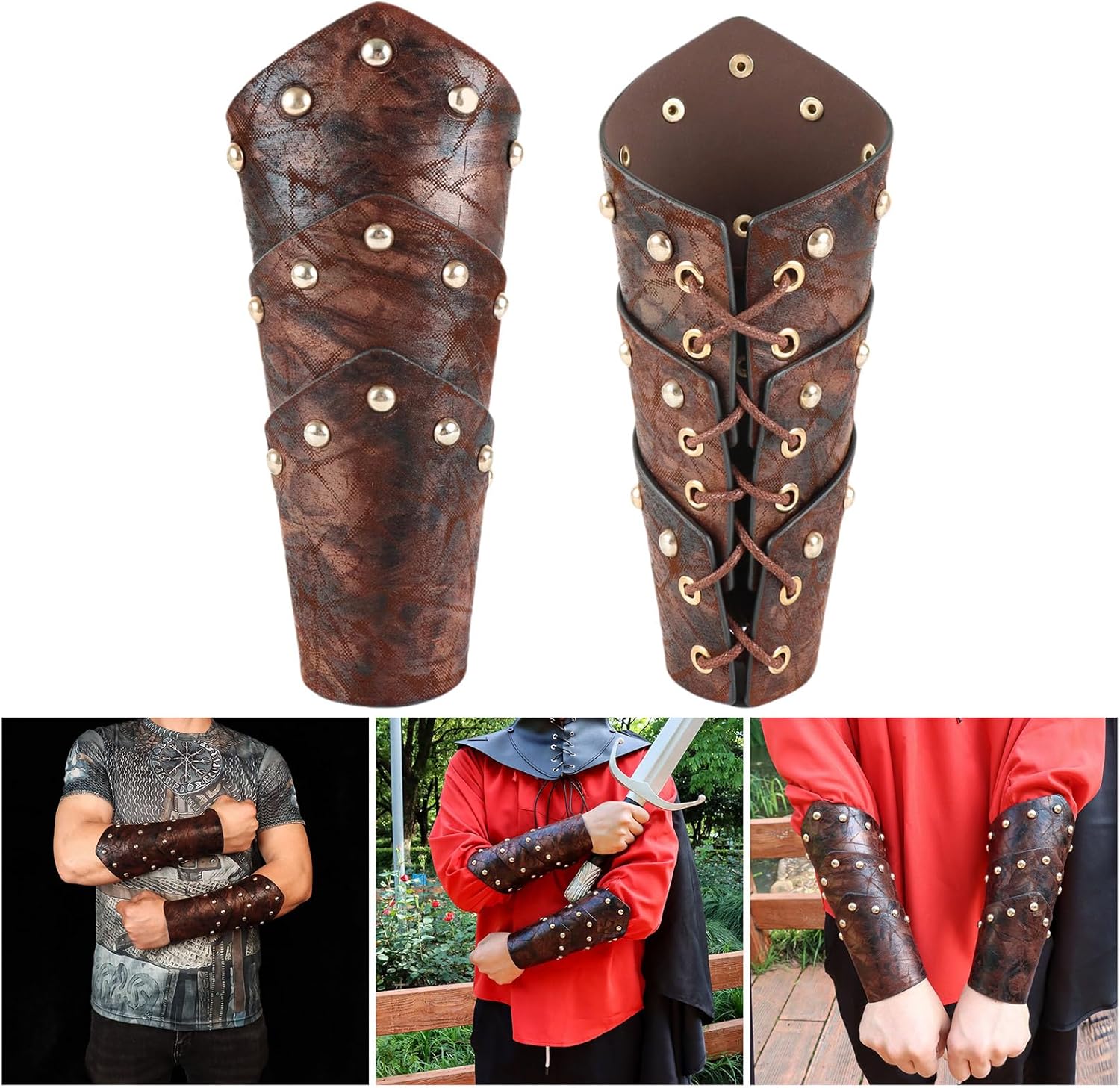 Braccio con lacci, paramani per adulti, vintage, per cosplay, costume per cosplay, in poliuretano, per spettacoli di ruolo Caratteristiche: Abbracciato l"annata con i bracci e ha mostrato modelli in rilievo per un tocco di aspetto nordico. Utilizza protezioni per braccia selezionate in pelle PU per garantire una dimensione regolabile per garantire una diversa dimensione, completata da una classica estetica vintage. Questi ARM Baker per gli appassionati di feste, artisti cosplay e storia sono progettati per migliorare tutti gli abiti a tema medievale. Entra nel personaggio della tua festa di Halloween, rievocazioni storiche o eventi a tema che possono fare una dichiarazione con questi accessori per costume. Questi braccialetti possono essere utilizzati come una grande aggiunta ai tuoi accessori di moda e dare un aspetto storico ai tuoi guardaroba di tutti i giorni. Specifiche: Dimensioni del prodotto: lunghezza x larghezza 21 x 26 cm. Texture: pelle PU Tipo: 01/02 La confezione include: Tipo 01: 1 braccio. Tipo 02: 1 paio di bracci Nota: Si prega di considerare un margine di errore di 1-2 cm a causa della misurazione manuale. A causa delle differenze tra i diversi monitor, l'immagine potrebbe non riflettere il colore reale dell'articolo.