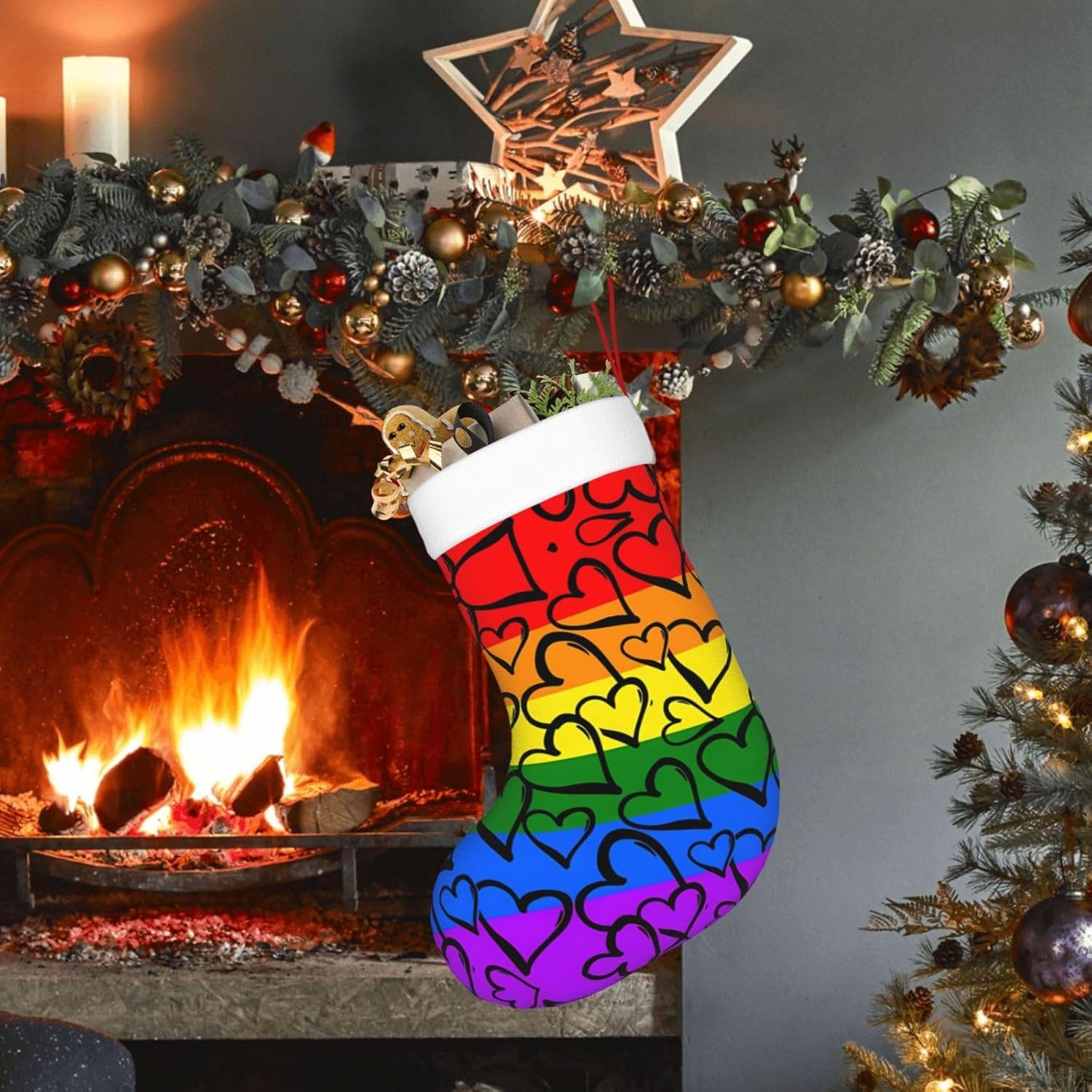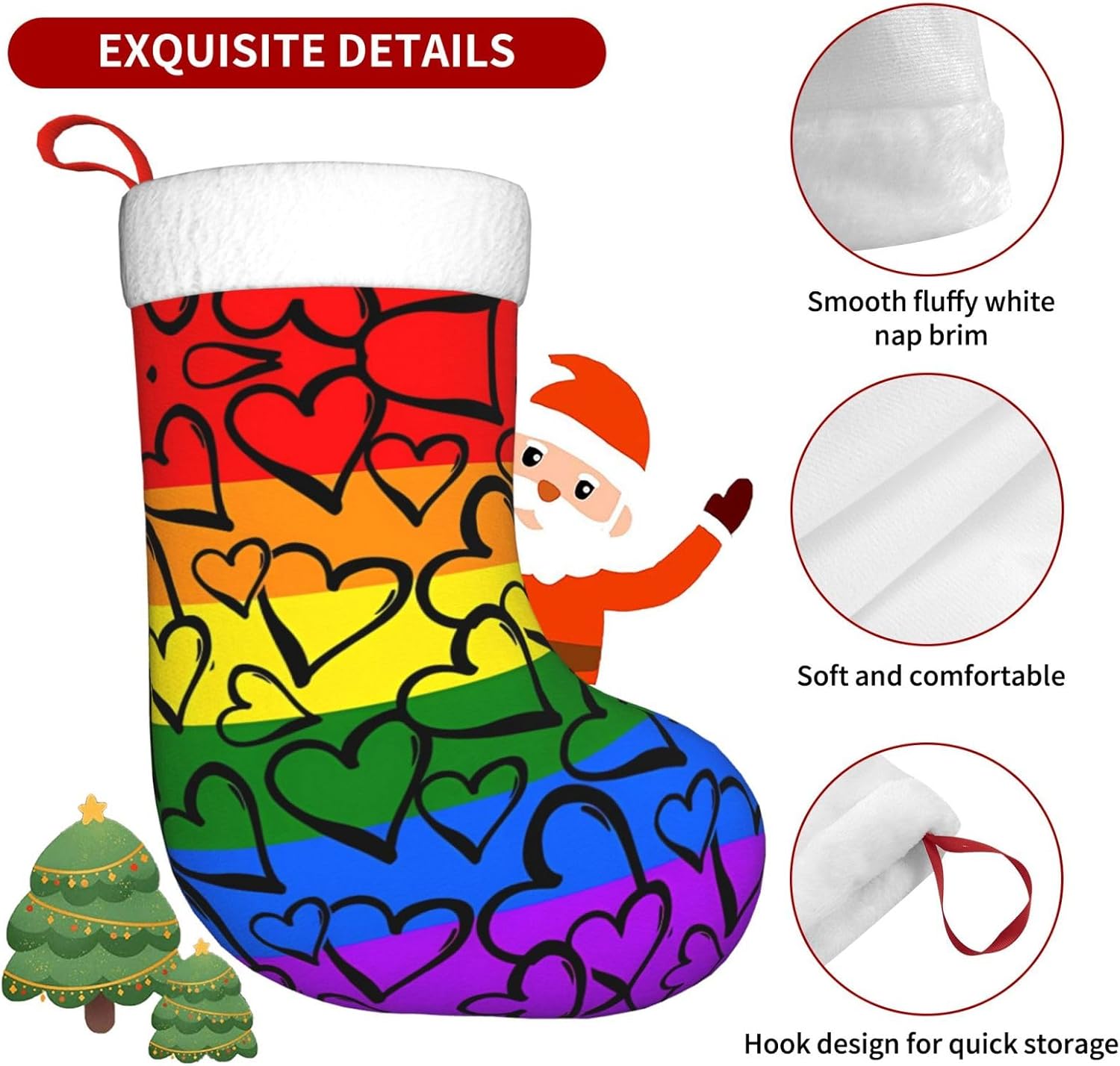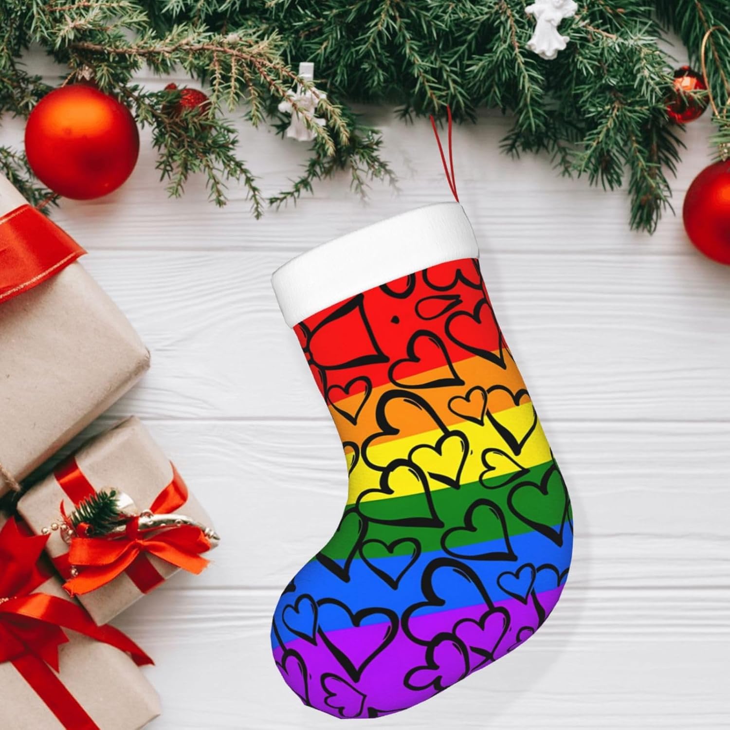 Yyhhaofa Gay Pride Rainbow Pattern Stampe Natale calze decorative Descrizione materiale: Realizzato in tessuto peluche di alta qualità I calzini sono impiombati con morbido e soffice Facecloth materiale, morbido, leggero e tattile, Boutique e materiali di alta qualità, che possono essere utilizzati per molti anni! Prestazioni del prodotto: aggiunge allegria festiva gioiosa e decora. Porta un po 'di allegria durante Halloween, Natale e Capodanno con questo divertente accessorio, che può essere riempito con piccoli regali e regali come biglietti regalo, caramelle, barrette di cioccolato e piccoli giocattoli. Scena applicabile: ideale per Natale, Halloween, vendite, promozioni, cerimonie annuali, eventi comunitari, spettacoli teatrali, feste festive, ecc. Decora uffici, alberi di Natale, caminetti e persino tavoli! Dimensioni del prodotto: la lunghezza della calza di Natale è di 45 cm. La larghezza è di 28 cm. Abbastanza grande per contenere molti piccoli giocattoli, palline di Natale e regali per i tuoi bambini. Yyhhaofa Gay Pride Rainbow Pattern Stampe Natale Decorative Calze Accessori Costruzione : Confezione da 1. I calzini hanno una cinghia per appenderli.