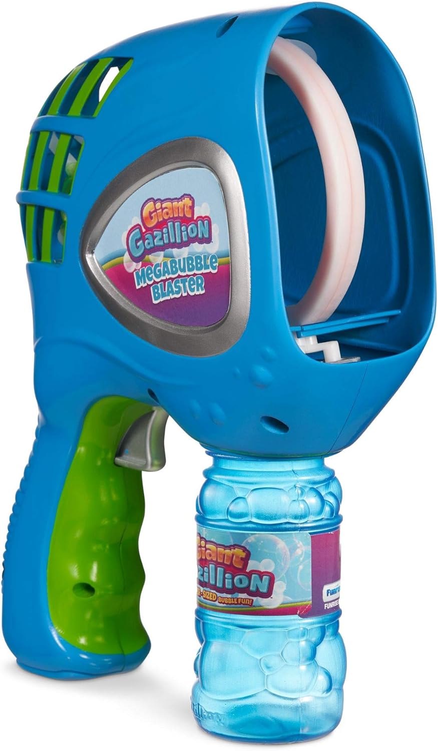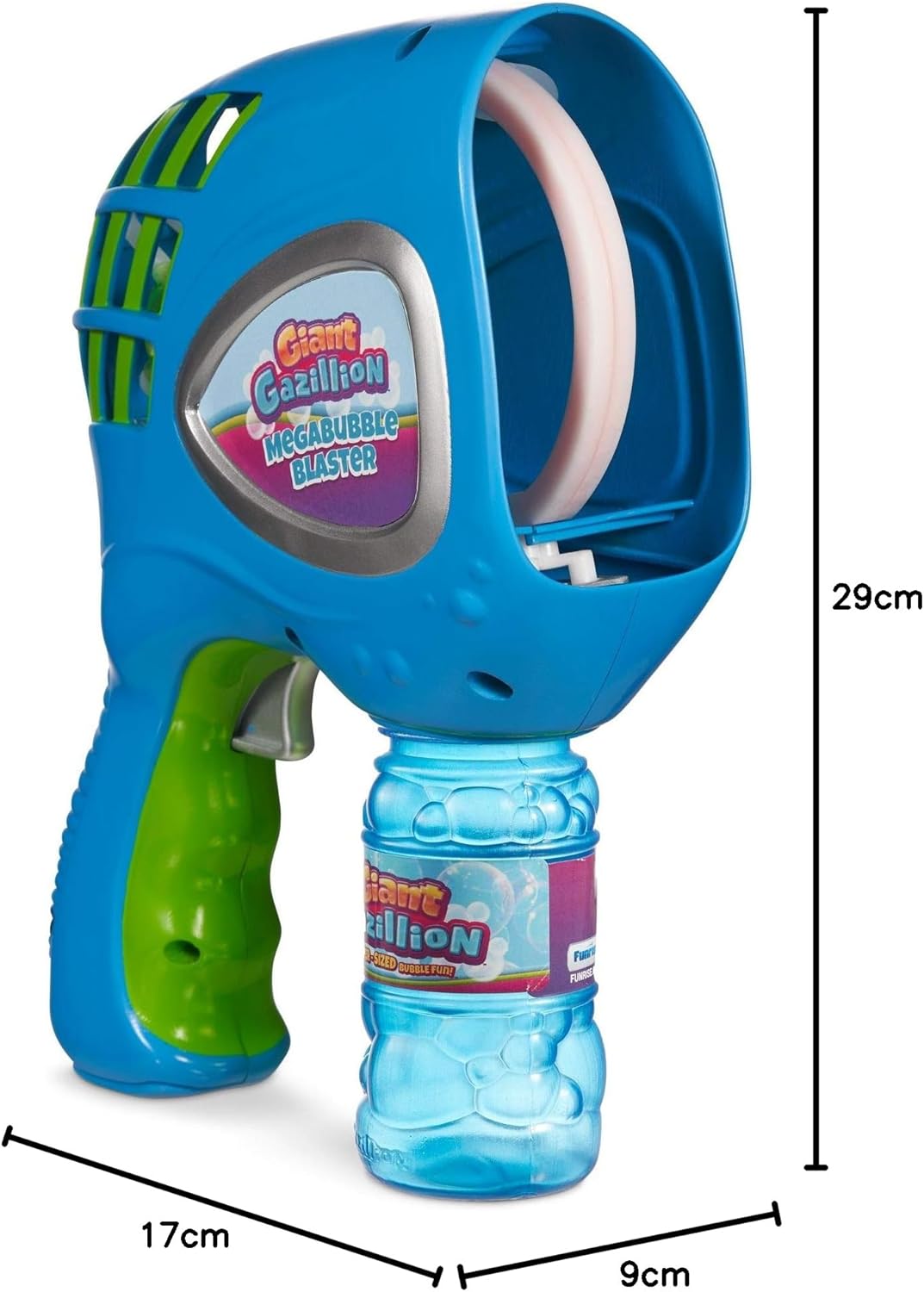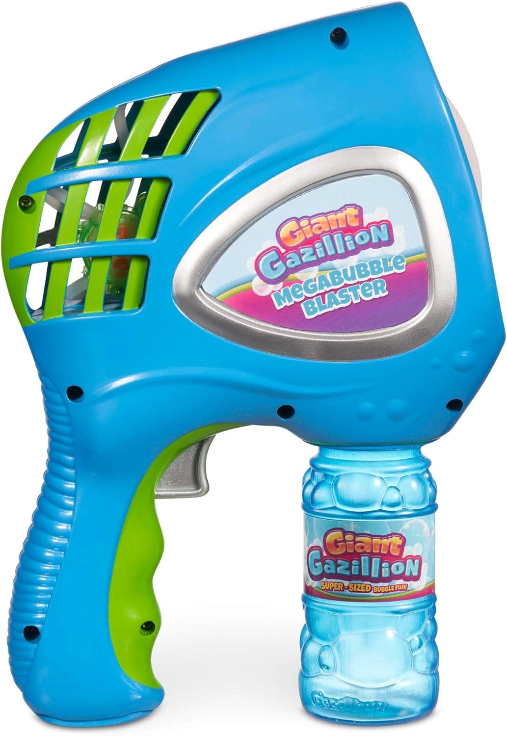 Crea bolle giganti da 6 pollici con la semplice pressione di un pulsante. Questa soluzione mega blaster e bolle produce bolle più grandi che mai Include una bottiglia da 118 ml di soluzione Gazillion Premium Bubbles Funziona con 3 batterie AA (non incluse) Dai 3 anni in su