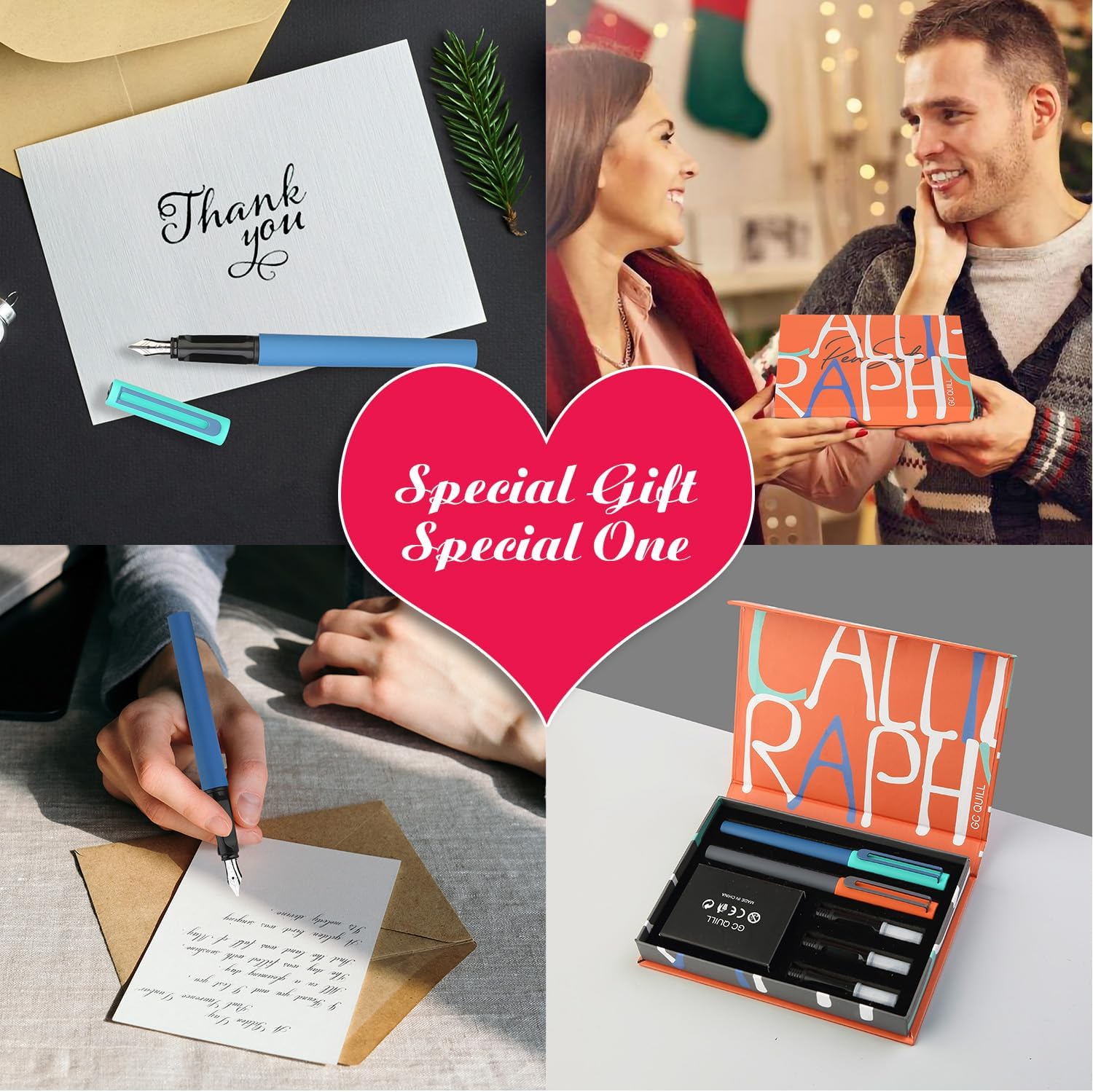 5 PUNTI PER CALLIGRAFIA - Questo set comprende 2 penne stilografiche con 5 pennini per calligrafia di diverse dimensioni, adatte per un'ampia gamma di stili di lettering. CARTUCCE D'INCHIOSTRO - 18 cartucce d'inchiostro con colori diversi, ti consentono di sperimentare una calligrafia colorata. CONVERTITORE DI INCHIOSTRO - Include 2 convertitori di ricarica di inchiostro, che possono consentirti di utilizzare il tuo inchiostro per calligrafia. IDEA REGALO - Il miglior regalo per le persone che amano le lettere e la scrittura a mano. I bambini, gli studenti e i principianti di calligrafia adoreranno questo kit. LA CONFEZIONE COMPRENDE: 2 penne stilografiche per calligrafia con 5 pennini sostituibili, 18 cartucce di inchiostro, 2 convertitori di inchiostro.
