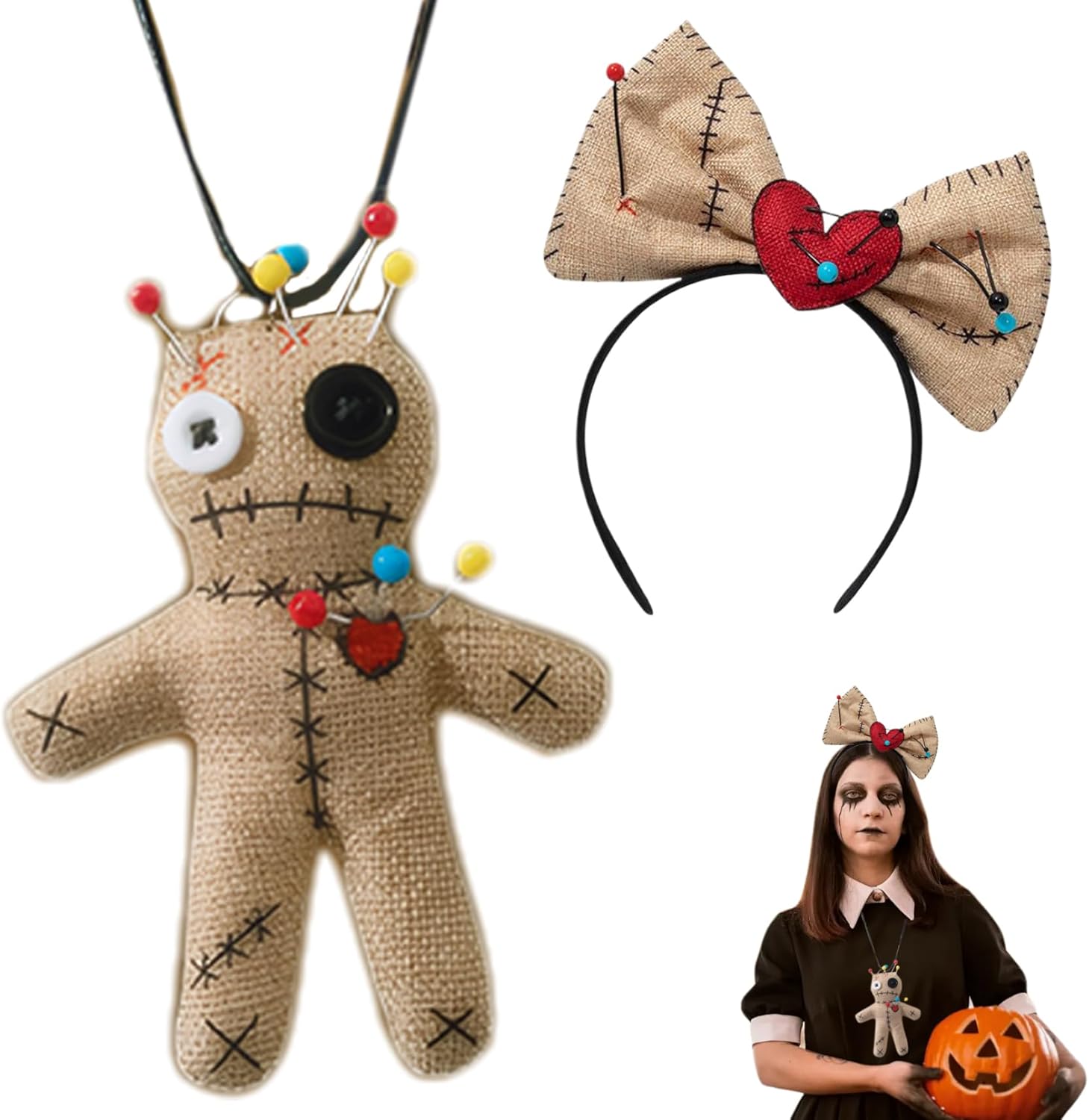 Comodo e facile da indossare: progettati per l'usura per tutto il giorno, i materiali leggeri rendono questo costume comodo e facile da indossare..Preparati ad abbracciare i festeggiamenti spettrali senza sacrificare il comfort! Complete Voodoo Doll Ensemble: questo set include due pezzi essenziali per il tuo look di Halloween: un'elegante fascia per la testa e una collana unica per bambole..Tutto ciò di cui hai bisogno per incarnare l'atmosfera spettrale ma accattivante di una bambola Voodoo! Versatile per varie occasioni: non solo per Halloween, questo costume può essere utilizzato anche per eventi a tema, esibizioni teatrali o persino servizi fotografici unici..La sua versatilità ti consente di esprimere la tua creatività in più impostazioni. Design raccapricciante ma chic: realizzato con una miscela di estetica e moda inquietanti, il nostro costume da bambole Voodoo è dotato di inquietanti dettagli di lino che ti assicurano di distinguerti in qualsiasi evento di Halloween o raccolta di cosplay..Perfetto per chiunque cerchi di fare un'impressione sorprendente! Ottimo per il cosplay e il travestimento: sia per Halloween, feste a tema o eventi di cosplay, questo costume da bambole Voodoo è una scelta eccellente per incarnare il tuo personaggio preferito..Aggiunge elementi fantasiosi e giocosi al tuo repertorio di travestimento.