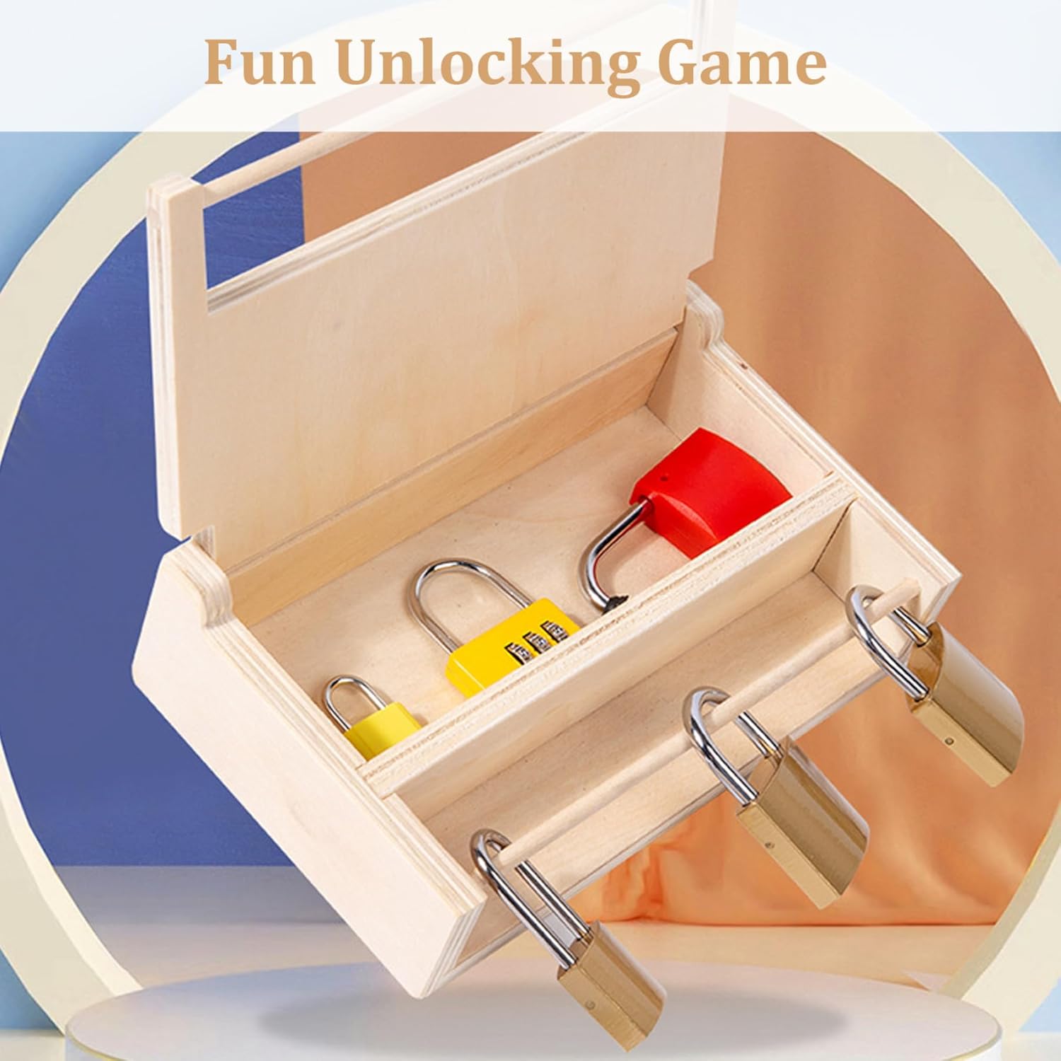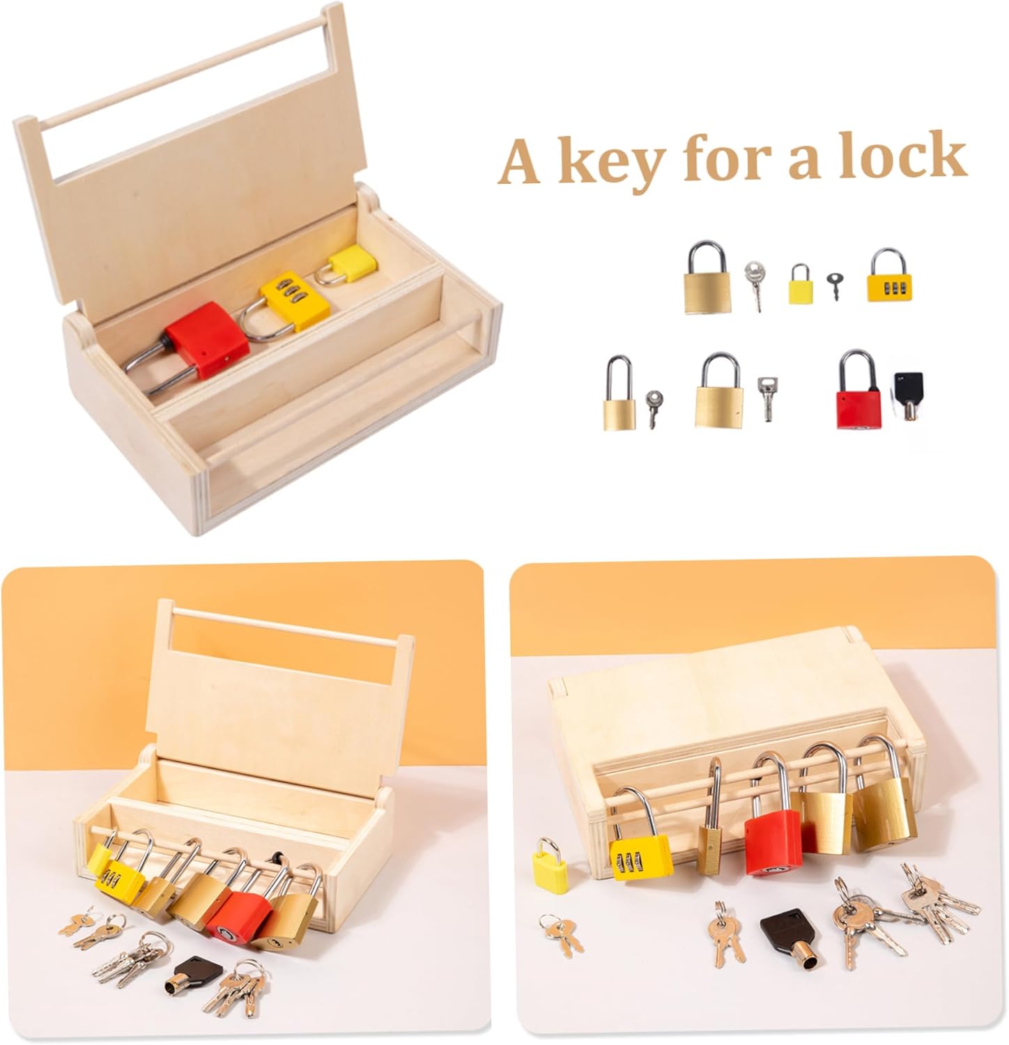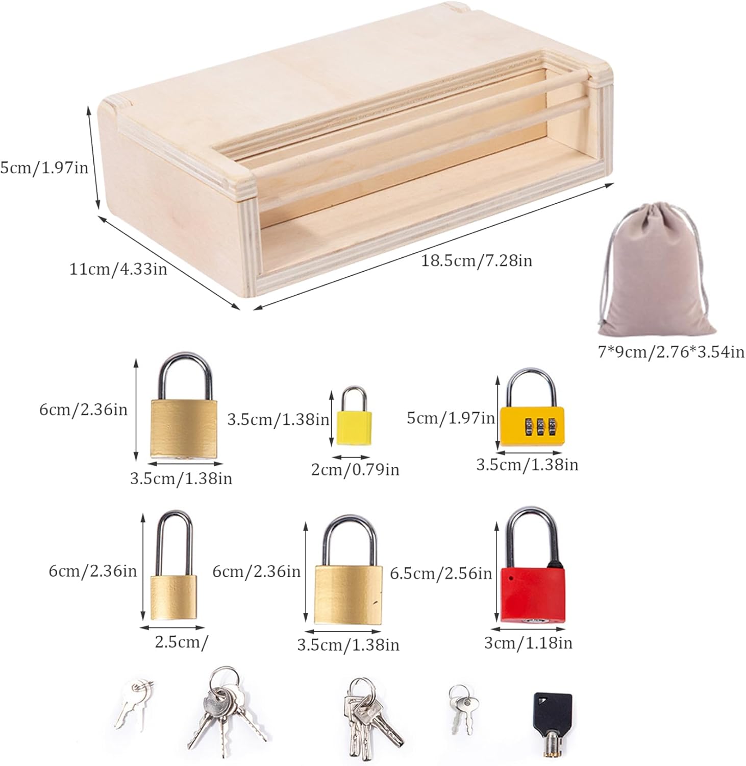 Gcroet Lucchetti e Chiavi per Bambini Set di lucchetti in Legno con Chiavi in ​​Metallo Sviluppa abilità motorie Fini Giocattoli per l'apprendimento età prescolare Educativi per Bambini...