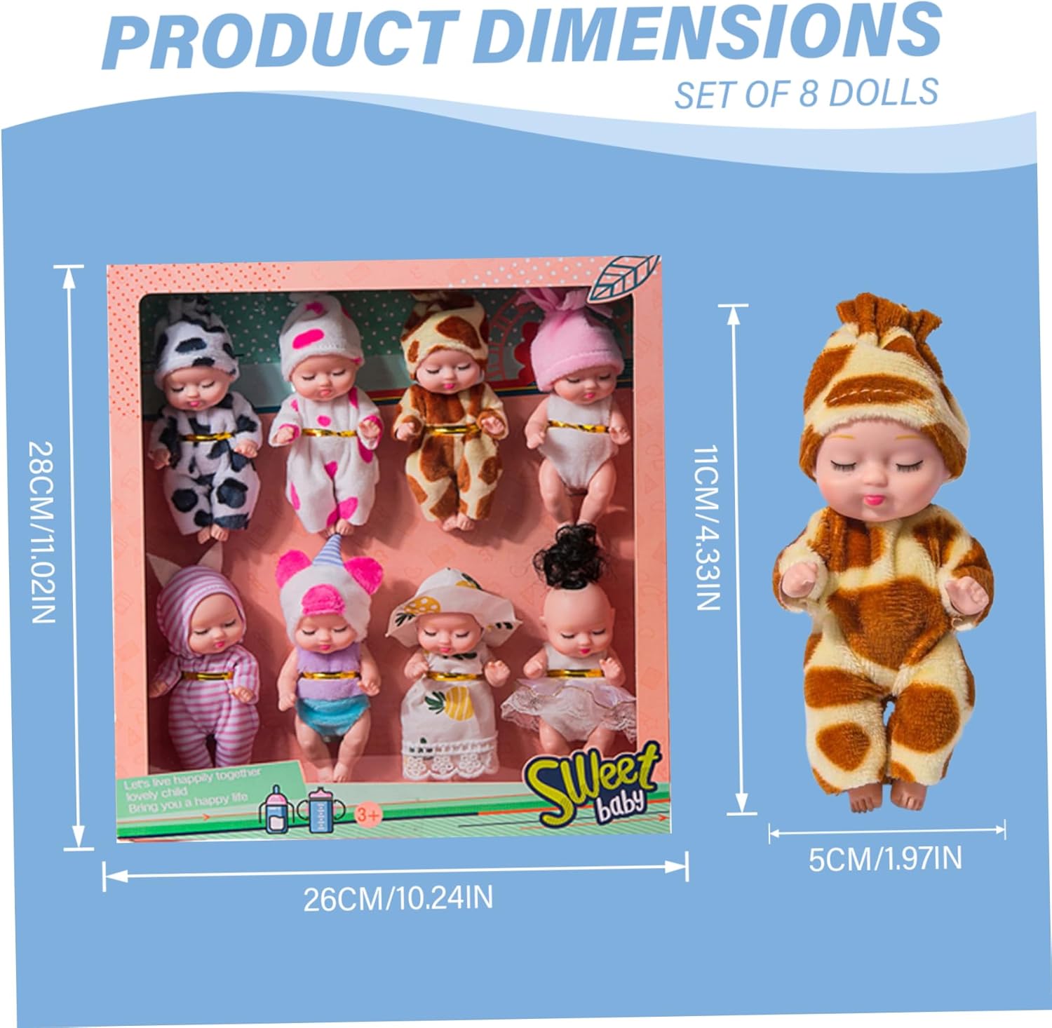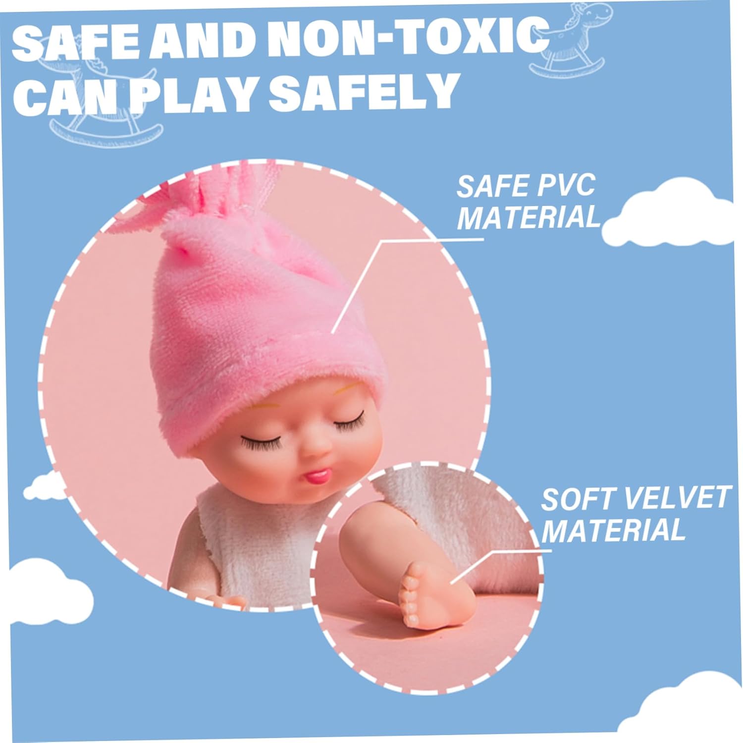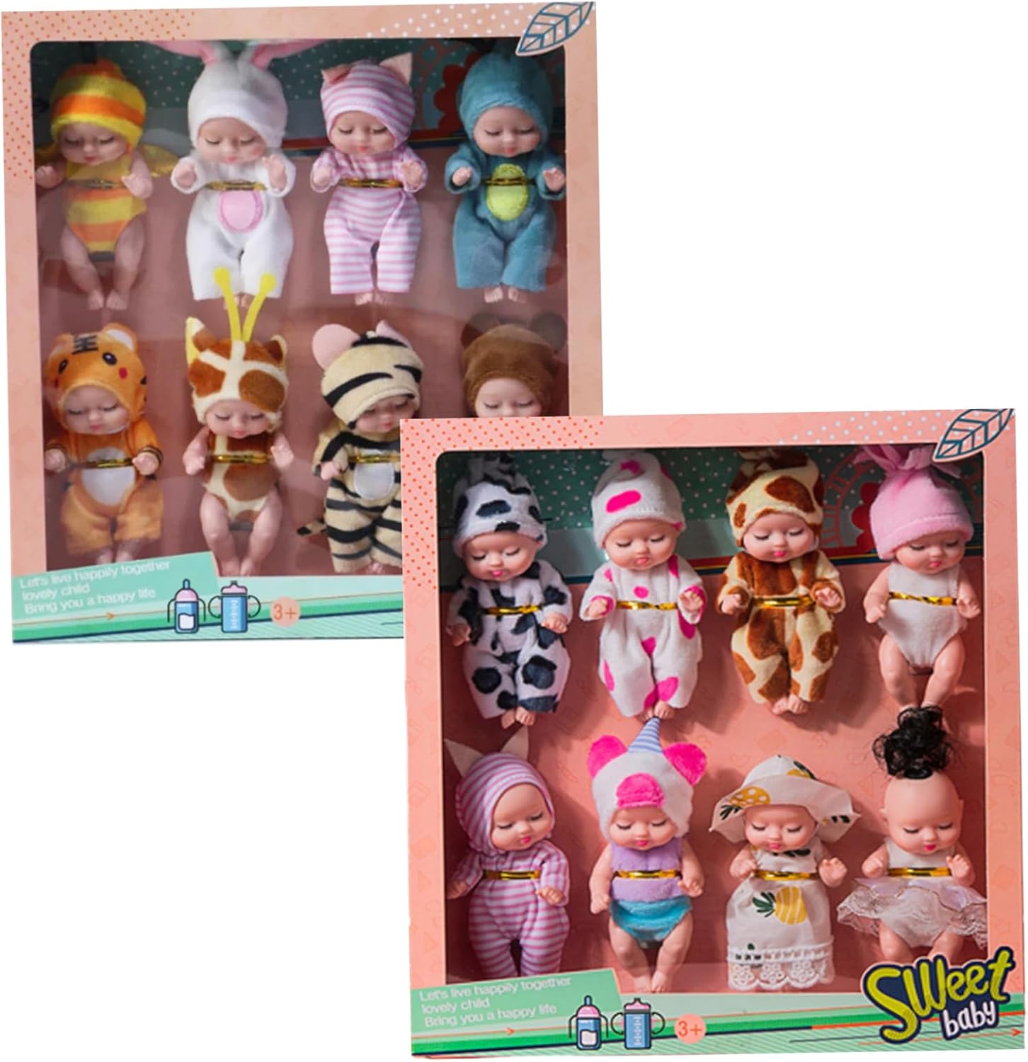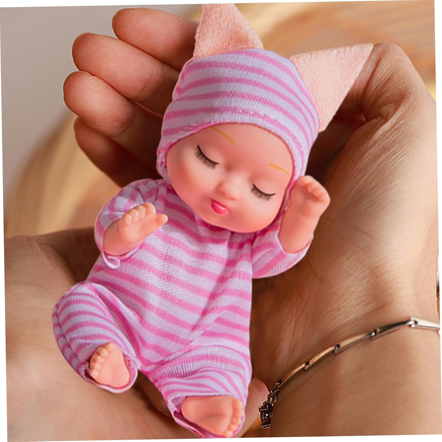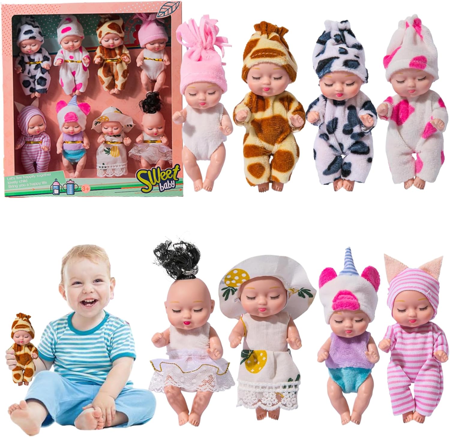 Perfect: These Small Baby Dolls make excellent presents for Christmas, Thanksgiving, birthdays, baby showers, Children's Day, and other special occasions. They are engaging, enjoyable, and support social and emotional development through play. Materiale sicuro: queste mini bambole sono realizzate in PVC e tessuto, garantendo che siano sicure e prive di odori..Non contengono sostanze chimiche nocive e sono costruiti per resistere al gioco attivo. Adatto ai bambini piccoli: ideali per i bambini dai 3 anni in su, queste bambole realistiche sono facili da maneggiare e incoraggiano il gioco fantasioso e l'espressione creativa. Piccole e portatili: con una dimensione di soli 4,3 pollici, queste mini bambole sono compatte e facili da trasportare..Possono stare comodamente nella tasca o zaino di un bambino, offrendo intrattenimento ovunque vadano. Design realistico: ogni Tiny Baby Doll presenta un design realistico, con braccia e gambe flessibili che possono essere regolate in varie posizioni..Vengono vestiti con abiti morbidi e indossabili a tema camera da letto, che ne aumentano il fascino e la carineria.