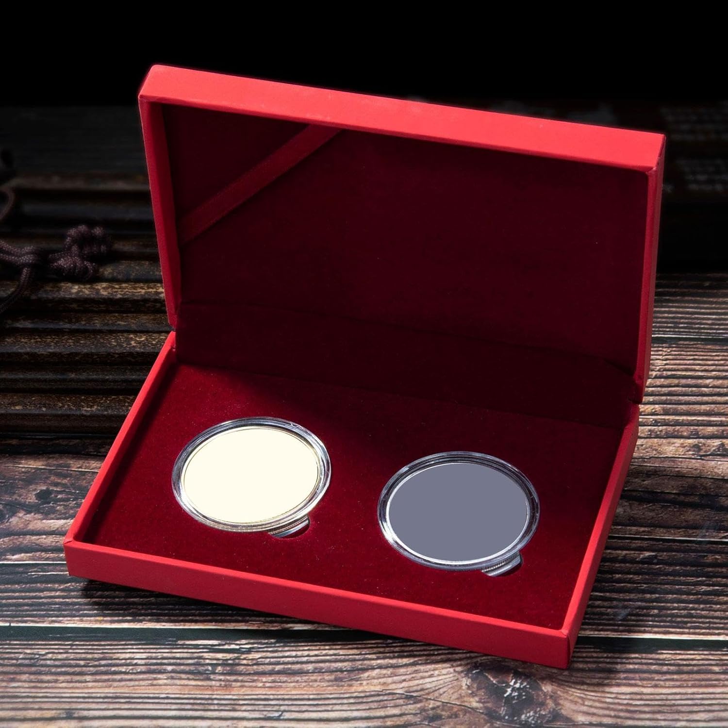 [Scatola di raccolta]: una scatola per collezionare monete, souvenir, distintivi, medaglie e monete sfida. Può essere posizionato in casa, in soggiorno, in vetrina. Portatile e leggero: la gettoniera ha un design compatto, facile da trasportare e riporre. Adatto per uso domestico e viaggi all'aperto. [Display]: la scatola per la raccolta di monete commemorative è perfetta per esporre oggetti da collezione, braccialetti, orecchini e altre piccole opere d'arte. [Regalo] La confezione regalo con medaglia è la confezione regalo perfetta per famiglia, bambini, amici e collezionisti. [Materiale durevole]: la vetrina per monete è realizzata in materiale di alta qualità, robusta e imbottita all'interno per proteggere le monete da urti o danni (con o senza rivestimento della bocca, casuale).