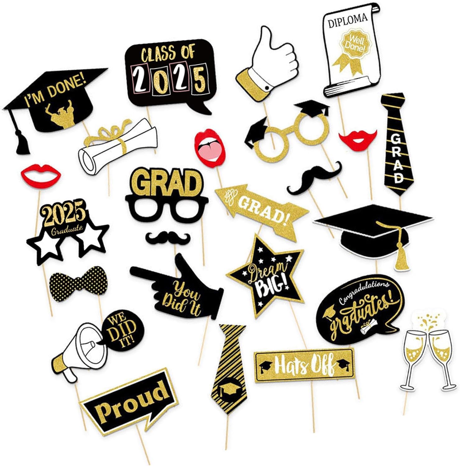 Ogni pezzo stravagante in questa collezione a tema incoraggia l'espressione creativa e funge da doni laurea, ottimo per la costruzione cameratismo festival Gathering Realizzato in carta, questo set include 25 tipi spettacoli fotografici divertenti come cappello da laurea, microfoni giocattoli, bicchiere vino, cravatta e occhiali per occhiali per opportunità fotografiche dinamiche Celebra la classe 2025 laurea con questo cartello cartaceo, progettato come centrotavola e regali festa laurea unici memorabile decorazione da tavolo Adatto per 2025 laureato, famiglia e cercano festa essenziale, migliorando le foto gruppo e un momento pieno risate durante le celebrazioni della laurea Elevando le feste laurea, oggetti scena fotografici o i centrotavola per tavoli da pranzo con questi accessori fotografici che raddoppiano come decorazione per la festa mentre catturano la memoria del successo accademico