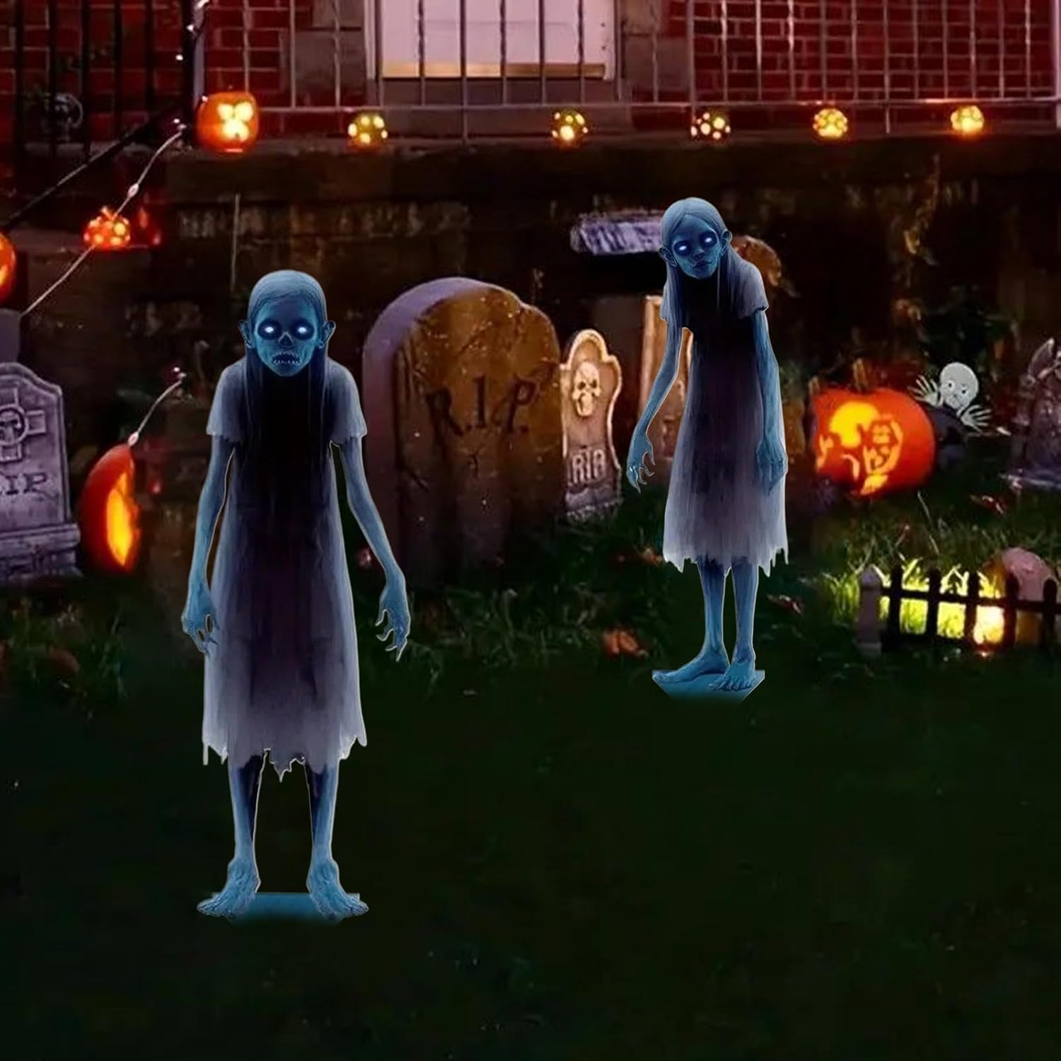 Design horror coinvolgente: progettati con una doppia silhouette di fantasma e un'arte scultorea 3D, questi inserti hanno creato ombre spaventose che migliorano gli effetti del chiaro di luna per un'atmosfera horror coinvolgente e una maggiore presenza inquietante. Design resistente alle intemperie: la costruzione di elementi esterni con una struttura frangivento rinforzata che garantisce durata e stabilità, è eccellente per l'installazione a pavimento o per allestimenti montabili a parete in molteplici esposizioni stagionali. Accattivante esposizione stagionale: migliora il tuo spazio con questo allestimento di Halloween, combinando effetti di luce affascinanti e dettagli intricati per creare un'atmosfera coinvolgente attraverso sequel interattivi e miglioramenti atmosferici. Assemblaggio senza attrezzi: goditi un assemblaggio rapido senza attrezzi e crea un'atmosfera spettrale con il set combinato in due pezzi, ideale per transizioni di scena senza soluzione di continuità e display festivi di Halloween. Costruzione in metallo di lunga durata: costruiti per resistere a climi rigidi, questi inserti combinano metallo con densità con proprietà antiruggine e forniscono un supporto durevole e valido per decorazioni interne e allestimenti di Halloween all'aperto.