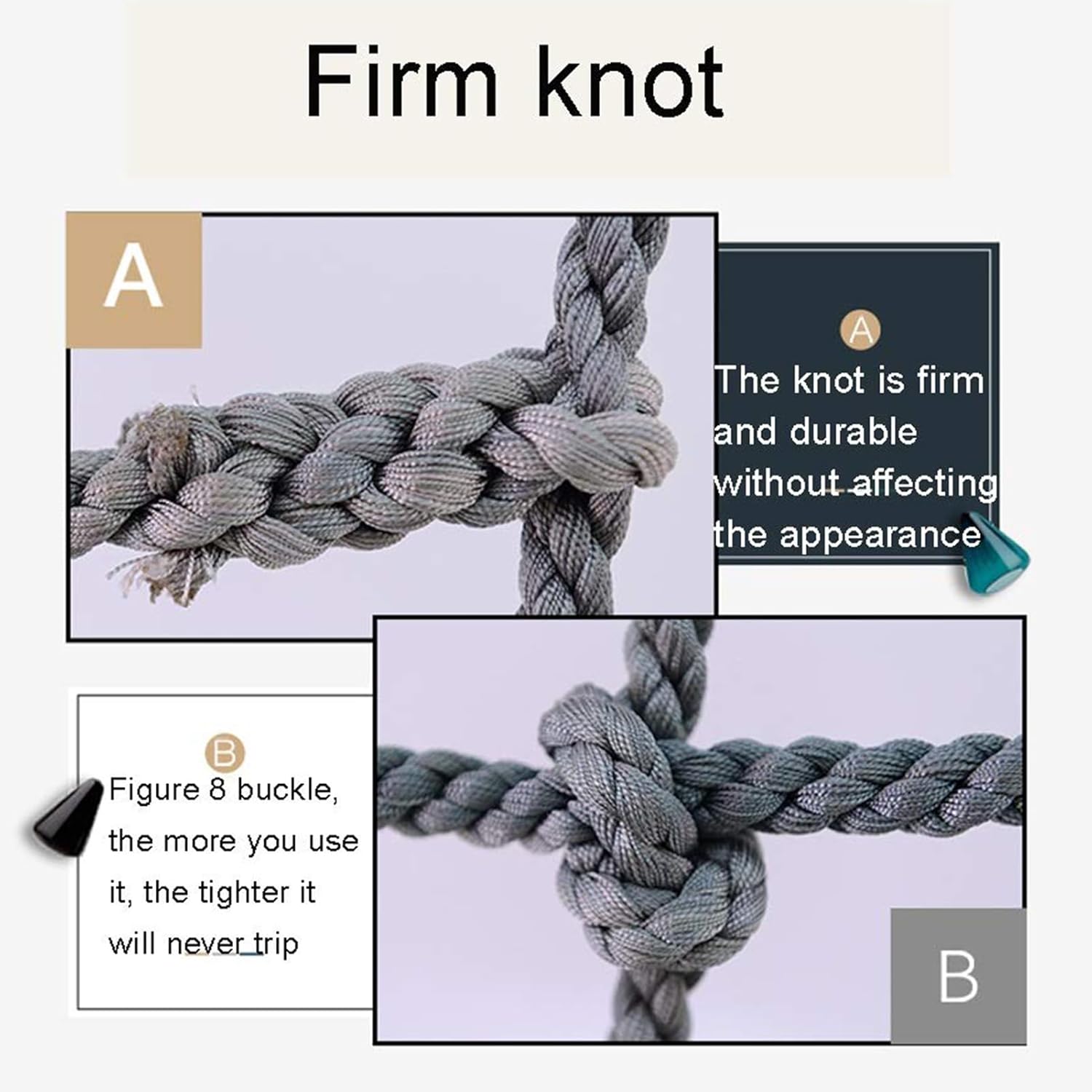 Specifiche della rete in corda: diametro della corda: 16 mm (0,63 pollici), maglia della rete in corda: 20x20 cm (7,9x7,9 pollici); Abbiamo una varietà di dimensioni tra cui scegliere. È possibile personalizzare le reti da arrampicata in altre dimensioni e specifiche. Materiale della rete in corda: la rete da arrampicata è realizzata a mano in corda in fibra di poliammide. La forza è uniforme e non facile da staccare. La superficie in rete è altamente resistente agli urti e portante. È realizzata in treccia multifilo ed è resistente all'usura Protezione di sicurezza: la rete in corda è adatta per balconi, scale, corridoi, cortili, scuole, palestre, campi da gioco e club sportivi per impedire la caduta di persone o oggetti e garantire la sicurezza di animali domestici e persone Rete decorativa multifunzionale: può essere utilizzata all'interno come decorazione, rete per soffitto, rete per pareti fotografiche, rete per asciugatrice e divisorio; può essere utilizzato all'aperto per parchi di divertimento, strutture pubbliche, recinzioni paesaggistiche e protezione di ponti sospesi. Promemoria caldo: dopo aver realizzato la rete di corda, potrebbe esserci un odore che scomparirà dopo la ventilazione e l'asciugatura. La rete in corda di fibra di poliammide diventa grigia dopo aver preso il sole, il che è normale