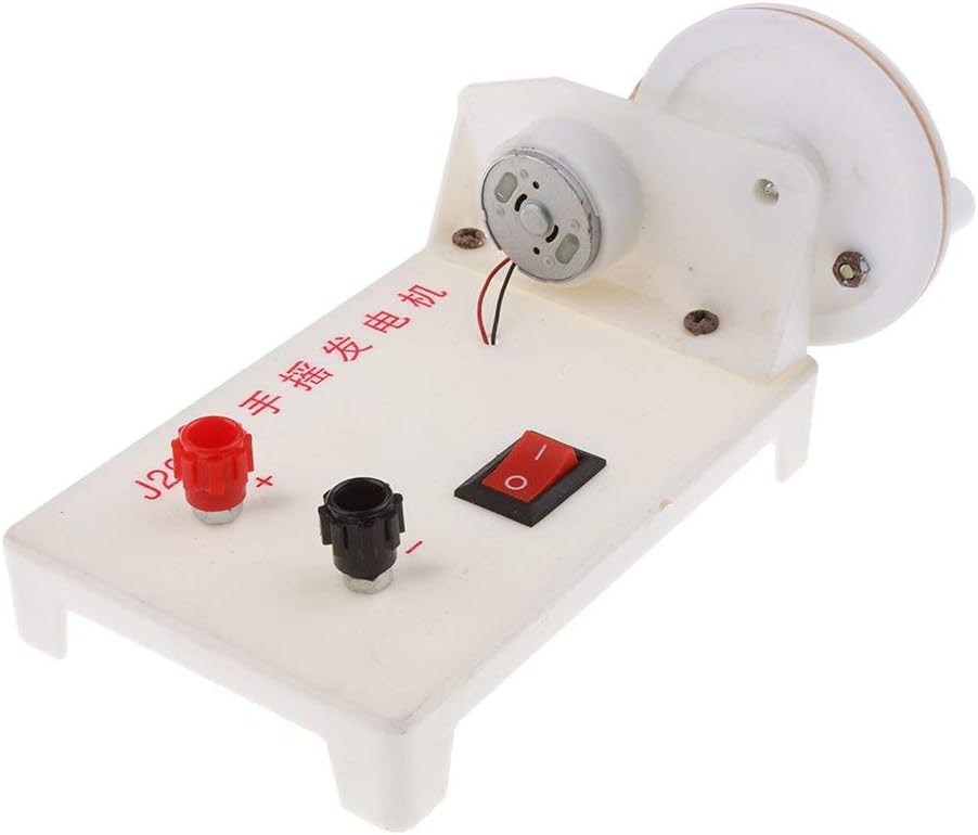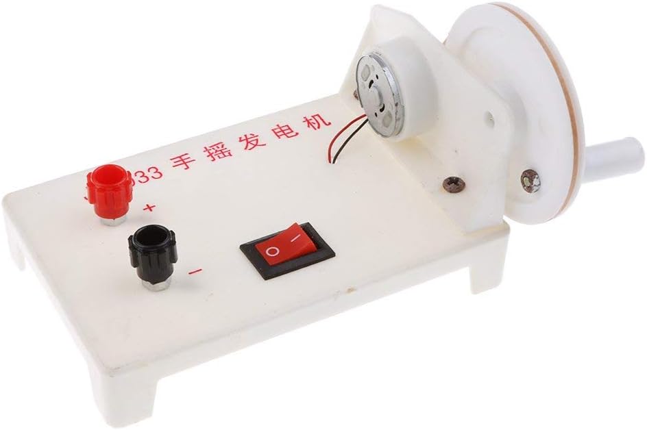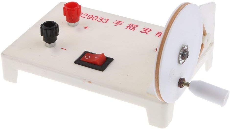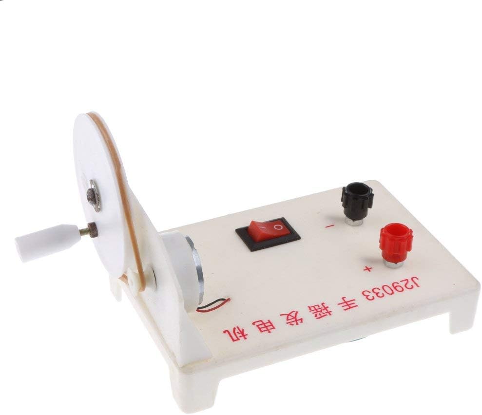 Generatore elettrico manuale piccolo e compatto, può essere utilizzato per creare energia senza batterie Basta girare la maniglia per generare elettricità e più velocemente si gira la maniglia, più energia si genera Con pulsante di accensione/spegnimento e con giunto positivo e negativo per il collegamento ai circuiti elettrici Ideale per dimostrazioni e sperimentazioni di fisica/scienza in classe Per uso didattico o di laboratorio