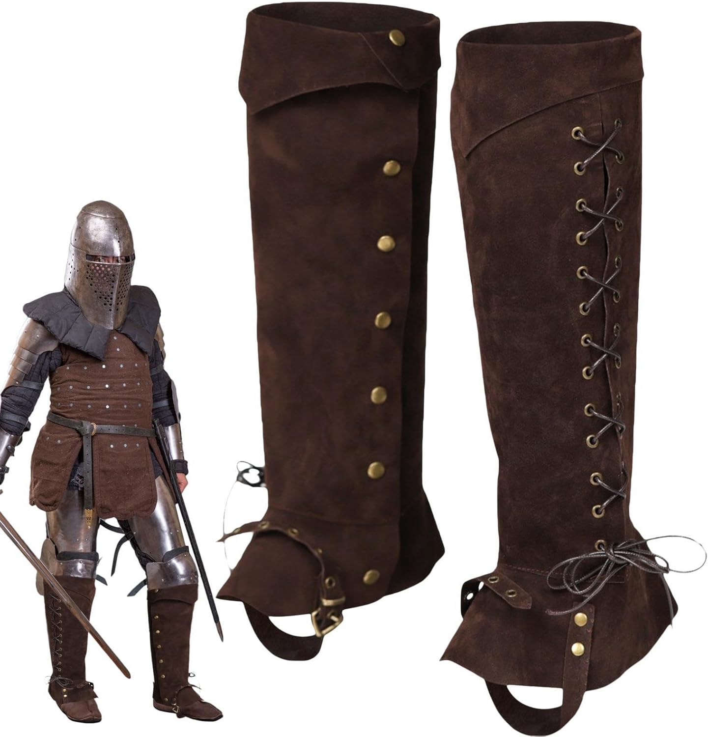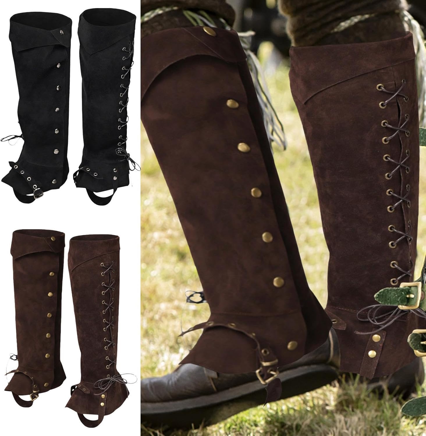 Stile cavaliere retrò: indossare copriscarpe pirata può aiutare a creare uno stile retrò da cavaliere perché è un'imitazione degli stivali da pilota medievale da pirata per adulti con uno stile retrò. Materiale traspirante: i copriscarpe sono comodi, traspiranti, forti, resistenti all'usura e possono essere utilizzati a lungo perché gli stivali da pirata sono realizzati in pelle artificiale. Comodi da indossare: il costume copriscarpe è leggero (circa 300 g), quindi è comodo da indossare. Allo stesso tempo, lo stivale da pirata è pieghevole e facile da riporre e trasportare. Semplice da regolare: con un design con corda elastica, è possibile regolare facilmente i copriscarpe da pirata da uomo per adattarsi meglio agli stivali da pirata in base alla circonferenza del polpaccio. Ampia gamma di applicazioni: è possibile utilizzare i copriscarpe vichinghi per fotografia, feste in maschera, giochi di ruolo, drammi, Halloween, Natale e stivali da pirata, altre attività e uso quotidiano.