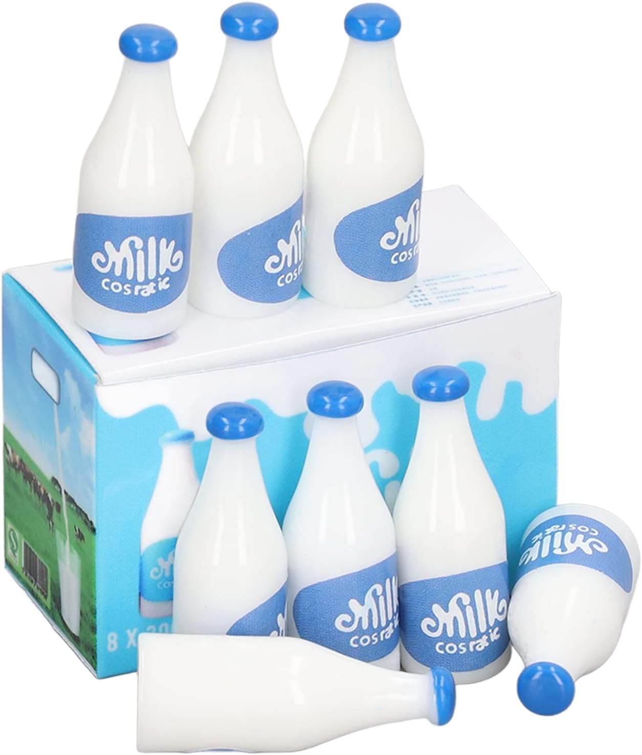 Regali per le persone: questo set di bottiglie dall'aspetto delicato e dalla lavorazione squisita è un ideale per i giocatori di bambole, lo adoreranno. Doppio scopo: non puoi posizionare le bottiglie nella casa delle bambole per la decorazione, ma puoi anche usarle come oggetti di scena o ornamenti per foto. Accessori accattivanti! Per la casa in miniatura 1:12 o 1: 6: questo set di modelli di mini bottiglie di latte è adatto per la casa o la bambola in miniatura 1:12 o 1: 6, decorazione delicata per la tua casa delle bambole. Dettagli vivaci: ci sono delicati dipinti sulla bottiglia, che possono creare un'aria reale e casual e aggiungere divertimento al posizionamento della tua casa delle bambole. Materiale plastico: realizzato in plastica, questo set di bottiglie è resistente alle cadute e impermeabile, ha una lunga durata.