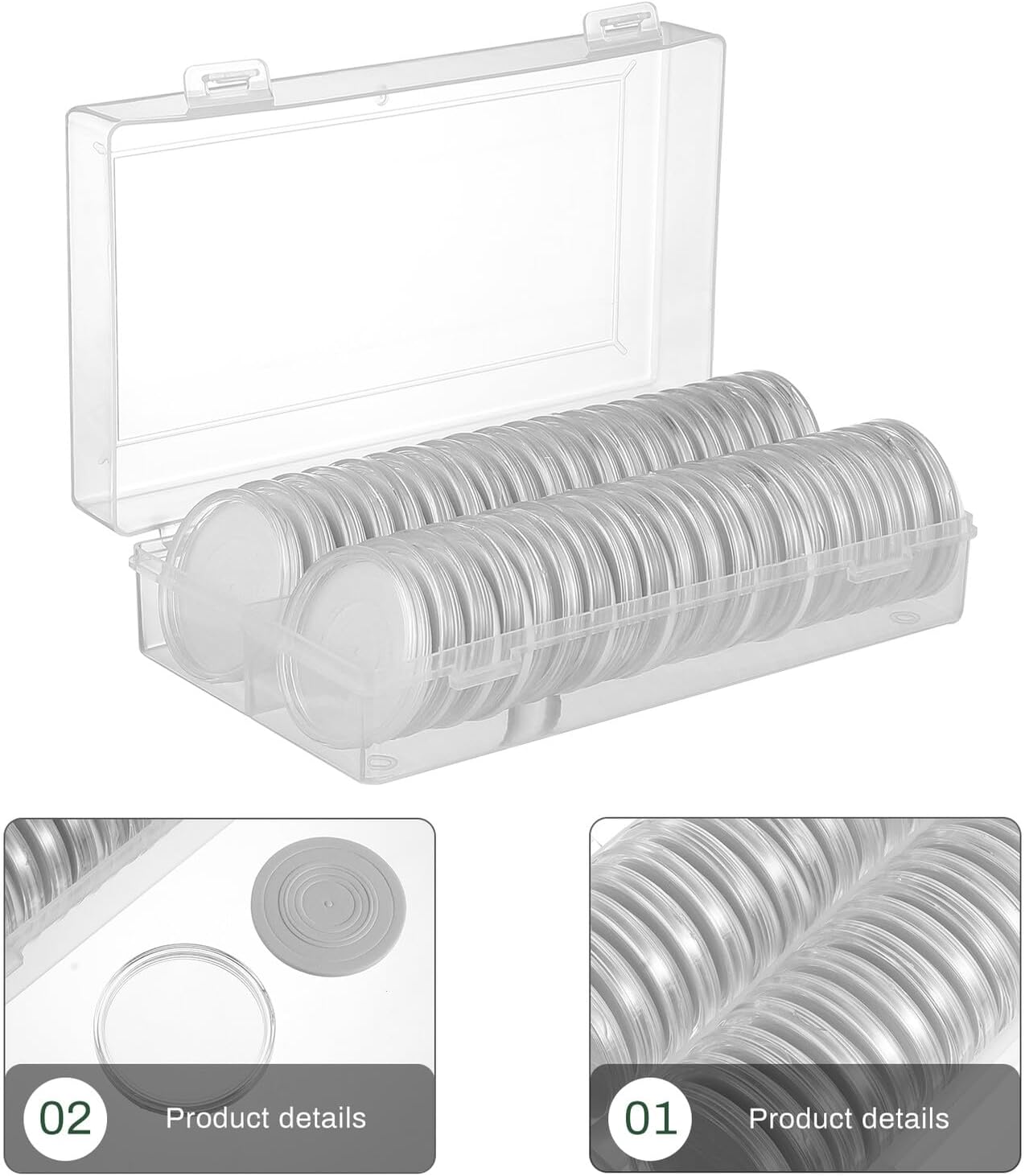 Dimensioni versatili: questo set offre sei diverse dimensioni, adattandosi a un'ampia gamma di monete per le esigenze di ogni collezionista, custodia per capsule per monete, scatole per monete per collezionisti Capsule per la raccolta di monete: le dimensioni sono 16/20/25/27/30/38 mm, adatte a contenere la maggior parte dei tipi di monete, porta monete con guarnizione Scatole porta monete: un regalo fantastico per i collezionisti di monete per conservare e proteggere le loro monete preferite, custodie per monete Porta monete: un regalo ideale per gli appassionati di monete, questo set offre un modo premuroso per aiutarli a salvaguardare le loro preziose monete, contenitore per monete, porta monete Capsule per monete assortite: ogni porta capsule per monete ha una piccola parte di scanalatura nel bordo esterno, puoi aprire i porta capsule per monete facilmente e comodamente con la mano, scatole per monete