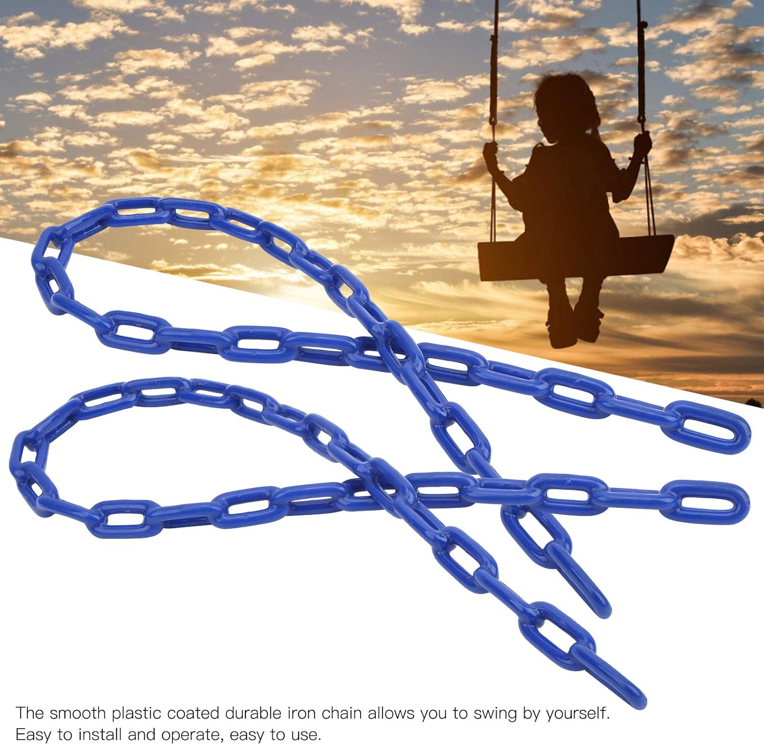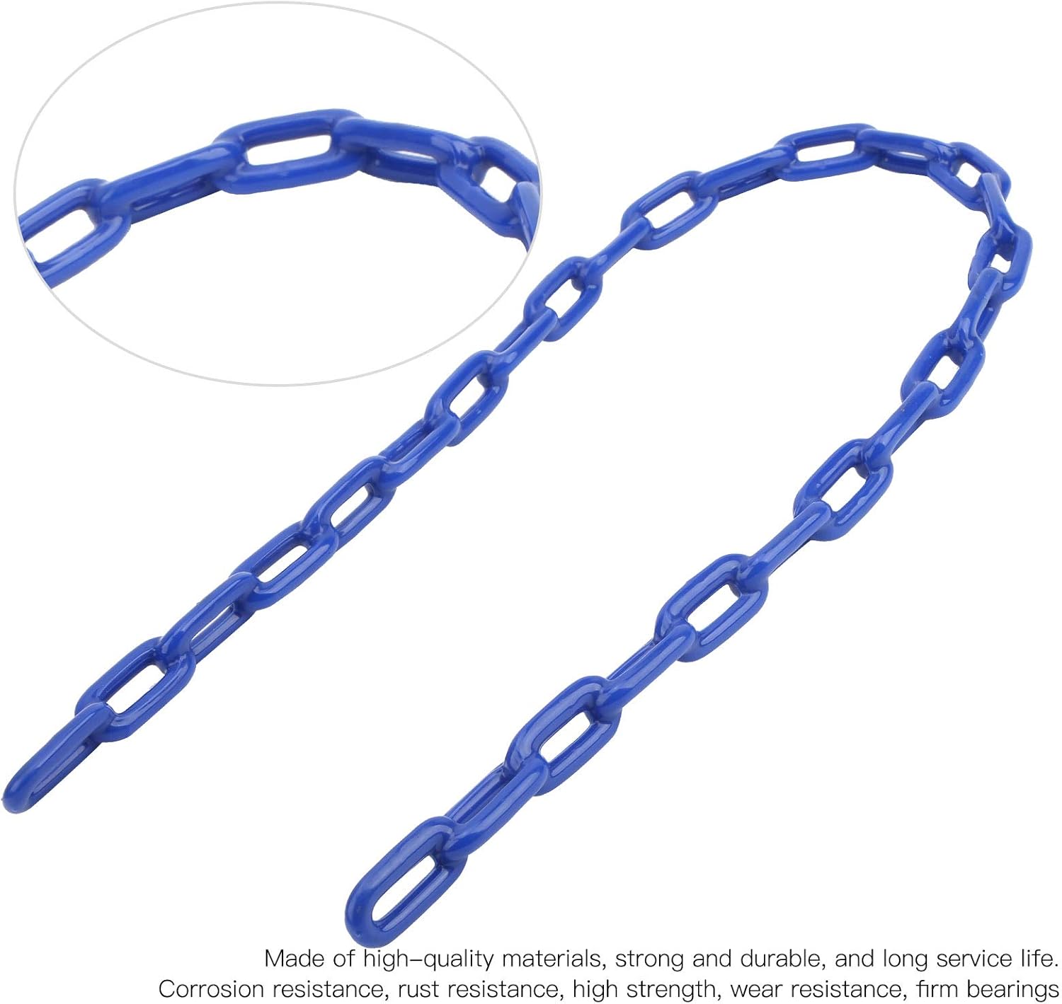 Resistenza alla corrosione, resistenza alla ruggine, elevata resistenza, resistenza all'usura, cuscinetti solidi. Realizzato con materiali di alta qualità, resistenti e durevoli e di lunga durata. Ottima fattura, può sostituire la catena usurata o vecchia. La catena di ferro resistente rivestita in plastica liscia ti consente di oscillare da . Facile da installare e utilizzare, facile da usare.