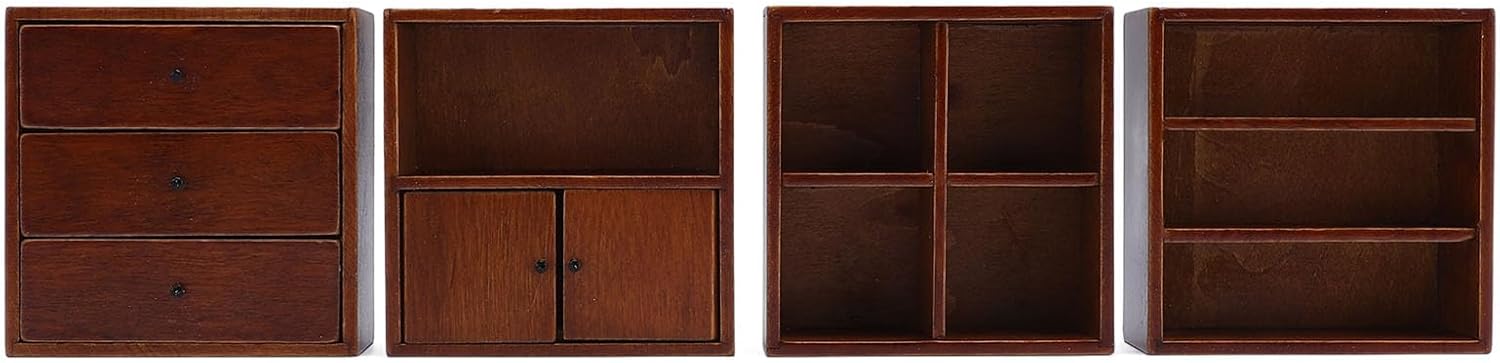 [Design sofisticato] Adatto per da bambole o bambole in scala 1/12, questi comodini portano un tocco di eleganza con il loro design vintage e una bellissima artigianato in legno, arricchendo la tua collezione di delle bambole. [Utili multipli] Questi armadietti in miniatura non sono ideali per scene di bambole, matrimoni o panetteria, ma adatti anche per giardini in miniatura, display bonsai, decorazioni per finestre e display di piante, migliorando vari scenari in miniatura. [Decorazioni versatili] Gli armadi combinati a colori di castagno sono per vari ambienti di , tra cui soggiorno, camere da letto, sale da pranzo, studi, sale da cucire e bagni, soddisfando tutte le tue esigenze di decorazione. [Affascinante stile vintage] Caricato con amore, questo mobile per bambole presenta un design vintage che è ben fatto, bello e generoso, aggiungendo carattere e fascino al tuo decorazione per la casa delle bambole. [Artigianato di qualità premium] Questo scaffale della casa delle bambole è costruito per durare con un artigianato in legno raffinato e dettagli affascinanti, aggiungendo raffinatezza ai mobili in miniatura e all'arredamento della casa.