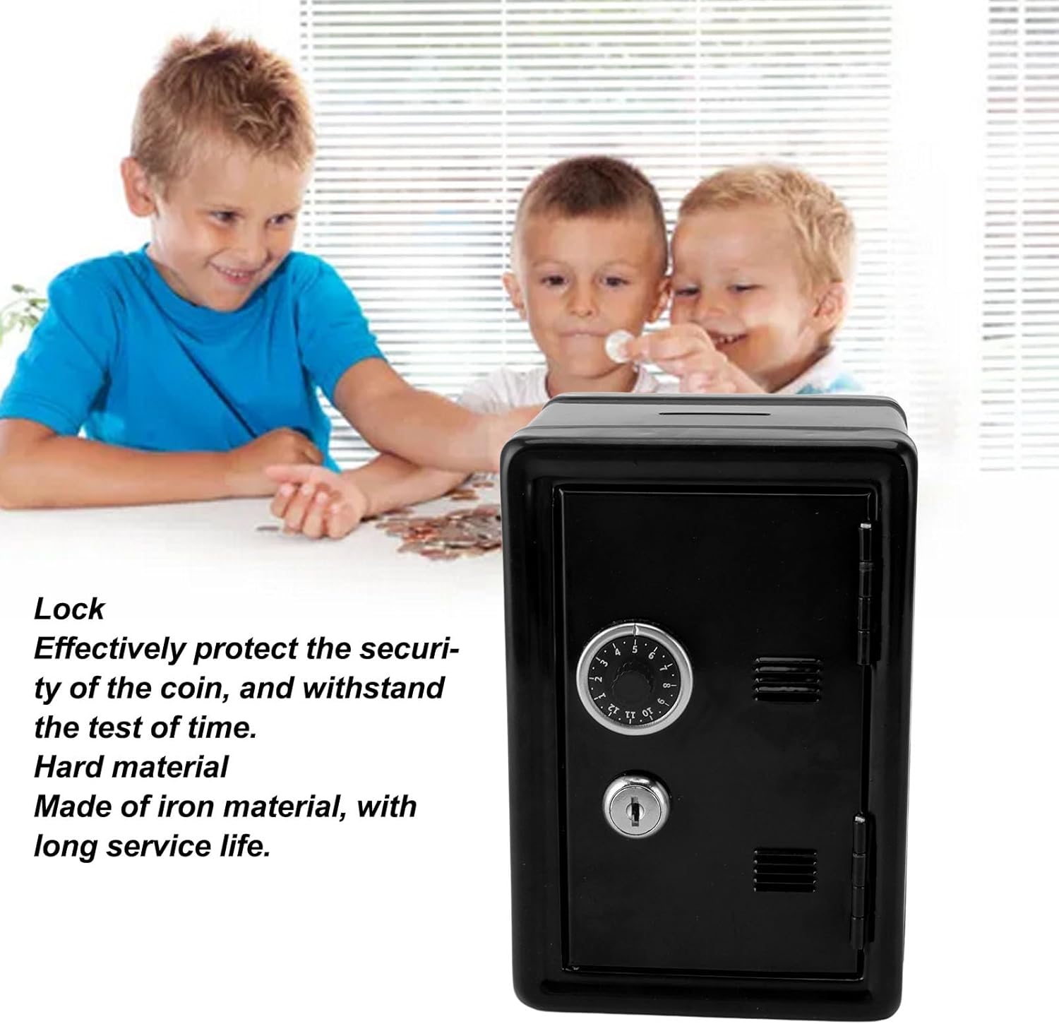 [Design creativo] Un aspetto unico e carino per attirare l'attenzione dei bambini [Blocco di sicurezza] dotato di un blocco e 2 chiavi per la tranquillità [Materiale robusto] realizzato in metallo duro per durata e affidabilità [Valore educativo] aiuta i bambini a sviluppare un senso di risparmio e amare denaro [Risparmio spaziale] Design verticale per un facile posizionamento e uso multifunzionale
