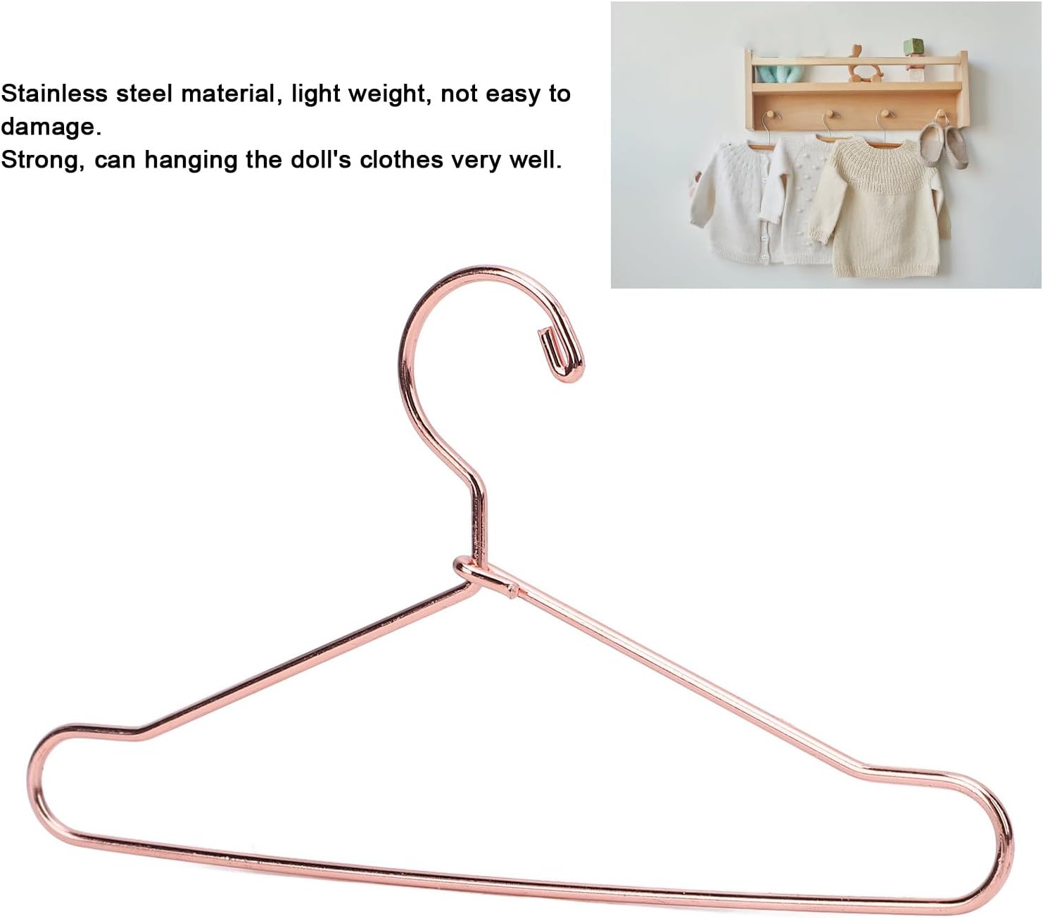 Costruzione in acciaio inossidabile: realizzate in acciaio inossidabile, queste grucce sono abbastanza robuste da contenere saldamente i vestiti delle bambole pur essendo leggere, rendendole facili da maneggiare, trasportare e riporre. Quantità generosa: il set comprende 10 grucce per bambole, fornendo un'ampia fornitura per soddisfare le diverse esigenze. Adatto per organizzare abiti diversi, aggiungendo divertimento al guardaroba della tua bambola. Risparmio di spazio: questi ganci compatti per bambole occupano spazio minimo nella tua casa delle bambole. Le loro dimensioni ridotte garantiscono stoccaggio ordinato, consentendo la massima organizzazione senza ingombrare l'ambiente. Accessorio per casa delle bambole: questi mini appendiabiti per casa delle bambole sono indispensabili per mantenere l'ordine nella tua casa delle bambole. Garantiscono che gli abiti delle bambole siano organizzati e facilmente accessibili, migliorando il divertimento durante il gioco. Migliora lo stile: questi appendiabiti per casa delle bambole non mantengono i vestiti in ordine, ma migliorano anche l'estetica generale del guardaroba della tua bambola, assicurando che ogni outfit sia ben presentato e organizzato.