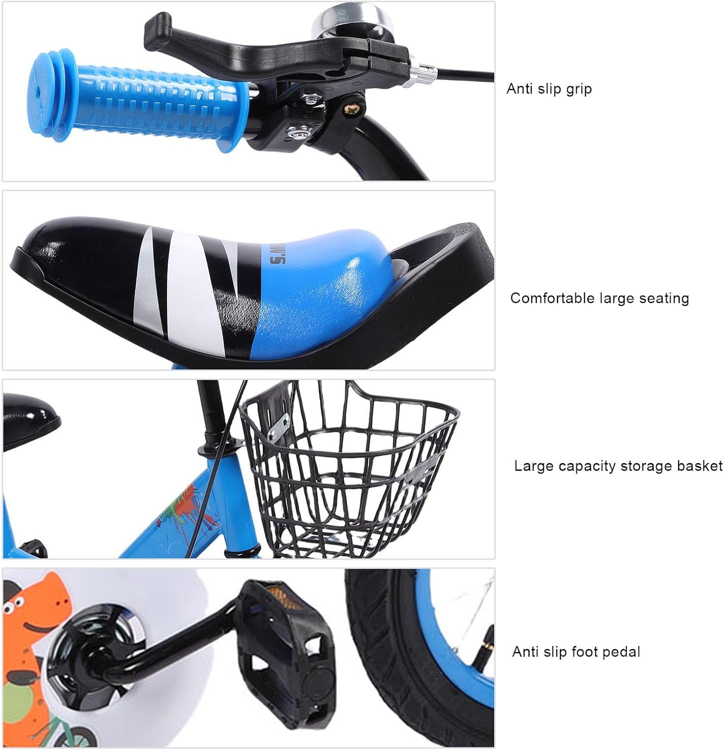 Per età da 3 a 10: progettata per bambini dai 3 ai 10 anni, la nostra bici offre un'esperienza di guida divertente che promuove lo sviluppo fisico sanitario man mano che crescono. Controllo senza sforzo per l'apprendimento facile: con una maneggevolezza leggera e intuitiva, questa bici rende l'apprendimento a guidare un gioco da ragazzi, aiutando a coltivare l'indipendenza e la fiducia di tuo figlio. Costruzione robusta e : con un design affidabile del telaio di ferro, la nostra bici garantisce sicurezza durante le giostre, dando ai genitori la tranquillità mentre i loro piccoli si godono la vita all'aria aperta. Design divertente e colorato: l'aspetto vibrante e affascinante della nostra bici è progettato per attirare l'attenzione dei bambini, migliorando il loro interesse per le attività in bicicletta e all'aperto. Sedili e manubrio regolabili: dotati di sedili e manubrio regolabili, questa bici si adatta alla crescita di tuo figlio, offrendo comfort e comodità per anni di divertenti giostre.