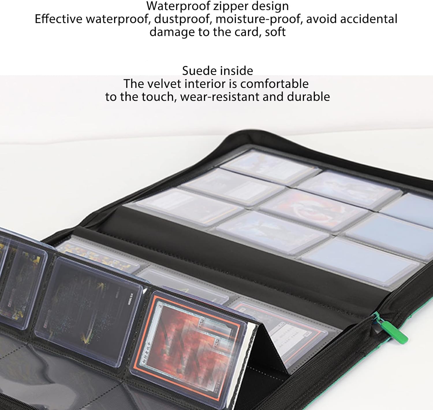 Grande capacità: il titolare della carta di scambio ha 9 tasche su ciascun lato, per un totale di 40 lati e può contenere 360 carte, rende le tue carte nascoste in sicurezza. Materiale: realizzato con durata e materiale PU a prova di pioggia, è robusto, resistente alla pioggia, ultra forte e non facile da rompere, proteggendo la tua carta da sbiadi e macchie. Pratico: le maniche ultra chiare sono ben progettate per il display e ti consentono di vedere facilmente i dettagli completi, proteggere e organizzare carte, resistenti alla pioggia, a prova di scratch, a prova di polvere. Applicazione: compatibile con carte con carte da 97x70mm, come carte commerciali, carte da gioco di basket, carte da baseball, carte sportive e altro ancora. Protezione massima: progettata con custodia esterna imbottita e robusta per prevenire la flessione delle carte e una certa forte per un'ulteriore protezione da polvere e sporco.