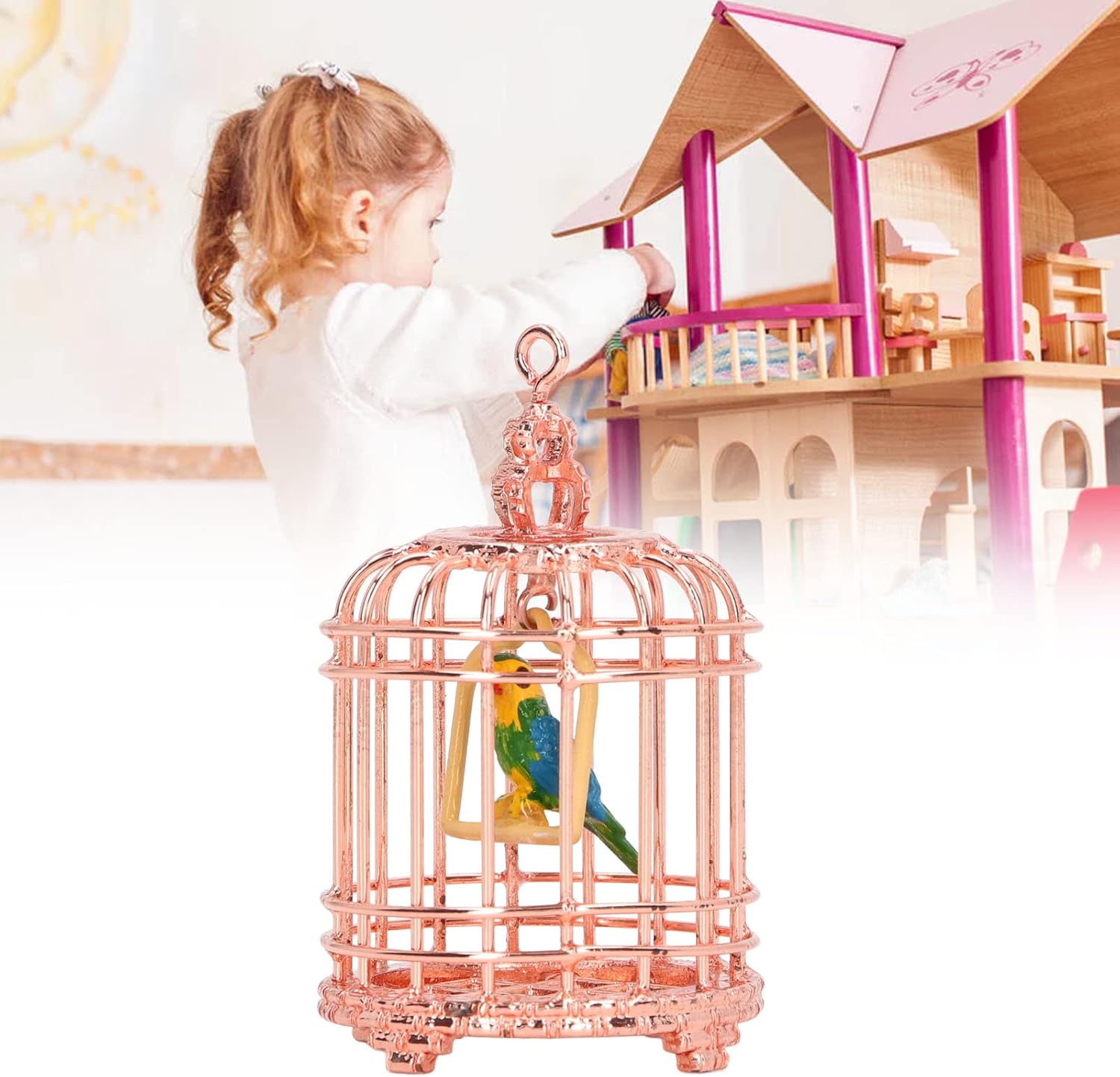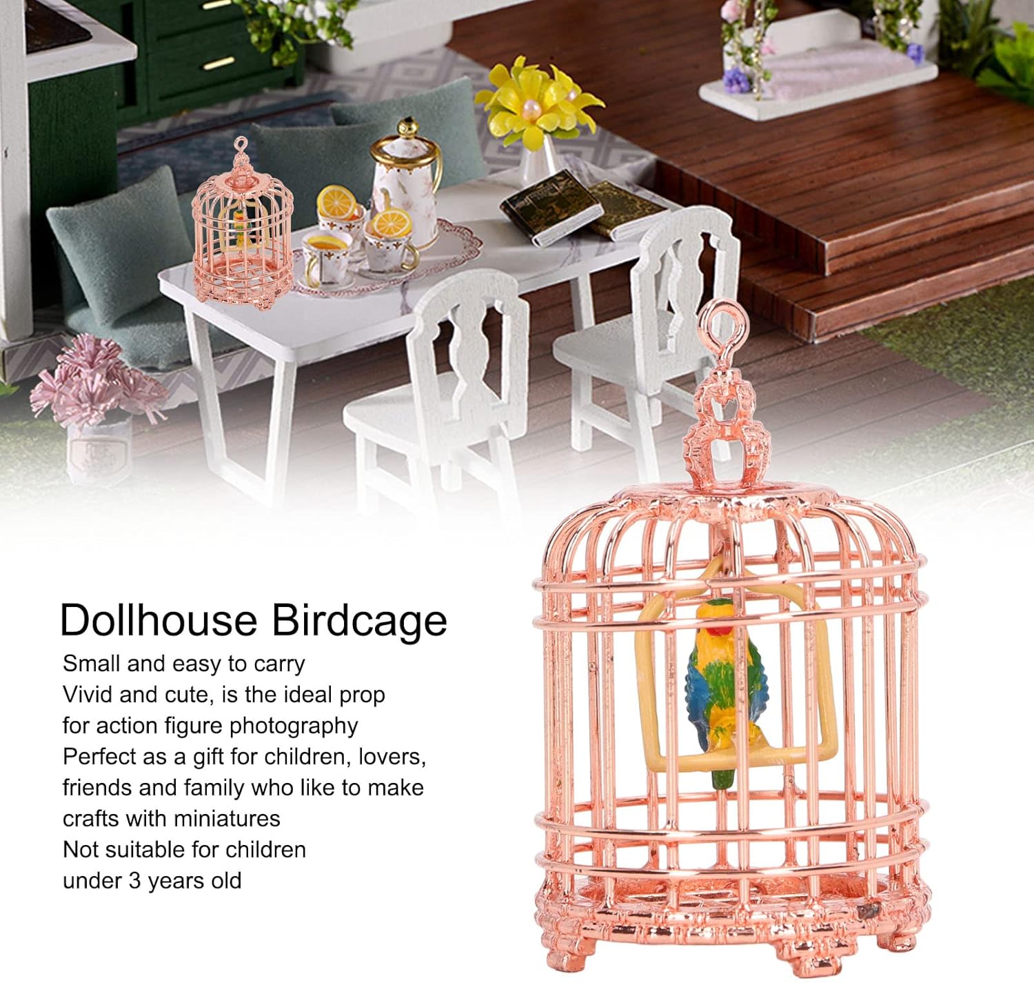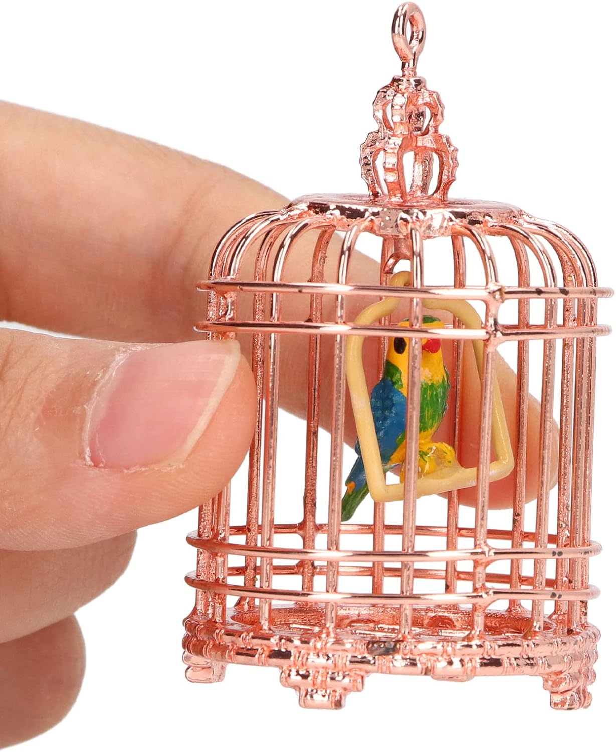 Generic Casa per Uccelli delle Bambole, Decorazione Portatile 1/12 Metal House Miniature Birdcage per 1/12 House Doll (Oro rosa)