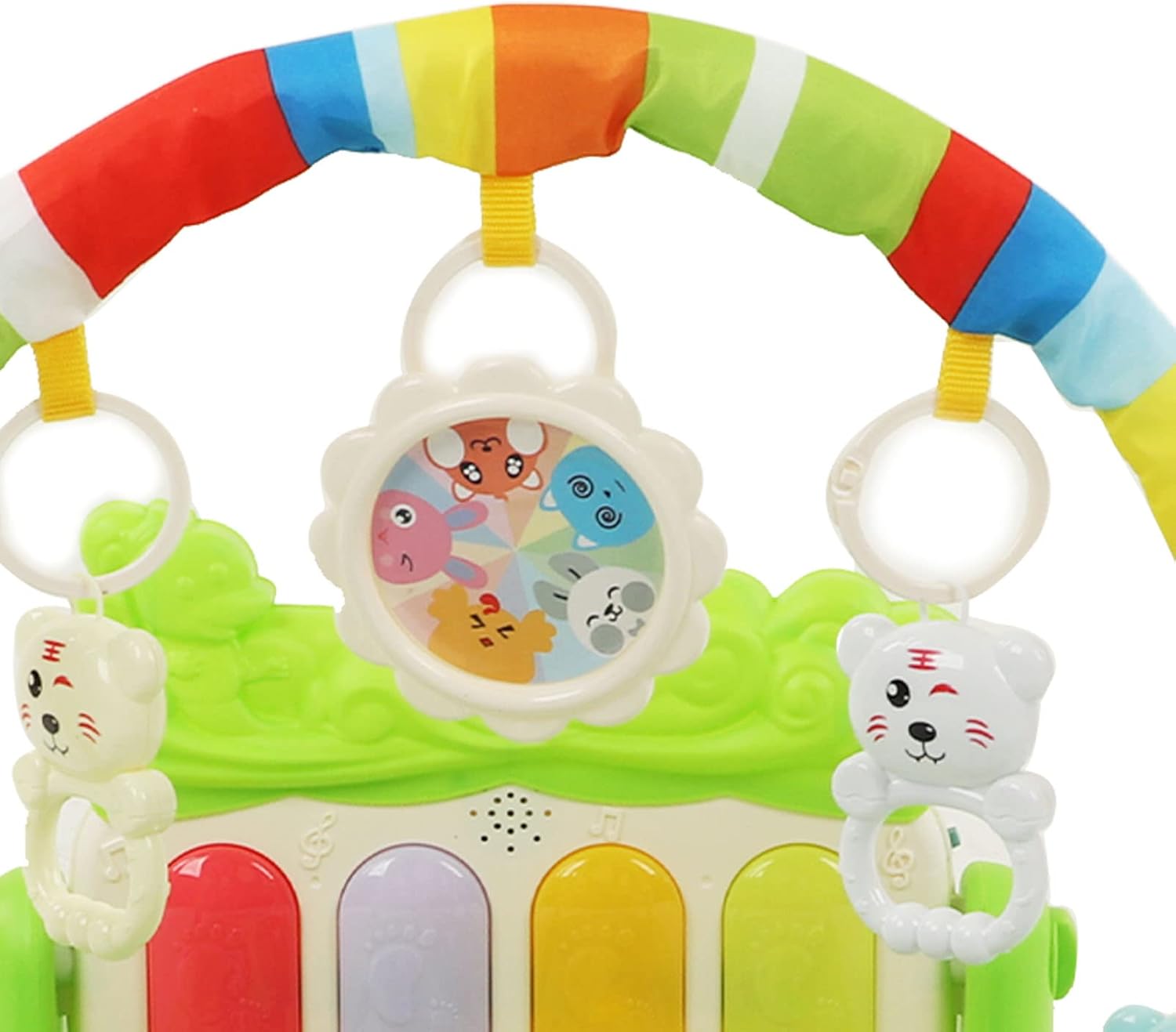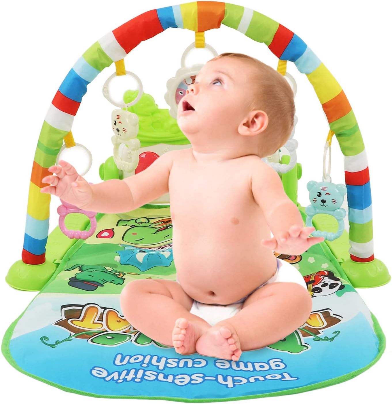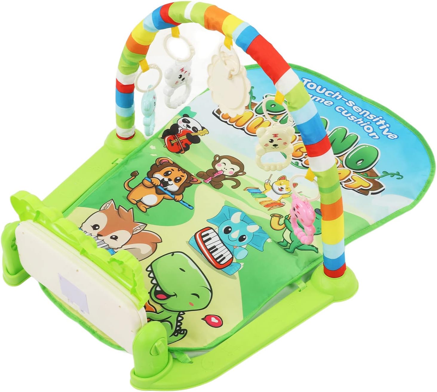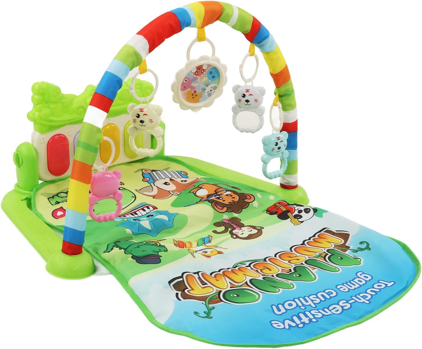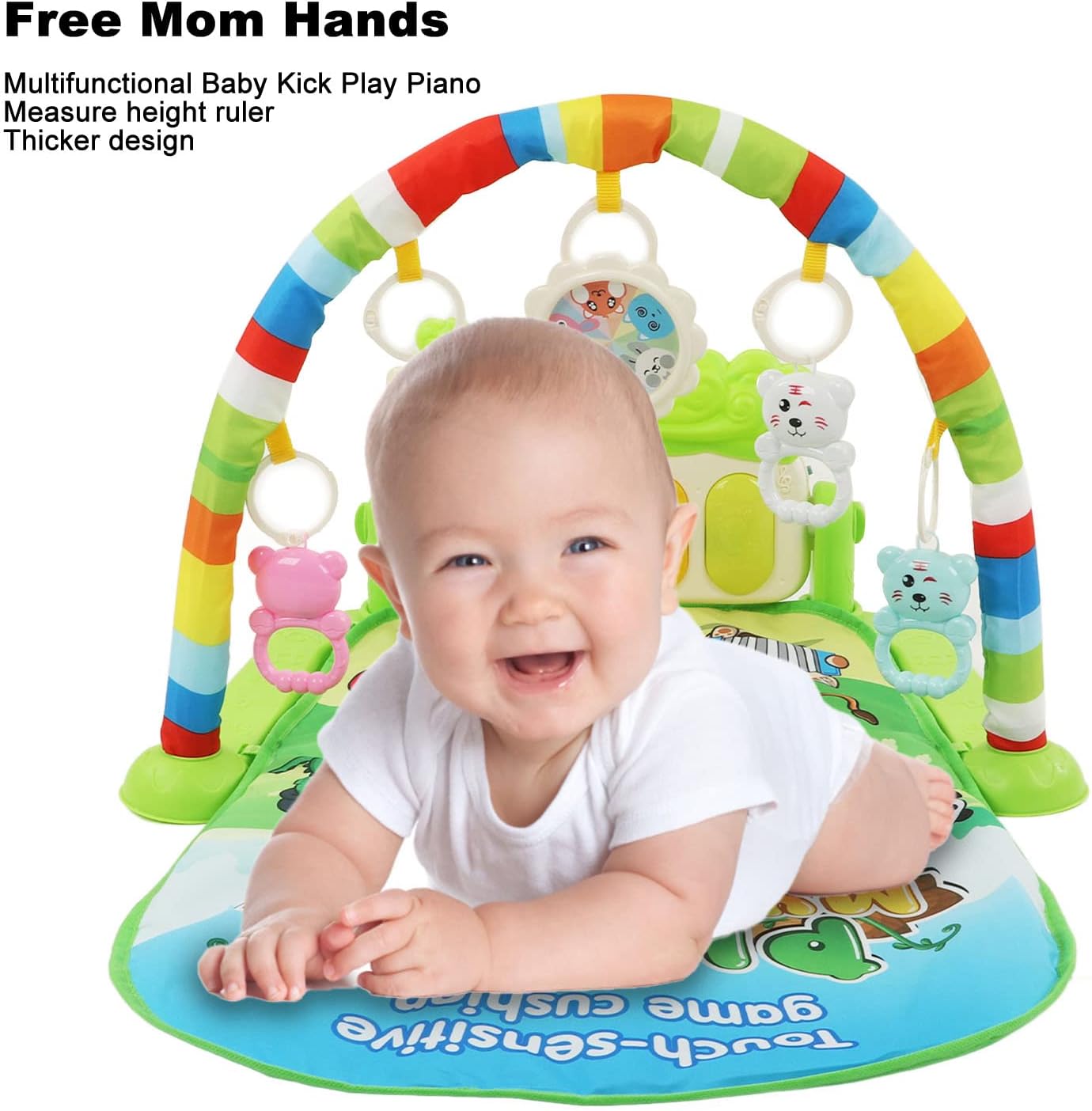 IDEALE PER LA CRESCITA DEL BAMBINO: il tappetino da ginnastica musicale per bambini con tastiera per offre un buon allenamento dell'udito ed esercita la capacità del bambino di coordinare i movimenti. TAPPETO DA GIOCO CON LUCE DEL SUONO: il per tappetino da palestra per bambini presenta canzoni delicate e luci soffuse che aiutano a lenire e rilassare il bambino e favoriscono un sonno più veloce e più dolce. ideale per neonati e bambini piccoli. COLORE RICCO: il tappetino da gioco per la palestra per bambini è dai colori vivaci ed è per i bambini per stimolare la vista e le capacità di riconoscimento del colore. Questo è un giocattolo eccellente per lo sviluppo fisico e mentale dei bambini. DESIGN RIMOVIBILE: puoi rimuovere l' dal tappetino da palestra o rimuovere facilmente i giocattoli pendenti per bambini e sostituirli con altri giocattoli che piacciono al tuo bambino, comodi da riporre o trasportare. COMODO DA GIOCARE: il tappetino da ginnastica per bambini è realizzato con tessuti ecologici che forniscono un tocco morbido e confortevole. Sicuro e delicato sulla pelle per far giocare i bambini felici.
