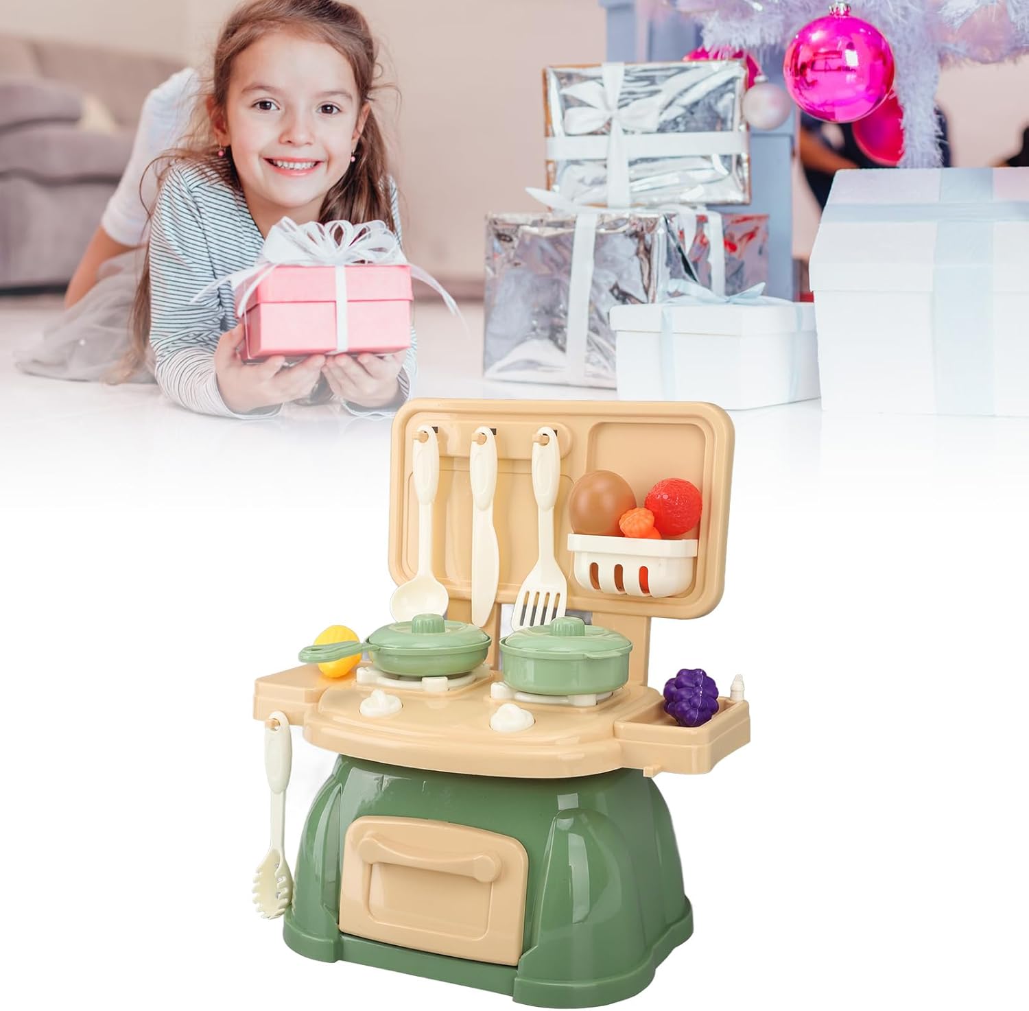 Set completo: include vari utensili da cucina come pentole, padelle, posate e altro, offrendo un'esperienza culinaria completa per i bambini. Gioco fantasioso: incoraggia il gioco fantasioso, consentendo ai bambini di fingere di cucinare e servire i pasti proprio come in una vera cucina. Aiuta a sviluppare le capacità motorie dei bambini, la coordinazione occhio-mano, durante il gioco. Design realistico: set di utensili da cucina in plastica dal design realistico, che offre ai bambini un'esperienza culinaria realistica. Lascia che tuo figlio si immerga nel mondo della cucina. Materiale sicuro: realizzato con materiali plastici durevoli, garantisce la sicurezza dei bambini durante il gioco e facile da pulire dopo l'uso. Puoi stare tranquillo sapendo che stanno giocando in un ambiente sicuro. Facile da pulire e riporre: è dotato di parti staccabili, che lo rendono un gioco da ragazzi da pulire dopo l'avventura culinaria. Puoi anche riporlo comodamente, mantenendo la tua cucina ordinata e organizzata.