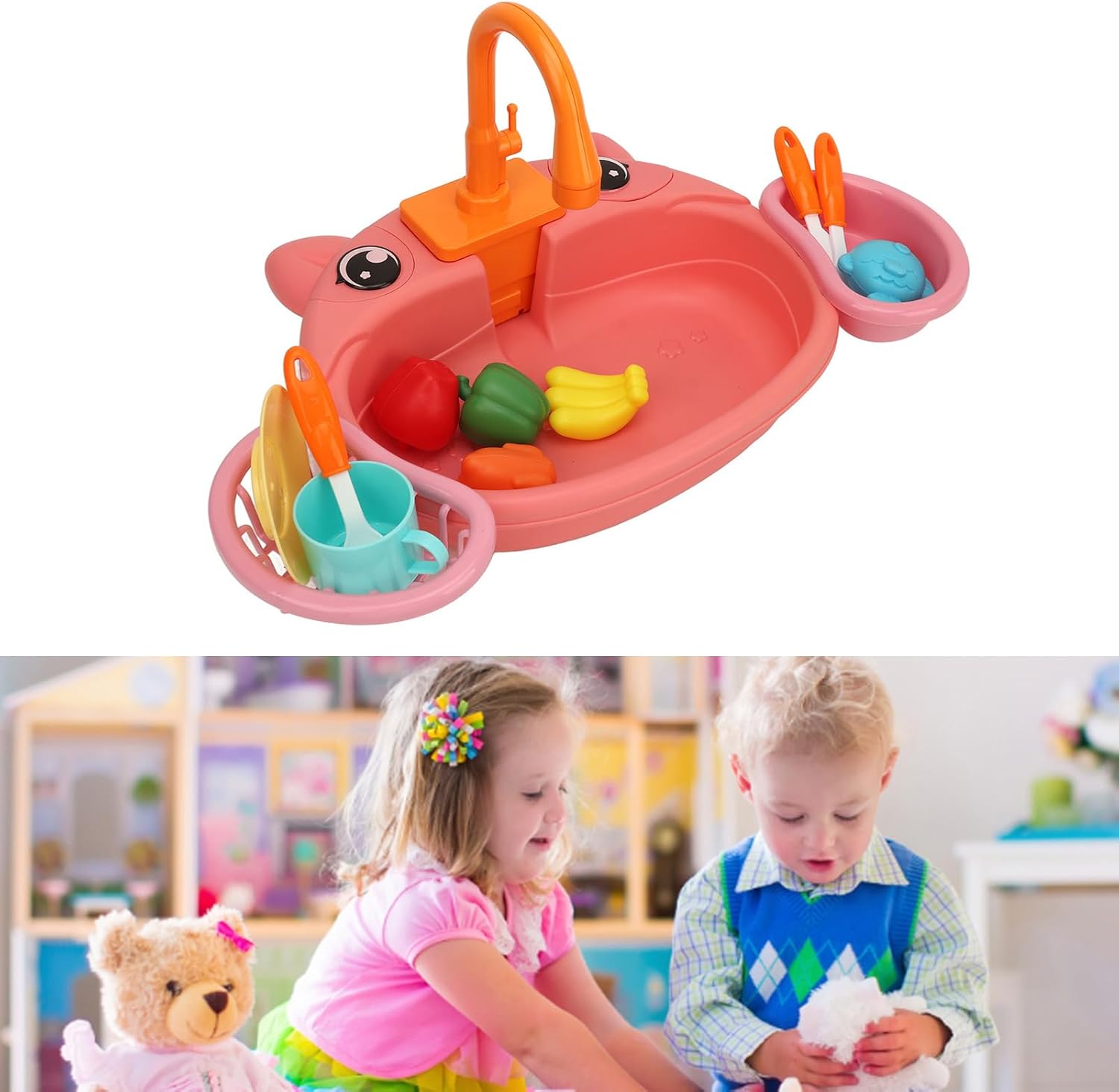 ESPERIENZA DOMESTICA: Simulazione di giocattoli per lavastoviglie elettriche, lascia che tuo figlio si goda la vera esperienza dei lavori domestici. GIOCO INTERATTIVO PER LA FAMIGLIA: i giocattoli elettrici per lavastoviglie da cucina possono essere utilizzati come gioco genitore-figlio per migliorare l'interazione tra i membri della famiglia. CONSERVAZIONE DEI PIATTI: i giocattoli elettrici per lavastoviglie da cucina sono dotati di un cestello scolapiatti, che può conservare i piatti lavati e coltivare l'eccellente abitudine di conservazione del bambino. SICURO ED ECOLOGICO: questo lavandino giocattolo realizzato in materiale plastico di alta qualità, è sicuro ed ecologico, i bambini giocano a proprio agio. ALTA SIMULAZIONE: giocattoli elettrici per lavastoviglie da cucina con batteria ricaricabile, azionamento elettrico, ciclo dell'acqua simulato, aumentano il divertimento e l'interazione del gioco.