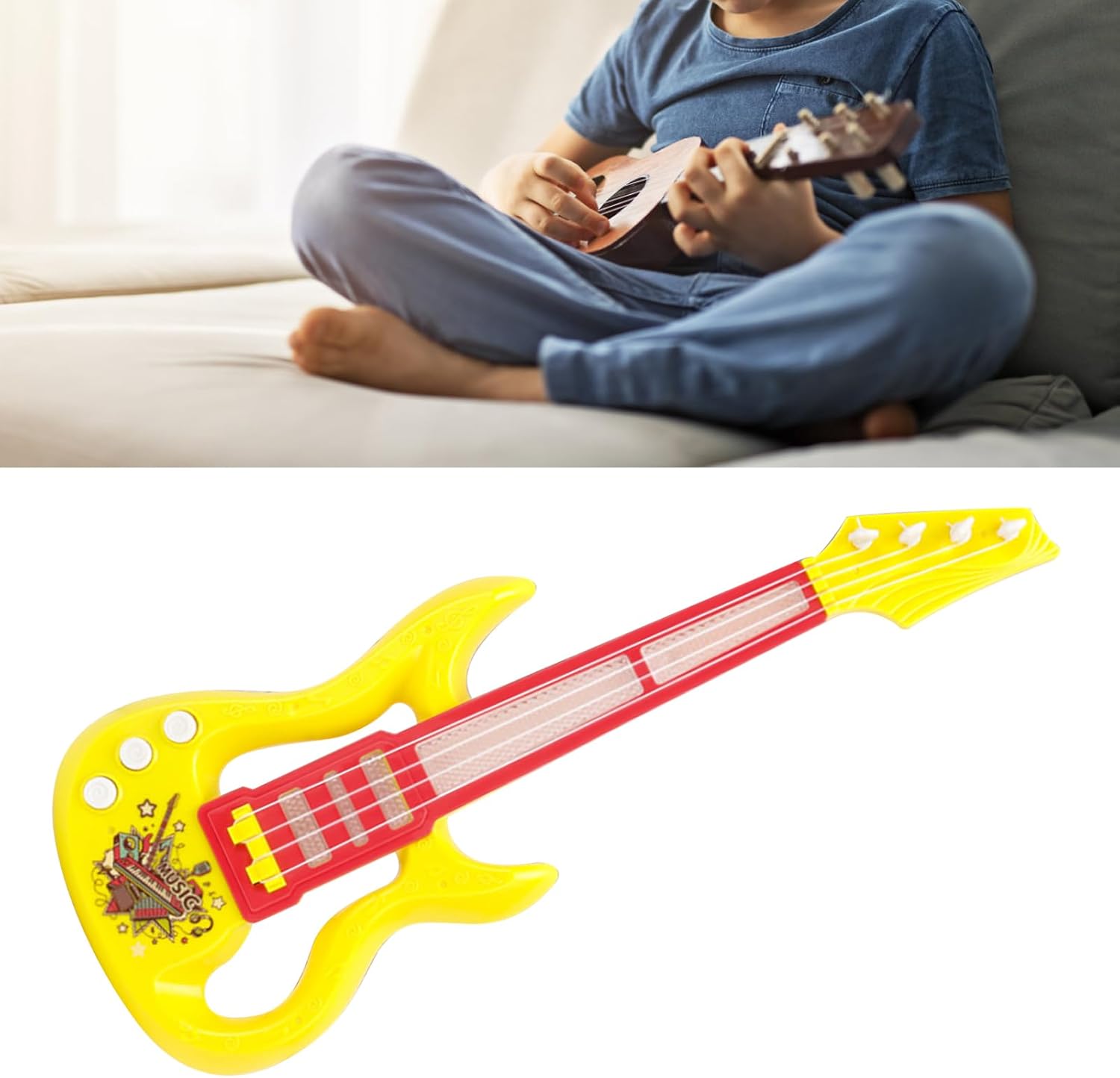 Riproduzione versatile: questo giocattolo non può riprodurre musica di vari timbri, ma anche registrare, riprodurre, accordare e altre funzioni, portando i bambini più divertenti nella composizione e nell'esecuzione musicale. Migliore istruzione: questo giocattolo può aiutare i bambini ad apprendere note, ritmo e abilità di gioco e promuovere lo sviluppo della percezione musicale e delle capacità di coordinamento dei bambini. Dimensioni portatili: questo giocattolo è piccolo e leggero, comodo da trasportare e riporre per i bambini e può essere utilizzato in qualsiasi momento a casa, all'aperto o durante i viaggi, consentendo ai bambini di godersi il divertimento della musica in qualsiasi momento. Giocattolo per chitarra elettronica: questo giocattolo per chitarra elettronica per bambini è una mini chitarra elettrica, che può stimolare l'interesse dei bambini per la musica e simulare l'aspetto e l'effetto sonoro di una vera chitarra. Plastica : questo giocattolo è realizzato in materiale plastico di alta qualità, sicuro e inodore, sicuro per i bambini e garantisce la loro salute e sicurezza.