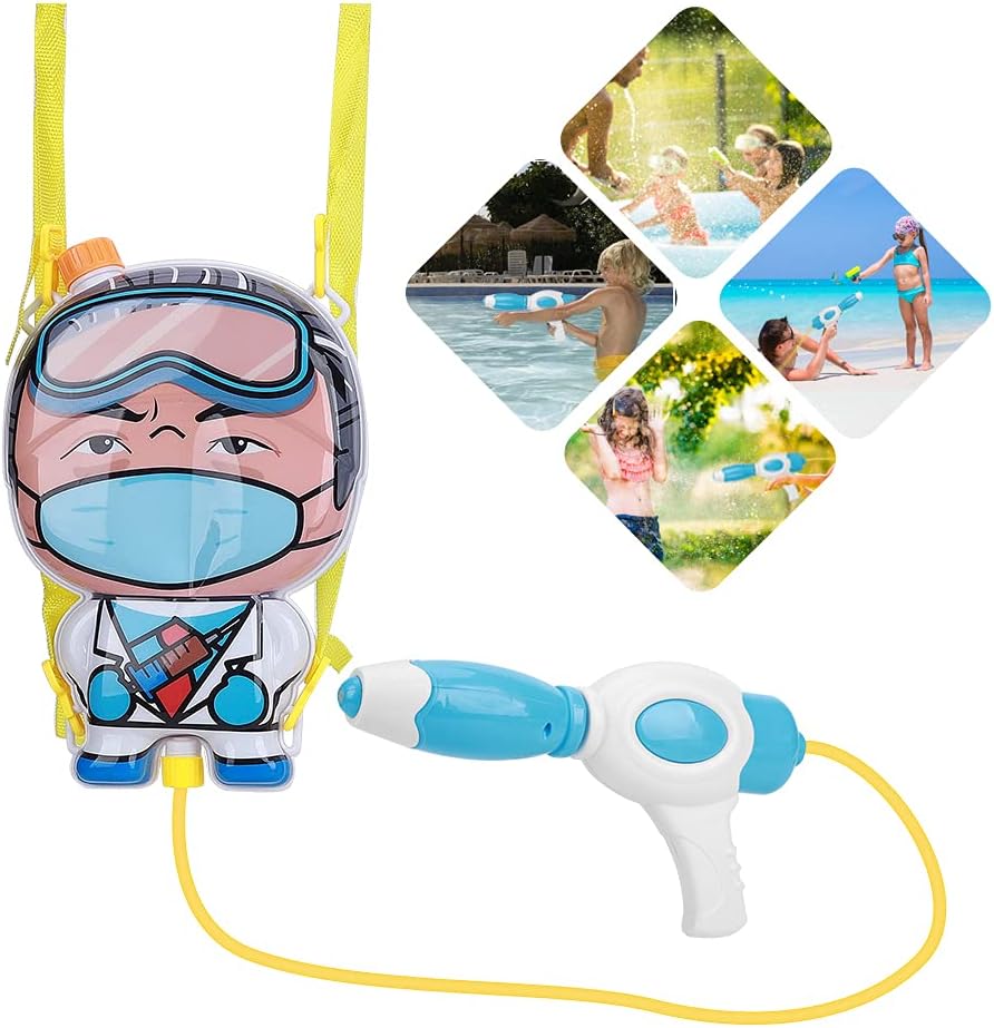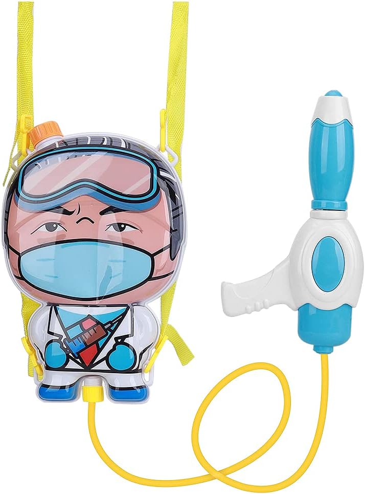 La superficie finemente lucidata senza sbavature rende sicuro il gioco dei bambini. Giocattolo con pistola ad acqua di tipo trainante, a lungo raggio, capacità dello zaino da 1,5-1,8 litri. Speciale progettato per far giocare i bambini sopra i 3 anni, meraviglioso. La grande bocca della bottiglia, con presa d'aria nel coperchio, impedisce a una pressione eccessiva di causare l'ostruzione del flusso d'acqua. Disegni dello zaino regolabili, i bambini possono essere trasportati direttamente sulla spalla.