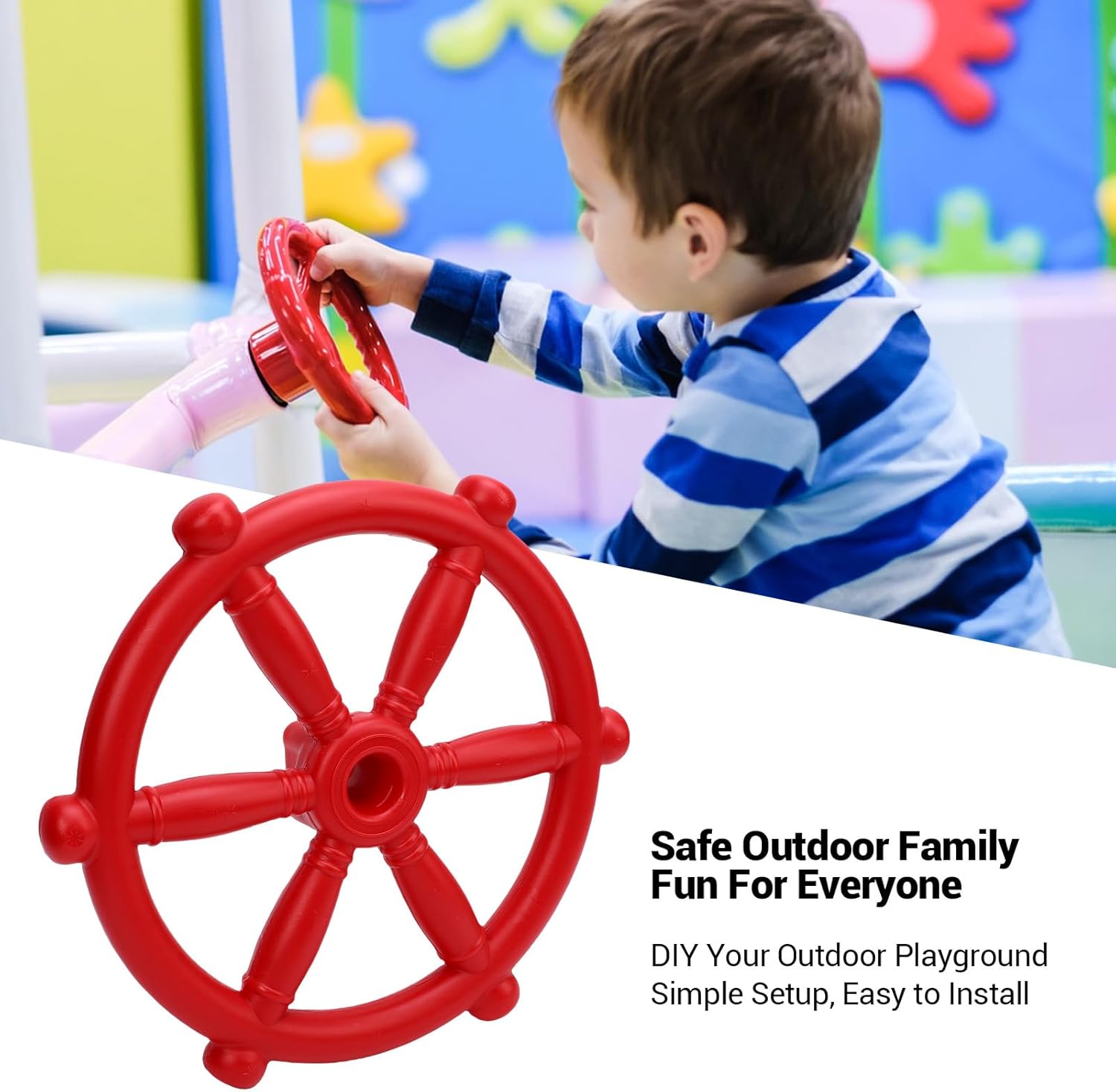 Design flessibile e leggero: il giocattolo del volante in plastica consente ai bambini di ruotare e controllare facilmente il volante, sperimentando la gioia di essere un piccolo capitano. Easy Installation: questo volante in plastica è una bella aggiunta a qualsiasi set di giochi all'aperto. Dotato di accessori di installazione, è facile e rapido da installare. Il volante del parco giochi ispira un gioco esterno immaginativo e aggiunge divertimento a qualsiasi teatro. Giocattolo educativo: questo volante per la casa albero ha un design realistico che imita la forma di un vero volante, offrendo un'esperienza coinvolgente di guida di una nave pirata. Aiuta a sviluppare abilità sensoriali, immaginazione, capacità cognitive e motorie. Materiale plastico: questo volante per parchi giochi è realizzato in plastica, usura, non facile da danneggiare e può fornire una compagnia di lunga data. È facile da afferrare che è sicuro e sicuro. Questo volante in plastica fornirà sicuramente ore di intrattenimento. Design a bordo arrotondato liscio: struttura attentamente lucidata con bordi arrotondati per evitare di danneggiare le mani delicate, la ruota dei giocattoli per pirati garantisce un'esperienza di gioco più .