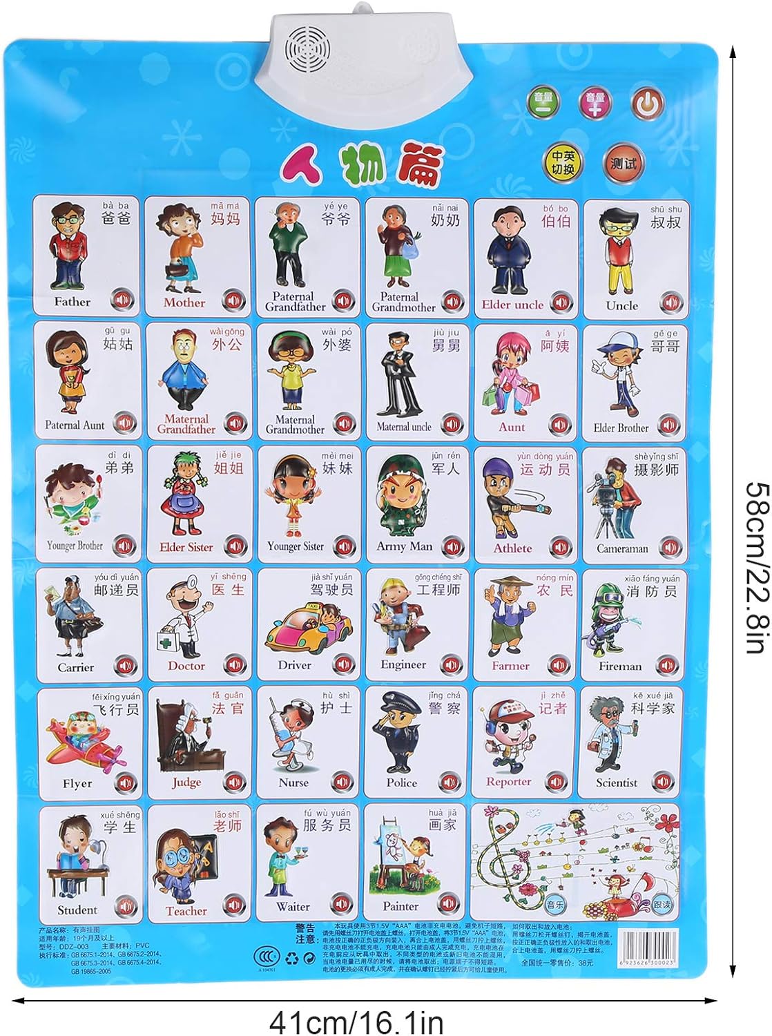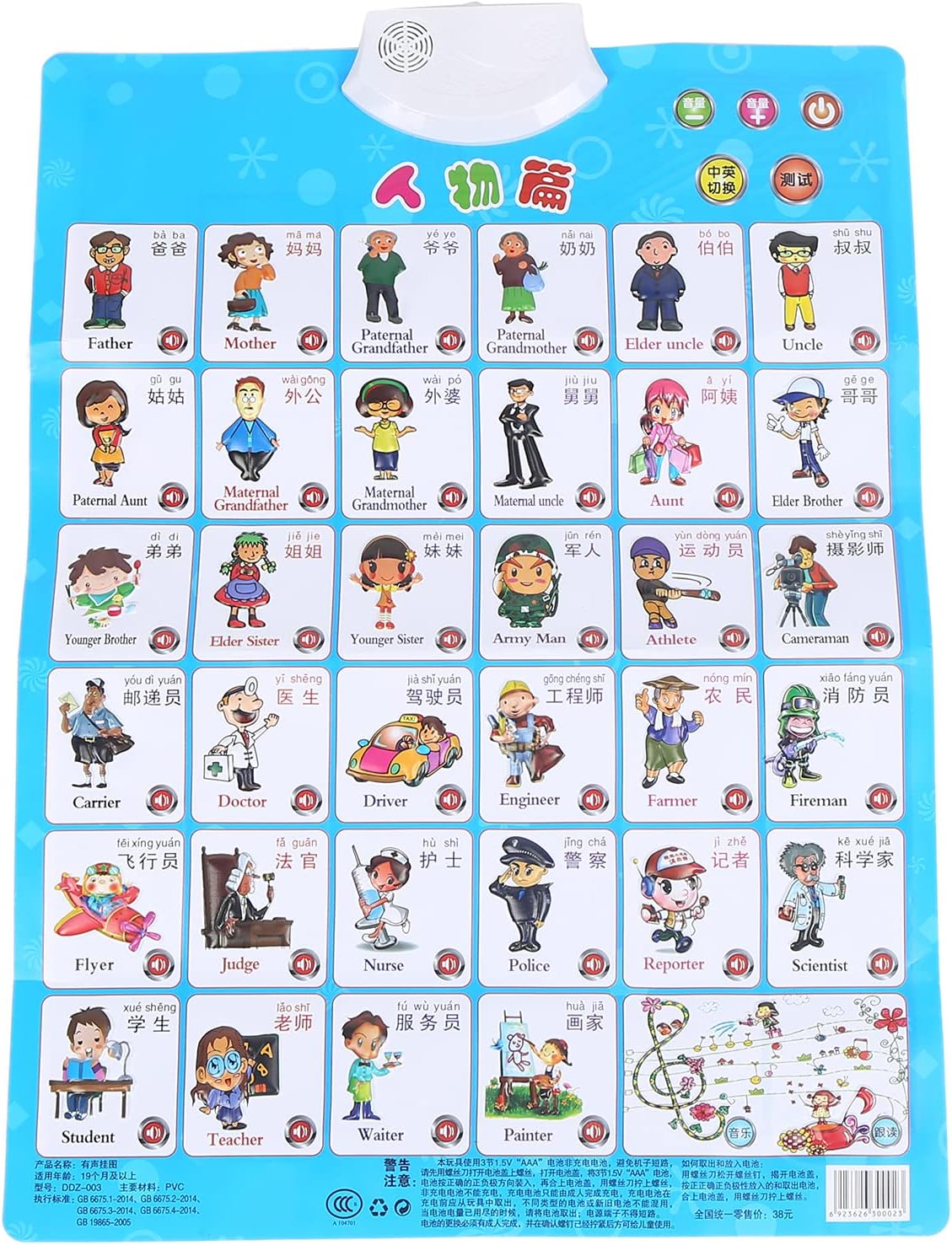 Aiuta a mantenere l'interesse dei bambini con poster che possono rendere divertente l'apprendimento, alimentato da 3 batterie AAA (non incluse). I poster educativi sono accattivanti e informativi che motivano e attirano i bambini a imparare. Un per i più piccoli, la scuola materna e i bambini in età prescolare, un modo efficace per catturare e mantenere l'attenzione di alunni o studenti. L'audio è disponibile, la pronuncia standard e chiara e tutti i contenuti sono visualizzati in inglese, cinese semplificato e pinyin per un facile apprendimento. Aiuta a sviluppare le capacità di lettura e offre ai bambini un'esposizione precoce a diverse occupazioni e all'apprendimento dei membri della famiglia.