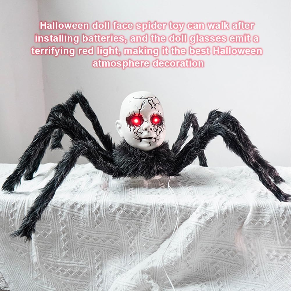 Ornamento animato del ragno del viso di Halloween: questo ornamento unico è alimentato a batteria e cammina mentre emette inquietanti luci rosse dai suoi occhi simili, rendendolo la scelta per impostare un'atmosfera spettrale di Halloween. Faux Plush Scary Walking Spider: per migliorare lo spirito festivo, questo ragno peluche funge da aggiunta accattivante a qualsiasi arredamento di Halloween. Aggiunta festiva alla tua casa: trasforma la tua casa con questa decorazione spettrale, che diventerà un pezzo straordinario tra le tue decorazioni di Halloween. Regali di Halloween Hairy Spider: Questi affascinanti ragni fanno grandi regali, escalation l'allegria spettrale di Halloween. Dimensioni per la tua casa: progettata per aggiungere divertimento e colore, le sue dimensioni sono perfette per creare un'atmosfera emozionante nel tuo spazio abitativo.