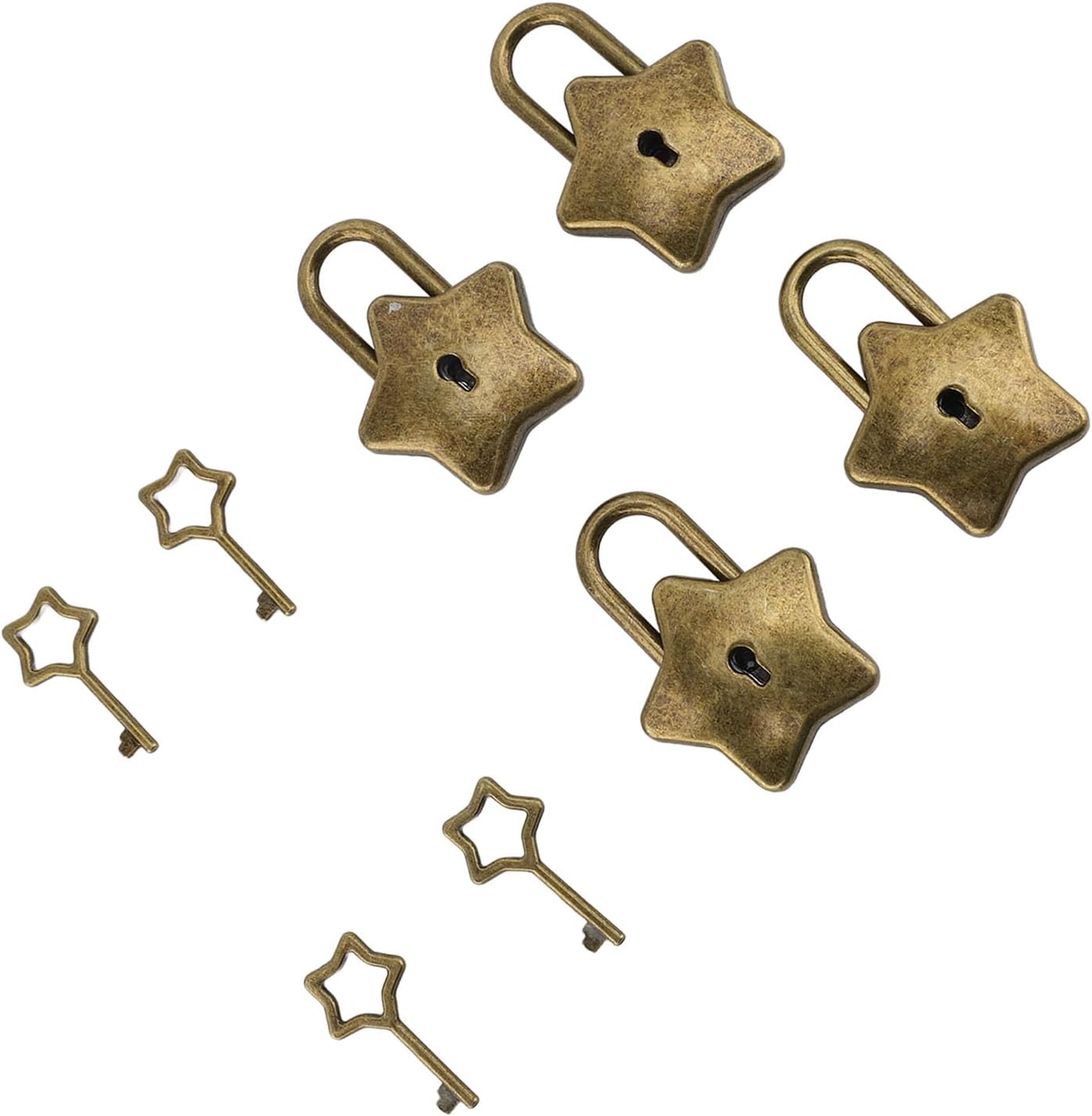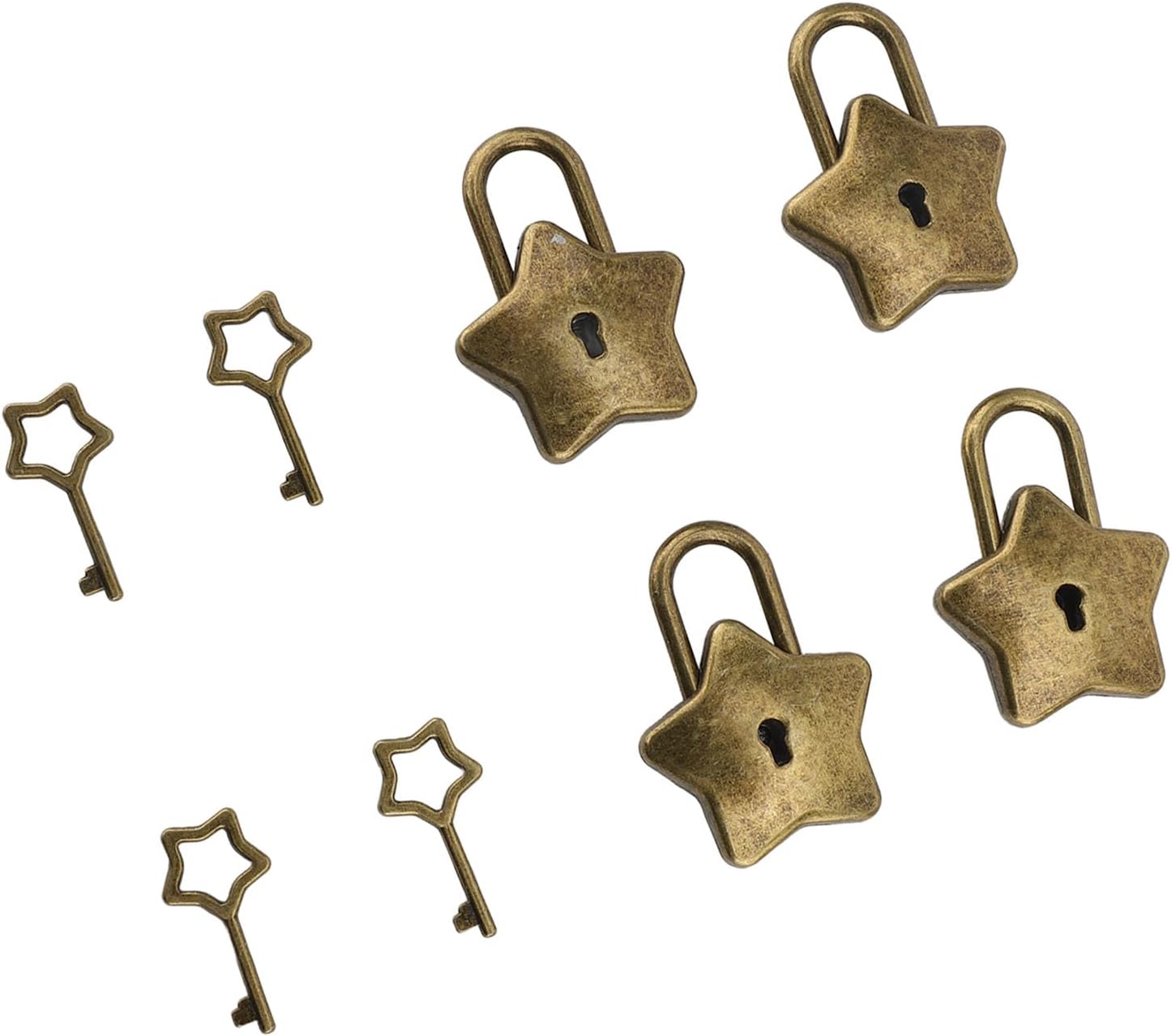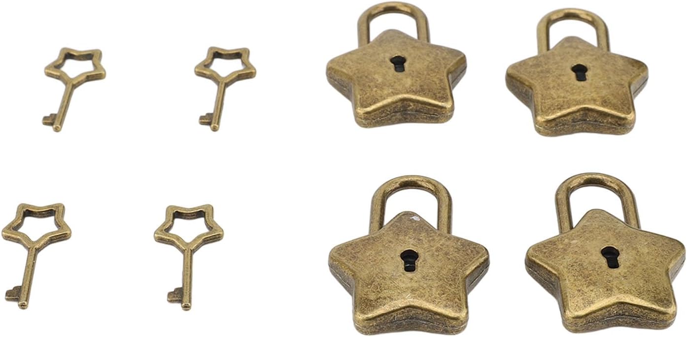 [Durevole in lega di zinco] realizzato in lega di zinco di alta qualità, queste ciocche sono robuste e di lunga durata, fornendo sicurezza affidabile per i tuoi oggetti di valore. [Blocco multiuso] Con il suo delizioso design, questo mini lucchetto è una scelta eccellente per migliorare l'arredamento di borse e scatole di stoccaggio di gioielli. [Accesso alla chiave comodo] Ogni blocco a forma di stella viene fornito con una chiave di corrispondenza, eliminando la necessità di password e garantendo la sicurezza delle cose. [Adorabile design] Le serrature a forma di stella sono eleganti e affascinanti, ideali per regali ai propri cari o usando per decorare vari oggetti. [Utilizzo versatile] Per garantire libri di diario, scatole di gioielli, borse, bagagli e altro ancora, queste serrature sono essenziali per la vita quotidiana.