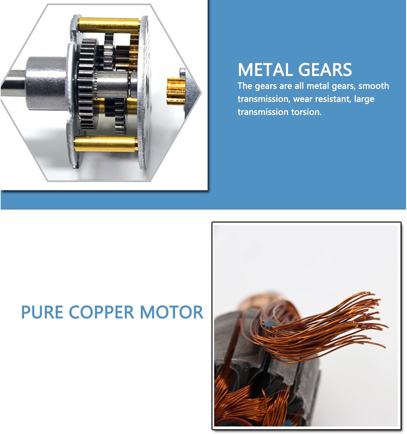 ALBERO DI USCITA D: questo motore CC ha un albero di uscita centrale di tipo D, realizzato in acciaio ad alta durezza, buona tenacità e resistenza agli urti, migliorando la qualità dei cuscinetti e la durata del motore. INGRANAGGIO TUTTO IN METALLO: il motore elettrico DC12V adotta ingranaggi interamente in metallo, con resistenza alle alte temperature, resistenza all'usura, forte capacità portante, proteggendo efficacemente il corpo del motore della scatola del . ALTA EFFICIENZA: utilizzo di una precisa tecnologia di avvolgimento e di un rotore con nucleo in filo di rame , che aumenta istantaneamente la potenza del motore di riduzione della velocità e migliora notevolmente l'efficienza del lavoro. STERZO CCW: il motore elettrico DC con spazzole supporta lo sterzo CCW, garantendo una trasmissione stabile, un funzionamento silenzioso e un'elevata torsione, rendendolo adatto a più scenari. APPLICAZIONI: Il motore DC12V è compatto e pratico, ampiamente utilizzato in serrature elettroniche, robot, tende elettriche, porte elettriche, micro miscelatori, apparecchiature di monitoraggio, mangiatoie per animali domestici e così via.