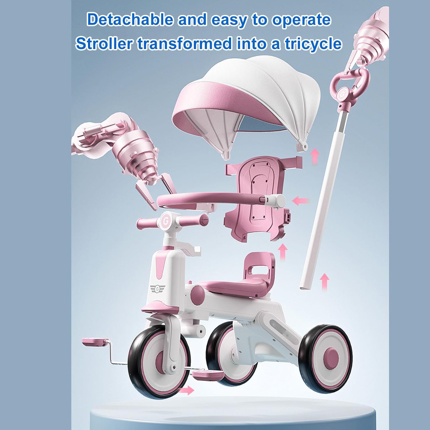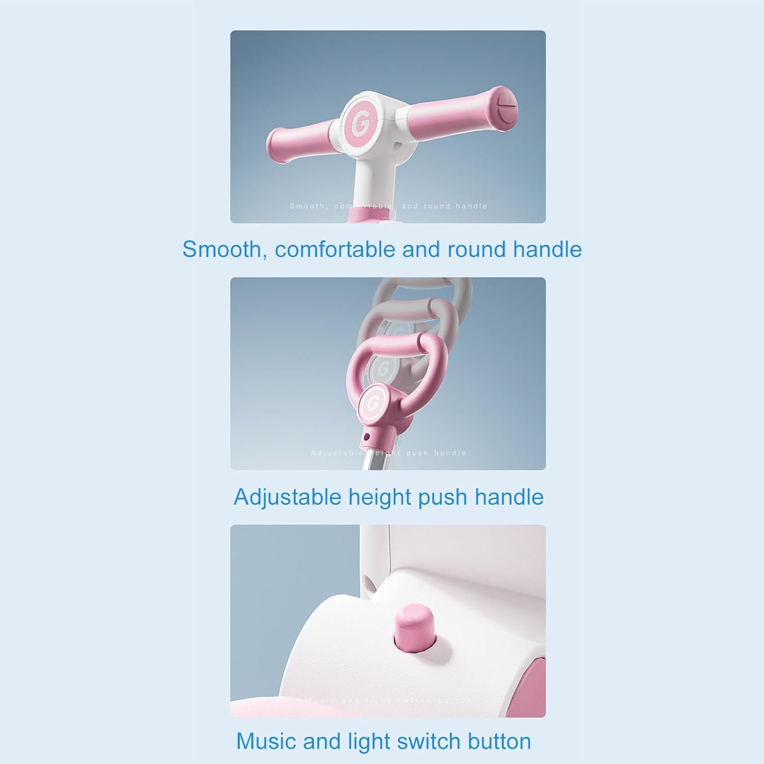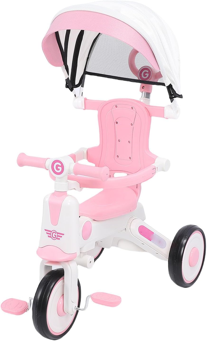 Canopiale regolabile e pieghevole: questo baldacchino a più stadi realizzato in tessuto premium offre protezione durante l'estate e l'inverno. L'installazione e la rimozione del rifugio è un gioco da ragazzi! Wheels Eva larghe e tranquille: dotato di ruote Eva allargate, questo triciclo per bambini è ideale per vari terreni, rendendolo adatto anche per l'uso interno. Goditi un liscio e tranquillo senza disturbare i vicini! Struttura stabile: la struttura piramidale formata da tre ruote garantisce un baricentro basso, impedendo efficacemente la mancia e fornendo un'esperienza di guida per il tuo piccolo. Modalità push: progettata per età compresa tra 18 mesi e 5 anni, questo triciclo per bambini presenta una maniglia di spinta per adulti per i genitori. L'altezza regolabile garantisce un controllo comodo. Il poggiapiedi rimovibile memorizza comodamente quando non è in uso. Luci e musica: le gite notturne diventano più eccitanti con questo trike per bambini con luci colorate. La musica aggiunta migliora la visibilità e la sicurezza, garantendo un divertente sotto le stelle.