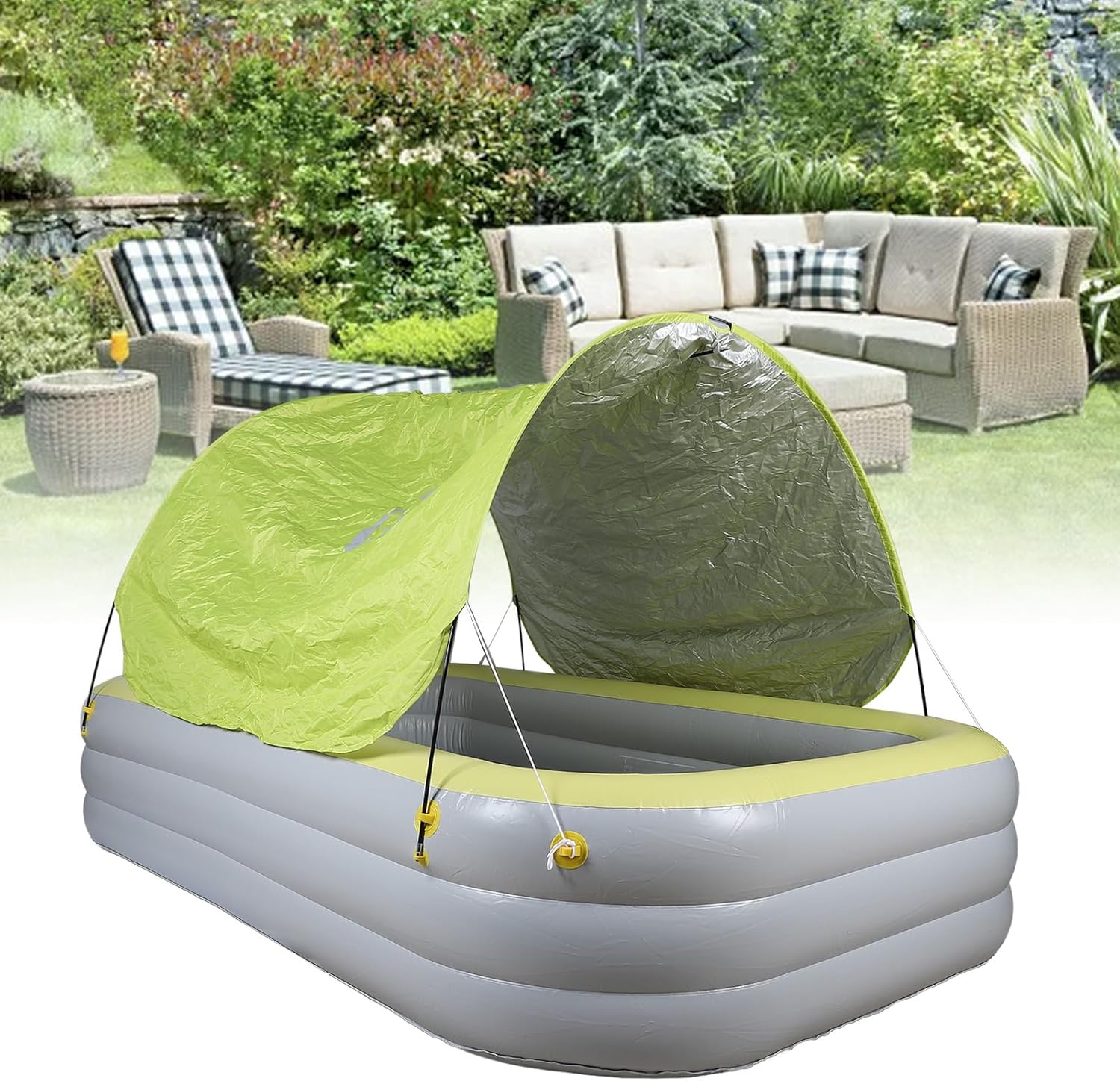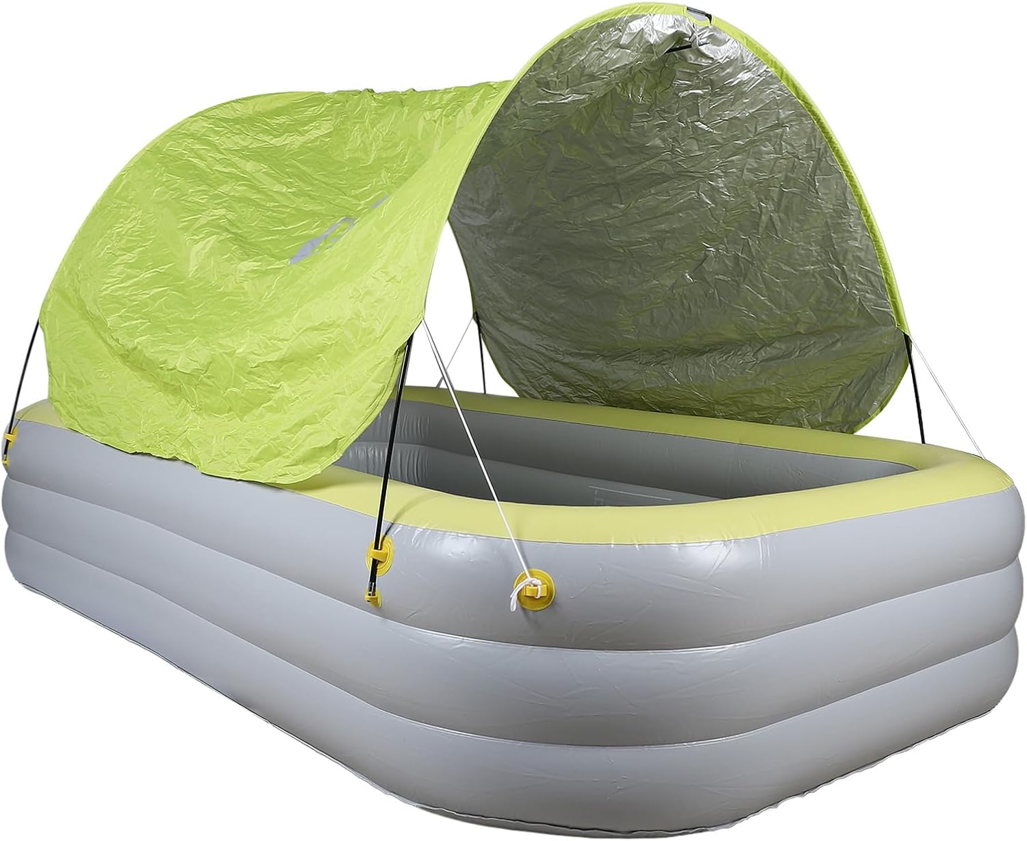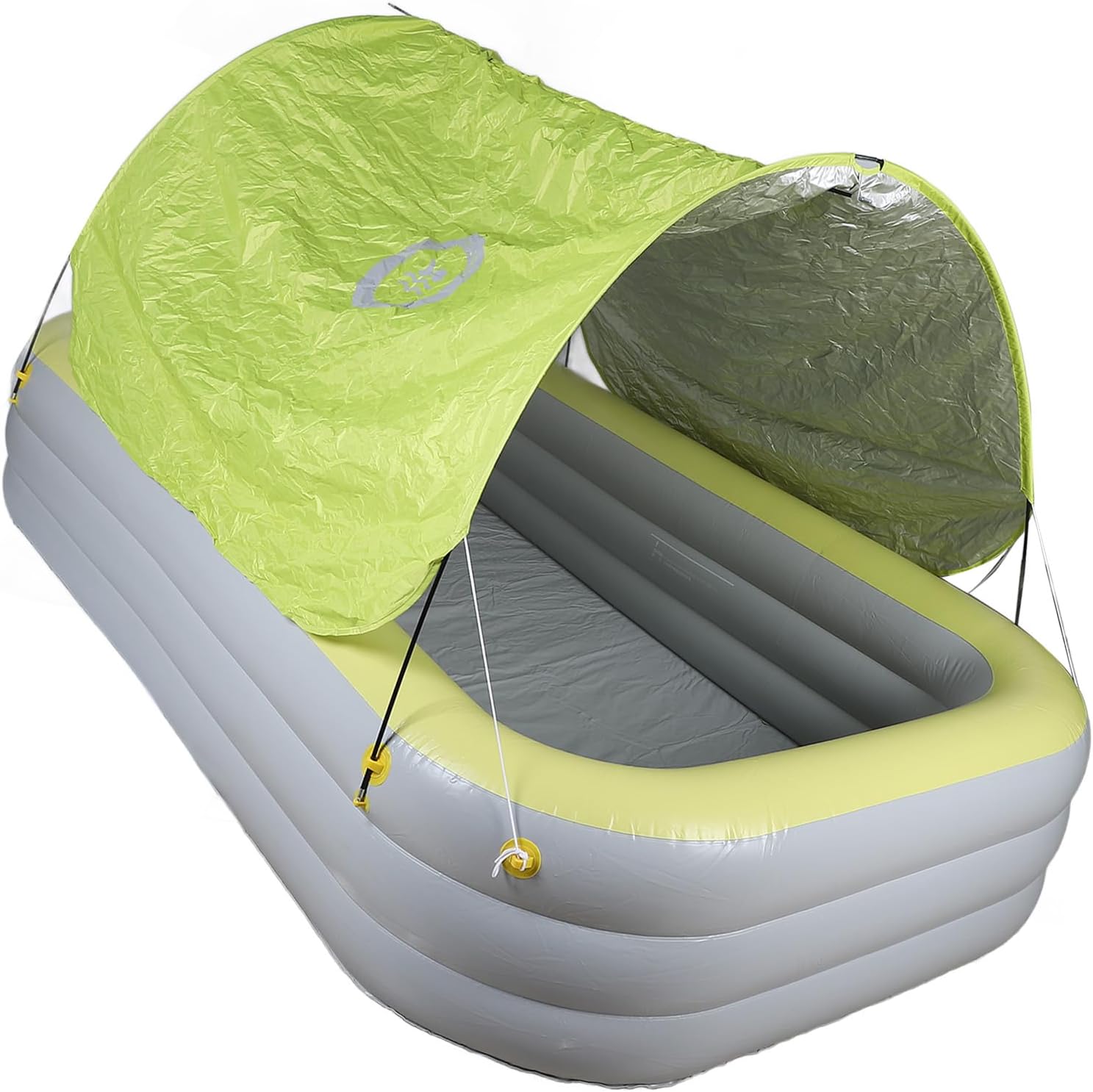 [MATERIALE DI LUNGA DURATA] Materiale gonfiabile di alta qualità per durata e stabilità [DESIGN SPAZIOSO] Le grandi dimensioni possono ospitare più giocatori per un intrattenimento senza fine [PROTEZIONE ] Il baldacchino ispessito protegge dai raggi solari dannosi per la sicurezza [MULTIUSO] Può essere utilizzato come piscina o parco giochi maggiore versatilità [IDEALE PER OGNI OCCASIONE] Adatto a famiglie, parchi giochi all'aperto e resort