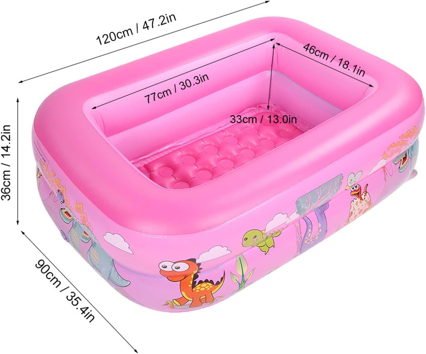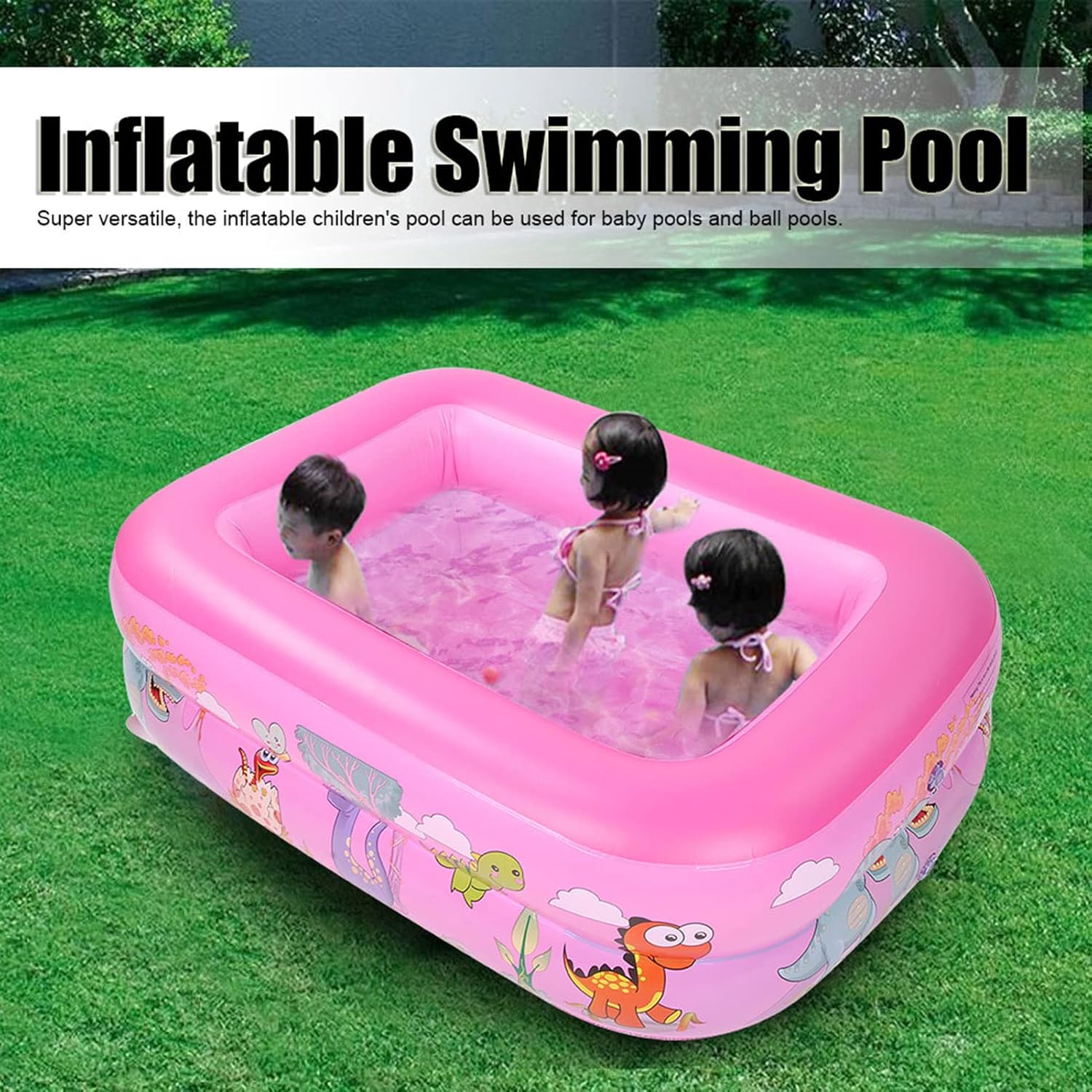 Super versatile, la piscina per bambini gonfiabili può essere utilizzata per piscine e piscine a sfere. Può essere usato all'interno e all'esterno per godersi il divertimento di schizzare acqua e felice tempo estivo con i bambini. Facile da gonfiare e una migliore tenuta dell'aria, puoi gonfiarlo con una pompa (non inclusa) in pochi minuti. Quando non si utilizza il pool, puoi sgonfiare rapidamente, salvare spazio e un facile spazio di archiviazione. Progettato con motivi di cartoni animati super carini, la piscina per bambini adulti attirerà sicuramente i tuoi bambini.