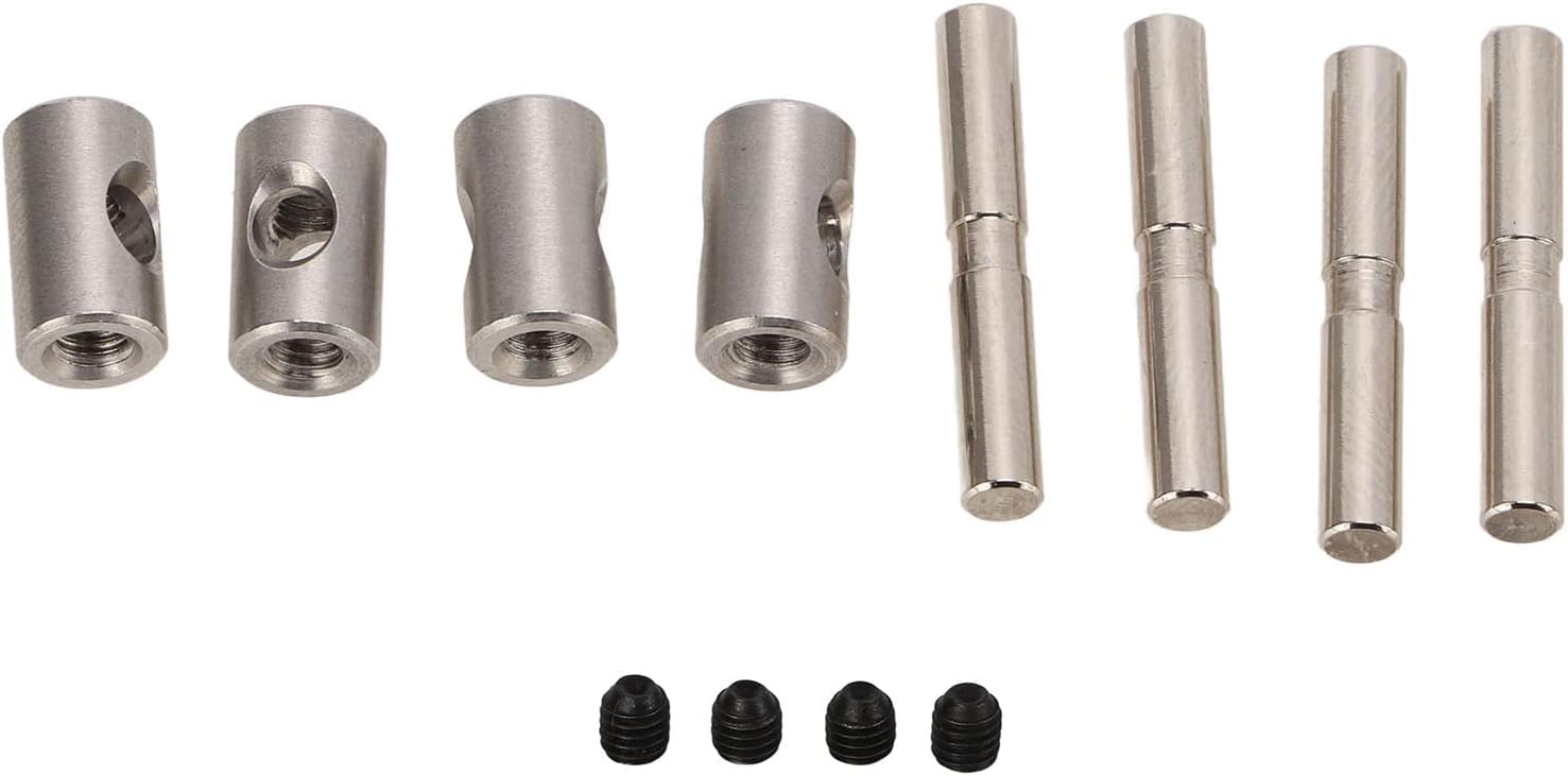 REPLACMENT: A total of 4 sets of axle pins are included, which can be used to replace worn or damaged parts of the RC car. PREMIUM MATERIALS: These axle pins are made of high quality steel material and are designed for long lasting performance. APPLICABLE MODELS: Precise size design, this drive shaft pin can be perfectly matched for Traxxas Summit 1/10 RC car. EASY TO INSTALL: Equipped with corresponding set screws, easy to install, and the shaft pin can be firmly fixed without falling off. DIY UPGRADE ACCESSORIES: Exquisite appearance design, very suitable for DIY upgrade your remote control car, improve car performance.